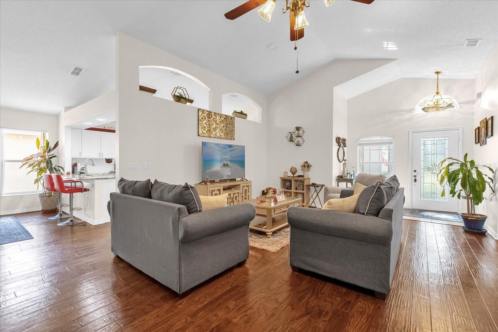 Welcome to the Oxford Model in the sought-after 55+ community of Kings Ridge! This beautifully maintained home features an open floor plan with 3 bedrooms, 2 baths, den—perfect for an office or guest room. The spacious kitchen, with its eat-in nook, flows seamlessly into the family room and patio, creating an ideal space for entertaining. With all appliances included, a 2014 roof, and a freshly painted interior, this home is truly move-in ready! Located in the premier Kings Ridge community, residents enjoy a guard-gated entrance, a multi-million dollar clubhouse, two golf courses, three heated pools, spas, fitness centers, tennis courts, pickleball, shuffleboard, bocce, billiards, Bingo, and much more! Don’t miss this opportunity to embrace an active, vibrant lifestyle—schedule your tour today!