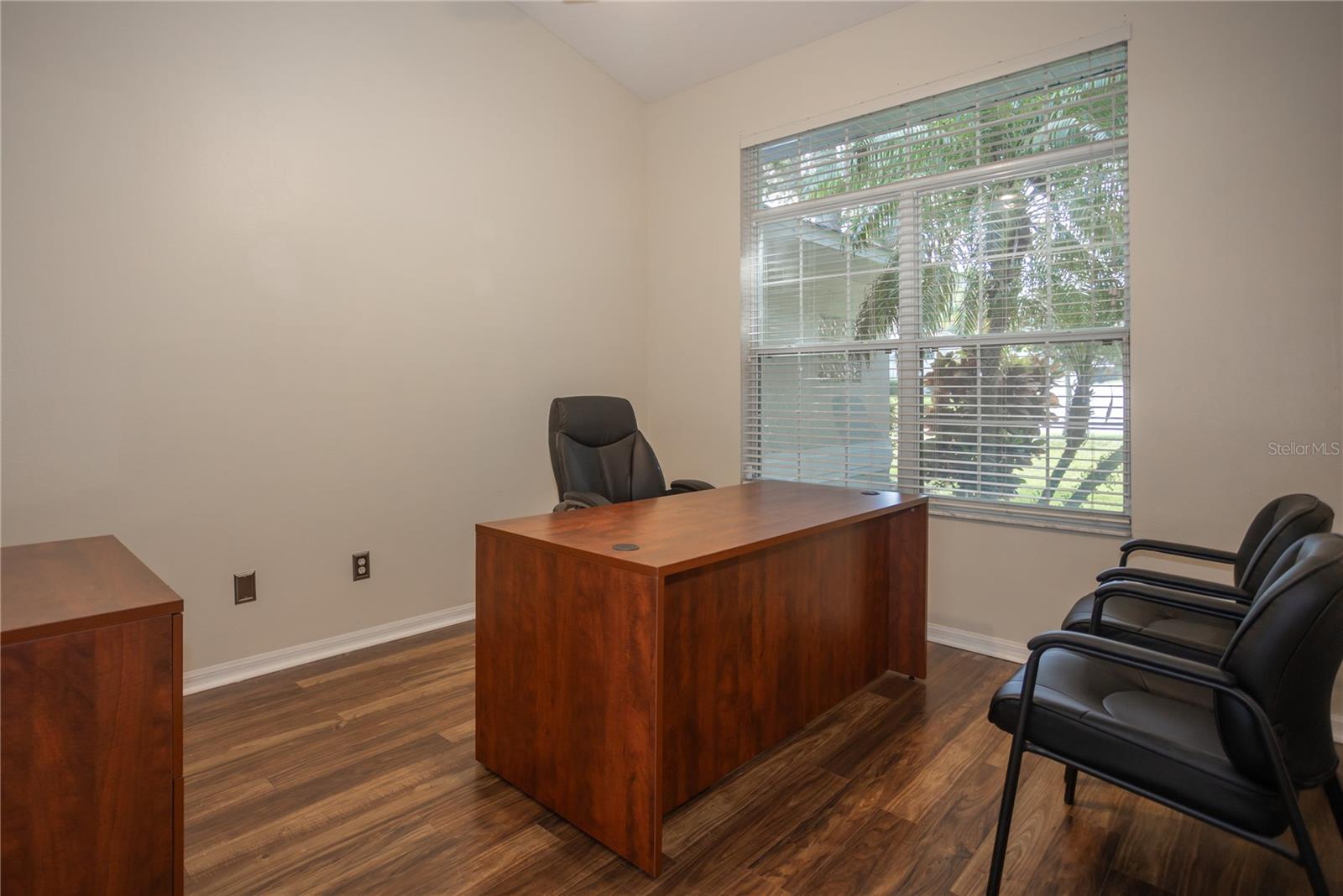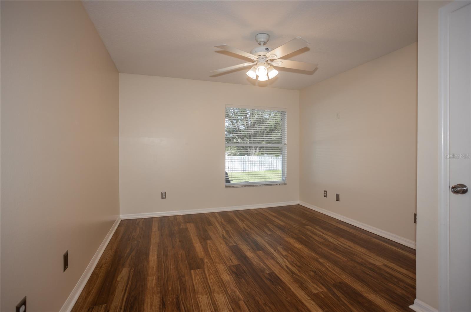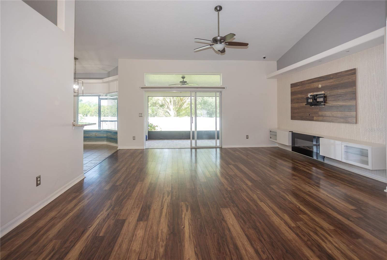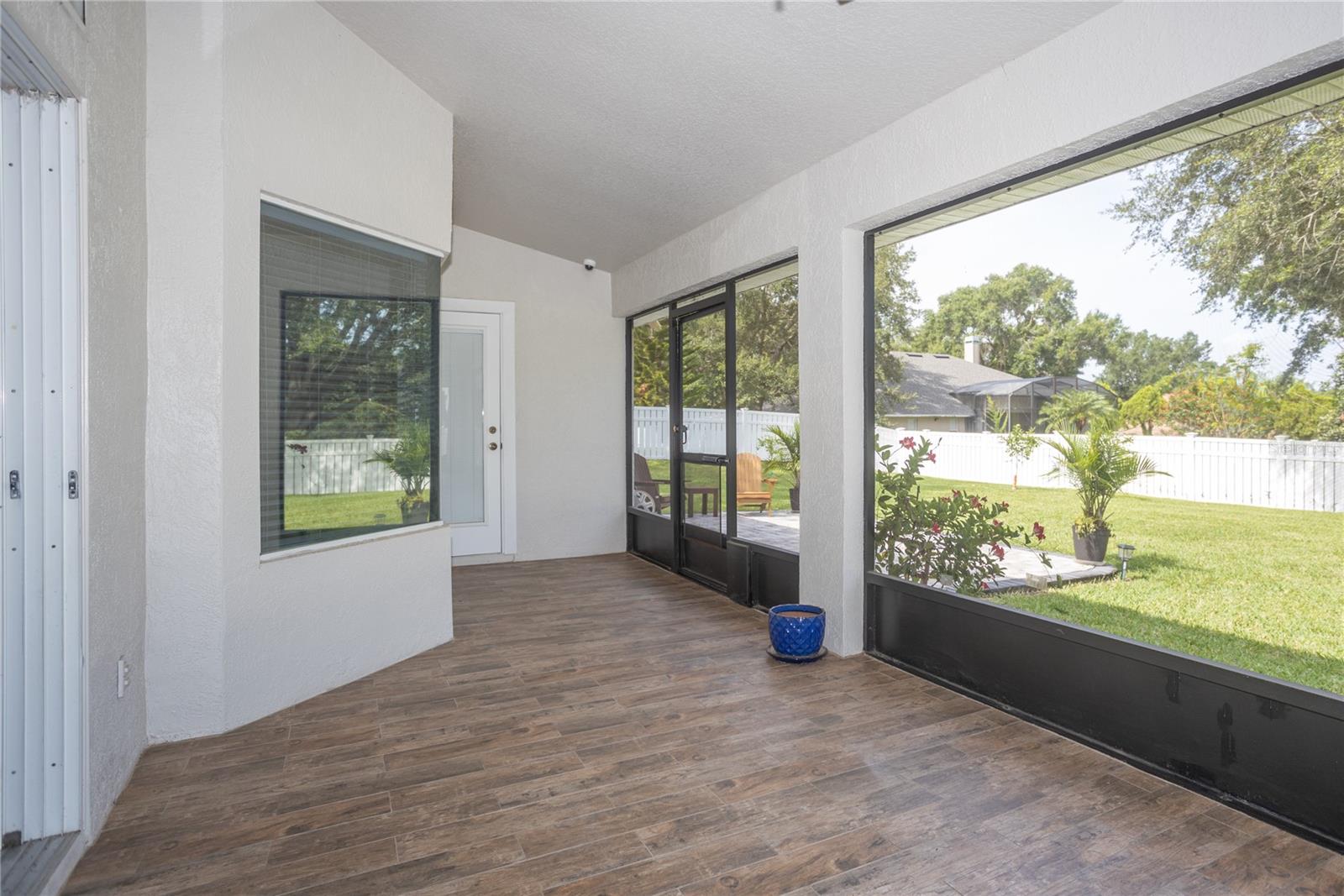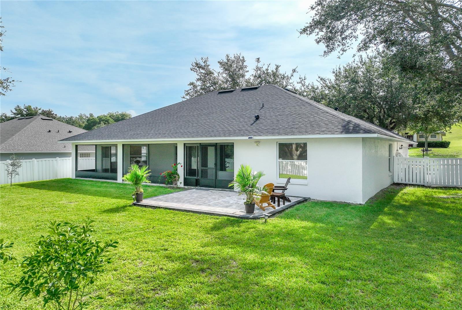 SOUTH LAKE FOREST community located in beautiful Clermont features 3 bedroom, 2 bath home with Bonus Office which can be used as a 4th bedroom. Welcoming double door entrance opens to Great room, eat-in kitchen with breakfast bar and separate dining room. Vaulted ceilings, custom TV panel entertainment center which includes built in soundbar, floating shelves, Philips HUE lighting system and LED fireplace. Kitchen features updated granite countertops, new backsplash and pantry closet. Large primary suite with private access to screened lanai, his and her closets, and updated ensuite bath with large walk in shower, garden tub and double sinks. Separate Laundry Room including washer and dryer. Living area opens to large screened lanai over looking completely fenced, manicured, over-sized backyard with fruit trees. A separate pad with beautiful pavers perfect for fire pit and cookouts. Double car garage. Conveniently located to schools, shopping and the beautiful downtown Clermont. New roof 2021. Exterior painting 2021.