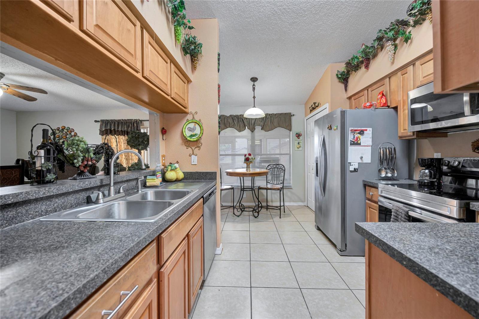 Charming 3-bedroom, 2-bath home on a spacious corner lot. This property features a large, fenced backyard and a storage shed for your convenience. Enjoy outdoor living year-round on the expansive enclosed patio, perfect for entertaining. Inside, you'll love the cute kitchen with stainless steel appliances and a cozy breakfast nook. The home boasts ceramic tiles throughout, adding a touch of elegance and easy maintenance. A perfect blend of comfort and style in a prime location! Don't miss this opportunity! Schedule your showing now!!