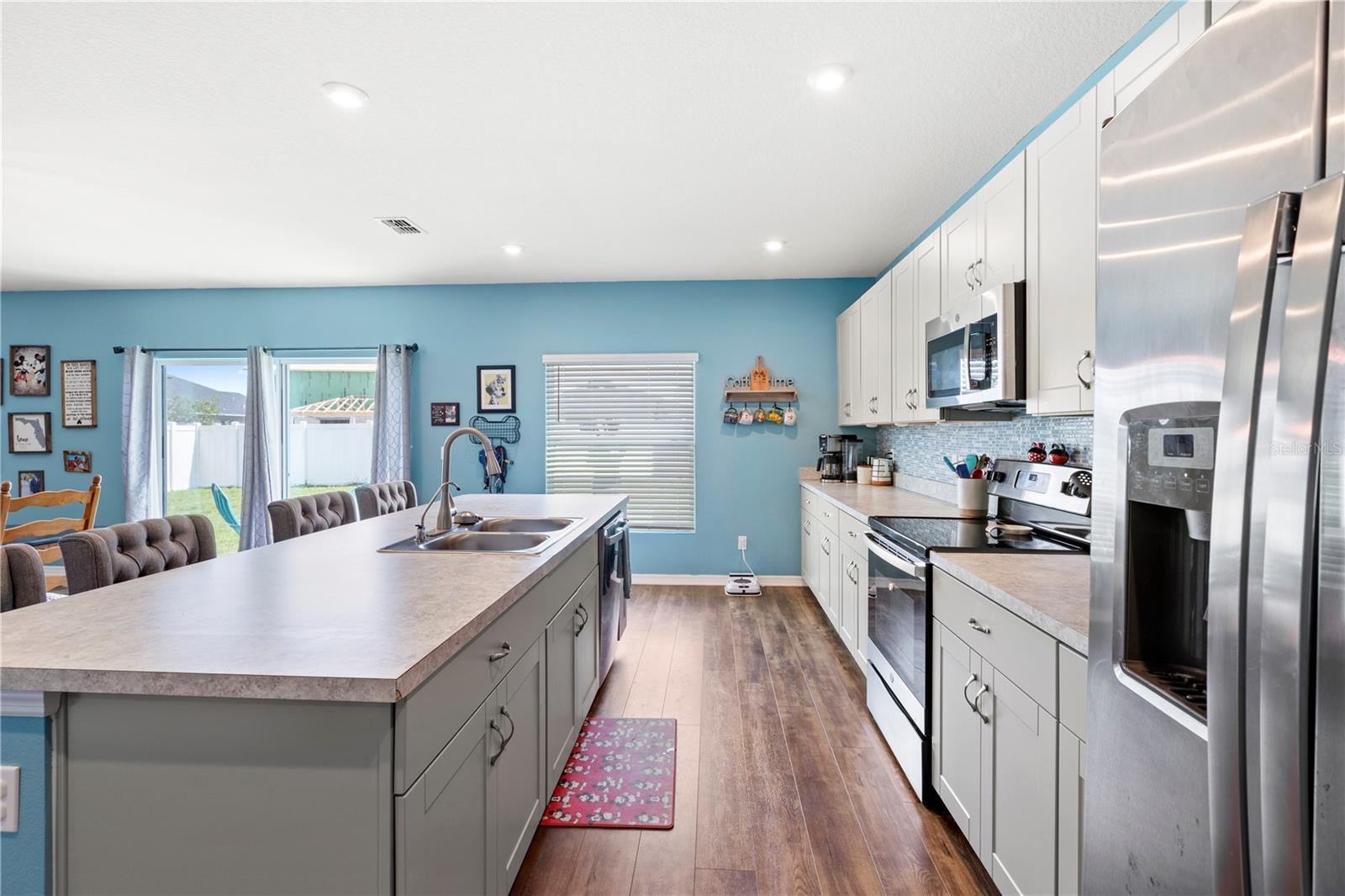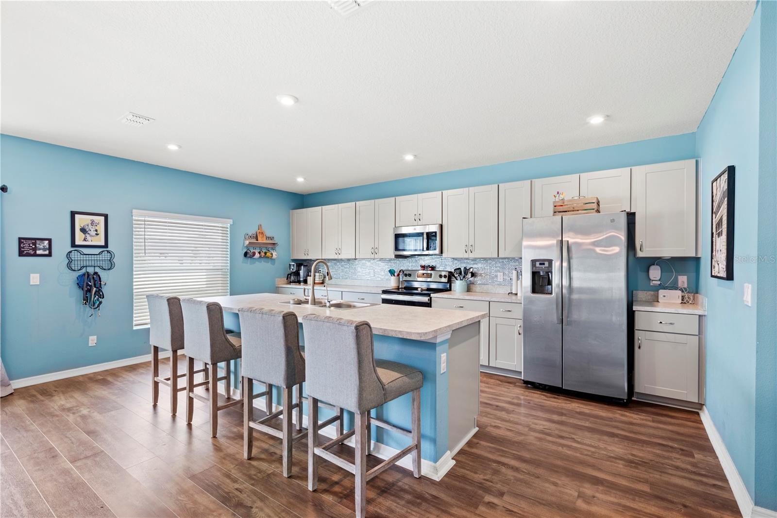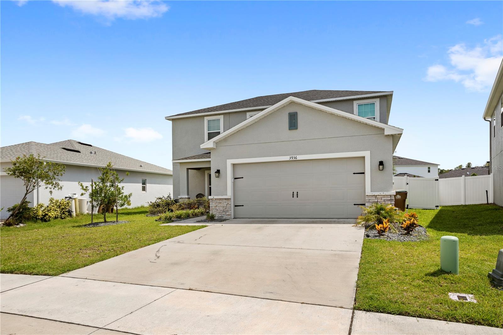 Welcome to this beautifully appointed 4-bedroom, 2.5-bathroom home, nestled in the desirable Sawgrass Bay community in Clermont, situated just 35 minutes from the magic of Walt Disney World and less than 10 minutes from the exciting new Olympus Project! As you enter, you'll be greeted by an open-concept floor plan featuring luxury vinyl flooring and tons of natural light. The heart of the home is the expansive kitchen, showcasing a large island for entertaining, sleek grey cabinetry, a sparkling backsplash, and stainless-steel appliances including an upgraded dishwasher and kitchen faucet with a reverse osmosis drinking system and brushed nickel pull sprayer and glass cleaner. The oversized walk-in pantry provides ample storage space for all your culinary needs, making meal prep a breeze. The first floor also features a powder bath and under the stairs storage space. Just off the kitchen and dining area is the backyard access leading to a large, fenced-in yard with vinyl privacy fencing. There are endless opportunities to create your dream backyard oasis with room for a pool, playground, garden and more! Upstairs, you'll find a two-way split with two rooms on the left, one full bathroom designed with modern grey cabinetry, and the laundry room for convenience. To the right, is a third bedroom and primary suite which overlooks the spacious yard. The owner’s retreat is complete with a nicely sized walk-in closet and upgraded bathroom. This home blends practicality with modern design, providing a fantastic living experience in a vibrant community with amenities including a community pool, playground, picnic area and walking paths. Publix is a short drive from the community and a variety of popular dining destinations and shops are 15 minutes away. Don’t miss your chance to make this beautiful property your new home! HIGHLIGHTS: Roof 2024 (with transferable warranty), HVAC 2020, Water Heater, 2020, Reverse Osmosis Drinking System, Electric Blinds in Stairwell, Newer Samsung Washer/Dryer.