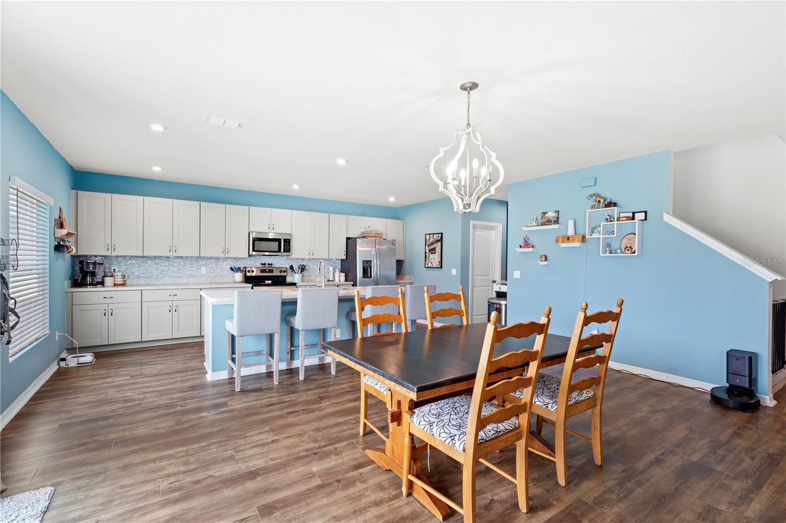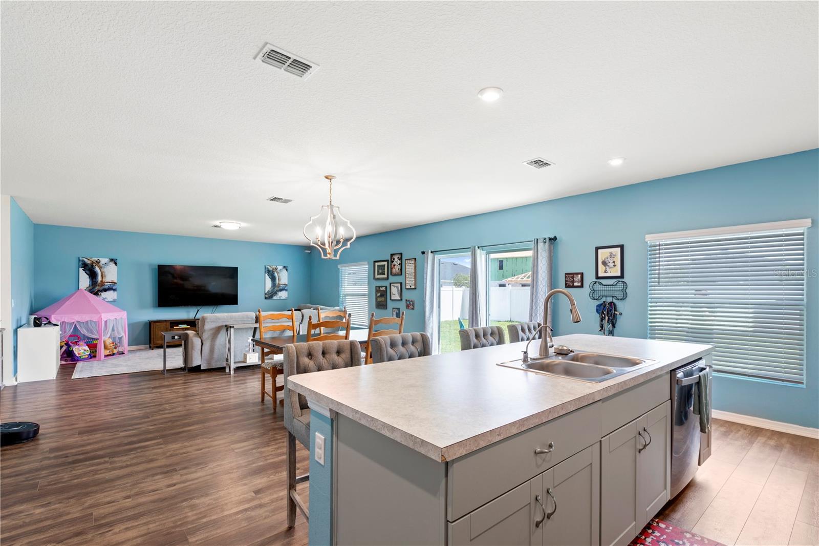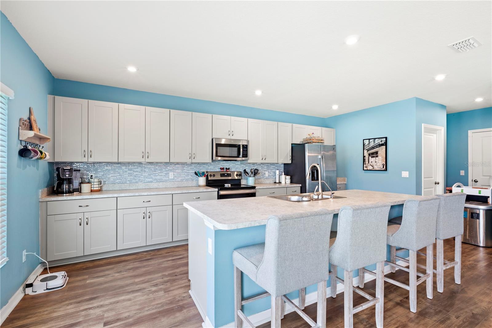 Welcome to this beautifully appointed 4-bedroom, 2.5-bathroom home, nestled in the desirable Sawgrass Bay community in Clermont, situated just 35 minutes from the magic of Walt Disney World and less than 10 minutes from the exciting new Olympus Project! As you enter, you'll be greeted by an open-concept floor plan featuring luxury vinyl flooring and tons of natural light. The heart of the home is the expansive kitchen, showcasing a large island for entertaining, sleek grey cabinetry, a sparkling backsplash, and stainless-steel appliances including an upgraded dishwasher and kitchen faucet with a reverse osmosis drinking system and brushed nickel pull sprayer and glass cleaner. The oversized walk-in pantry provides ample storage space for all your culinary needs, making meal prep a breeze. The first floor also features a powder bath and under the stairs storage space. Just off the kitchen and dining area is the backyard access leading to a large, fenced-in yard with vinyl privacy fencing. There are endless opportunities to create your dream backyard oasis with room for a pool, playground, garden and more! Upstairs, you'll find a two-way split with two rooms on the left, one full bathroom designed with modern grey cabinetry, and the laundry room for convenience. To the right, is a third bedroom and primary suite which overlooks the spacious yard. The owner’s retreat is complete with a nicely sized walk-in closet and upgraded bathroom. This home blends practicality with modern design, providing a fantastic living experience in a vibrant community with amenities including a community pool, playground, picnic area and walking paths. Publix is a short drive from the community and a variety of popular dining destinations and shops are 15 minutes away. Don’t miss your chance to make this beautiful property your new home! HIGHLIGHTS: Roof 2024 (with transferable warranty), HVAC 2020, Water Heater, 2020, Reverse Osmosis Drinking System, Electric Blinds in Stairwell, Newer Samsung Washer/Dryer.