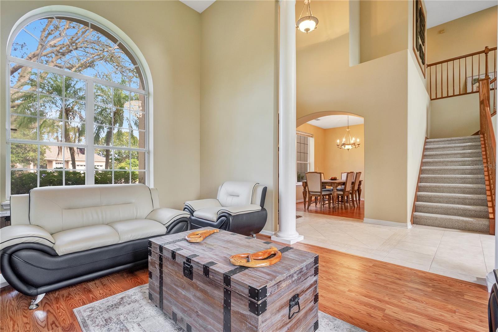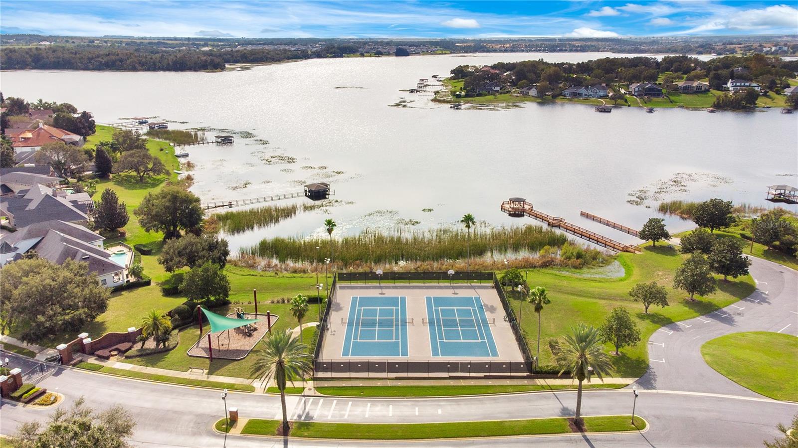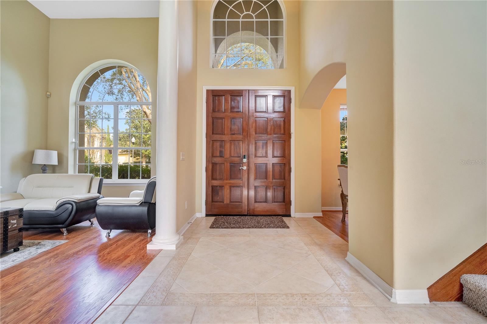 Motivated Seller. Just reduced the price to sell! Custom home in guarded, gated and private Magnolia Pointe! Pulling into the neighborhood through the guard gates you immediately feel safe and secure of where you live. From the moment you pull into the cul-de-sac, the home welcomes you and gives you sense of pride. From the fountain in the front walkway, to the 8' wooden double doors, to the inviting landscaping and entering the home your eyes are pulled upward along the soaring columns to the 22' ceilings filled with natural light from the tall, arched windows. Ceramic inlays decorate the foyer and kitchen floors while wood laminate dresses the dining room and sitting room. The sitting room invites you into the room to read, relax with a glass of wine, and feel at peace. The family room is open to the kitchen and nook and is flanked by a classic oak staircase banister and spindles. The screened patio offers a space to dine and enjoy the great Florida weather. Even the sliding glass doors collapse into the wall opening the entire family room to the patio. A gas stove anchors the kitchen while 42" wood cabinets topped with crown-molding and a beveled-edge countertop bring a feeling of class to the kitchen . Upstairs the master suite offers his and hers closets, dual vanities, a walk-in shower, a soaking tub, and a balcony. On Clear nights, fireworks from Magic Kingdom can be seen. The 2nd and 3rd bedrooms share a bathroom at the end of the hall. The 3rd bedroom also has a balcony opening on the front of the home, giving light and a special feeling to this room. The 4th bedroom and 3rd bathroom are downstairs ready for your creative ideas for the space. The home is only 1 block from the community pool and the backyard is shaded with mature oaks. Other neighborhood amenities include a boat ramp on John's Lake, tennis courts, basketball, and a playground! Close to shopping, the turnpike, and in a great school zone. Come see and feel this wonderful home!