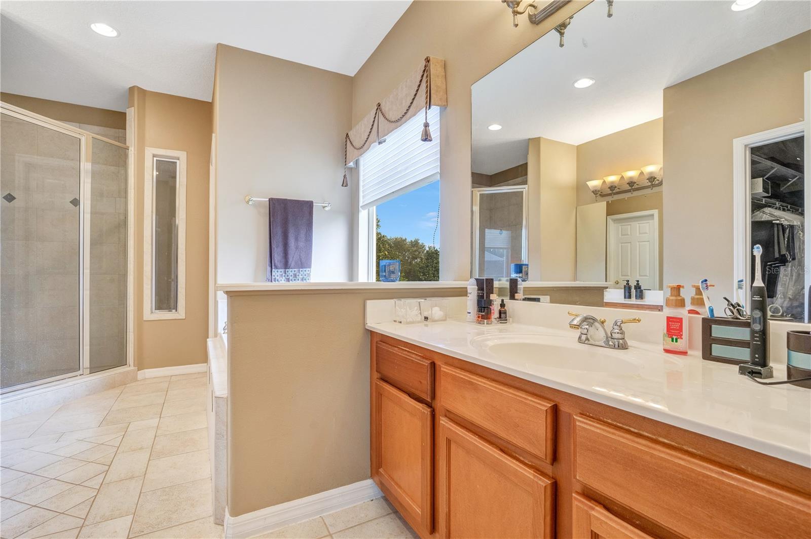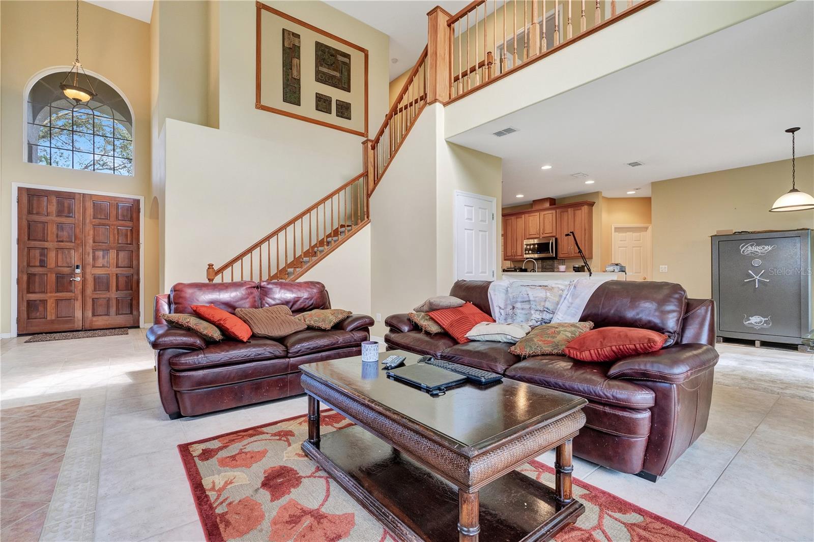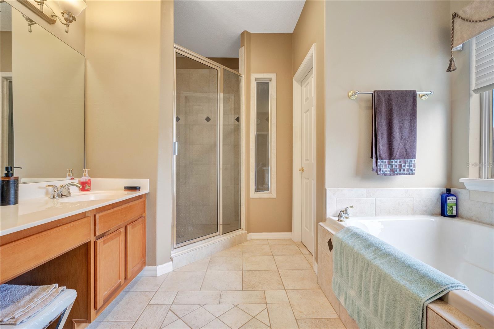 Motivated Seller. Just reduced the price to sell! Custom home in guarded, gated and private Magnolia Pointe! Pulling into the neighborhood through the guard gates you immediately feel safe and secure of where you live. From the moment you pull into the cul-de-sac, the home welcomes you and gives you sense of pride. From the fountain in the front walkway, to the 8' wooden double doors, to the inviting landscaping and entering the home your eyes are pulled upward along the soaring columns to the 22' ceilings filled with natural light from the tall, arched windows. Ceramic inlays decorate the foyer and kitchen floors while wood laminate dresses the dining room and sitting room. The sitting room invites you into the room to read, relax with a glass of wine, and feel at peace. The family room is open to the kitchen and nook and is flanked by a classic oak staircase banister and spindles. The screened patio offers a space to dine and enjoy the great Florida weather. Even the sliding glass doors collapse into the wall opening the entire family room to the patio. A gas stove anchors the kitchen while 42" wood cabinets topped with crown-molding and a beveled-edge countertop bring a feeling of class to the kitchen . Upstairs the master suite offers his and hers closets, dual vanities, a walk-in shower, a soaking tub, and a balcony. On Clear nights, fireworks from Magic Kingdom can be seen. The 2nd and 3rd bedrooms share a bathroom at the end of the hall. The 3rd bedroom also has a balcony opening on the front of the home, giving light and a special feeling to this room. The 4th bedroom and 3rd bathroom are downstairs ready for your creative ideas for the space. The home is only 1 block from the community pool and the backyard is shaded with mature oaks. Other neighborhood amenities include a boat ramp on John's Lake, tennis courts, basketball, and a playground! Close to shopping, the turnpike, and in a great school zone. Come see and feel this wonderful home!