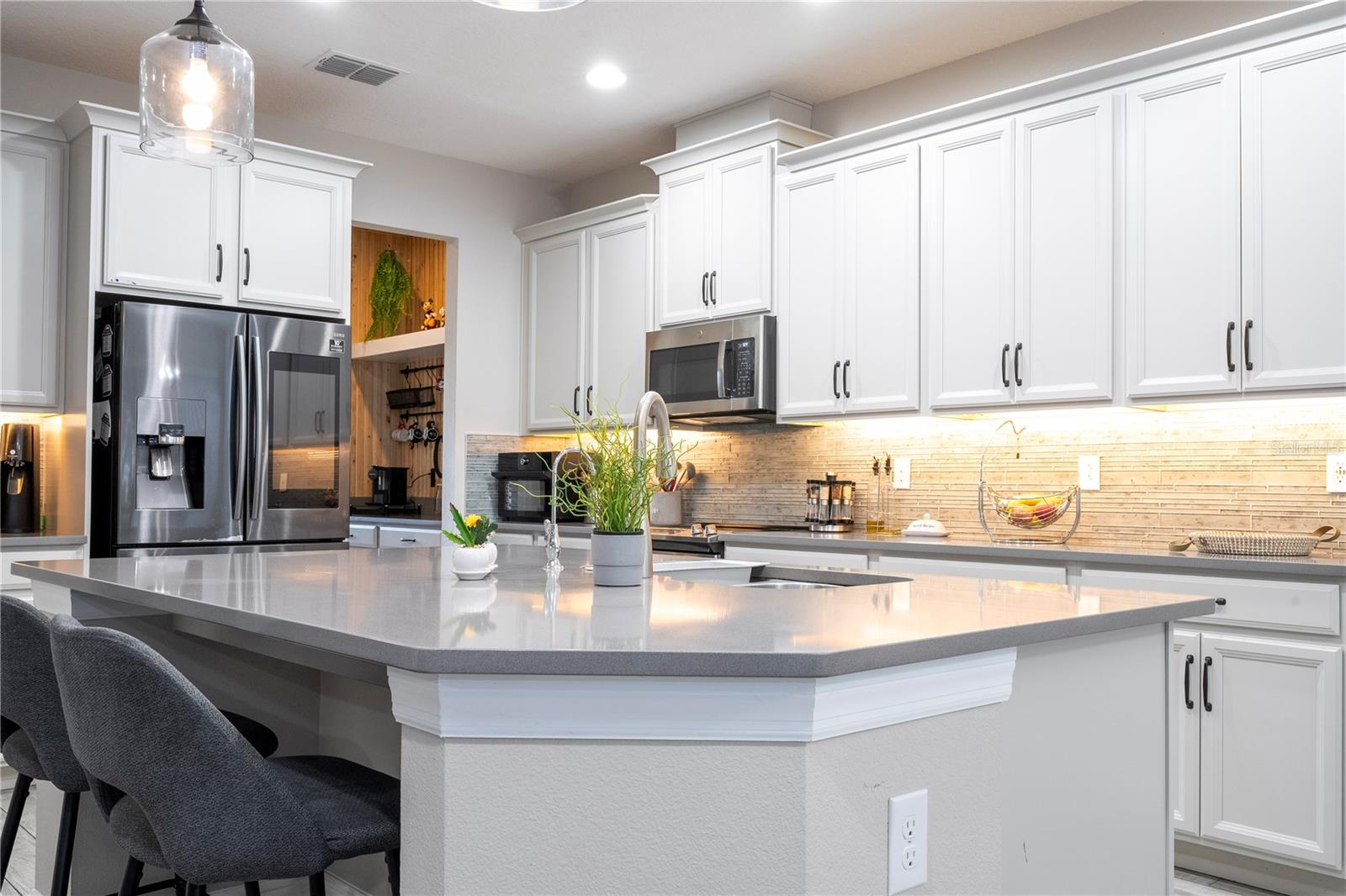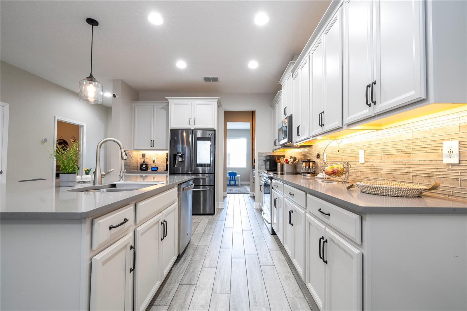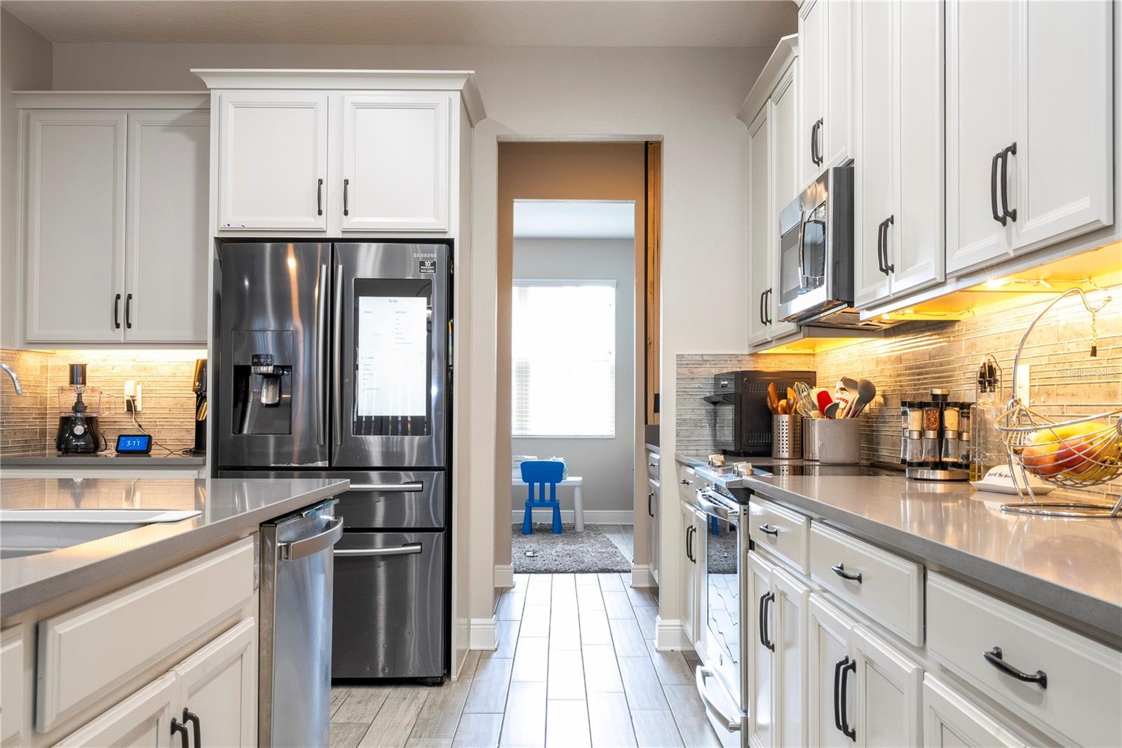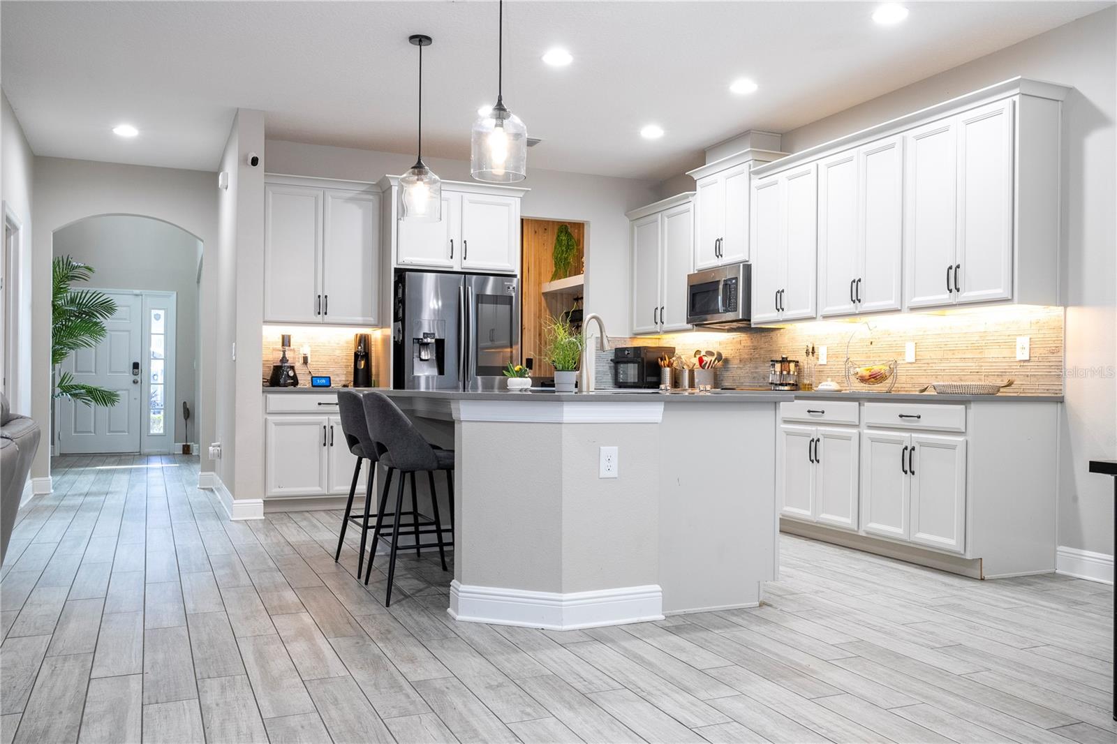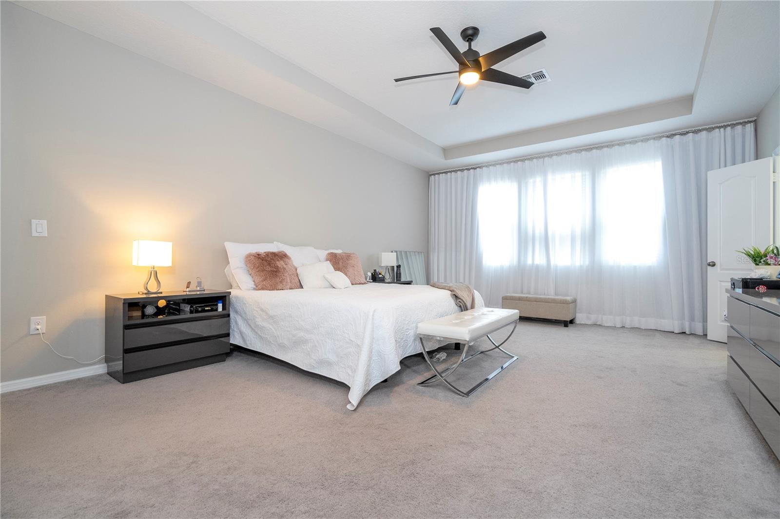 Welcome to this stunning 5-bedroom, 4-bathroom residence, built in 2019, spans an impressive 3,556 square feet. Enjoy the little luxuries! This home features a water softener for softer skin, shinier hair, and sparkling clean appliances, no more hard water headaches, Endless hot water on demand it also features a tankless water heater, meaning no more cold showers or running out! Enjoy energy savings & constant hot water. SOLAR PANELS, which will greatly reduce the electric bill. Step inside to be greeted by an open and airy floor plan, abundant natural light. Beautiful kitchen, equipped with stainless appliances, 42-inc cabinets, tile backsplash, spacious walk-in butler pantry, flows seamlessly into the spacious living and dining areas, making it ideal for both entertaining and everyday living.The master suite is a true retreat, boasting a lavish en-suite bathroom with a soaking tub, a separate shower, and a large walk-in closet. Each additional bedroom offers ample space and comfort, perfect for family, guests, or a home office.Outside, enjoy covered extend screened in lanai, perfect for outdoor gatherings. The home is nestled in a eminent and serene community, which is known for its friendly neighbors, top-rated schools, and convenient access to shopping, dining, and recreational facilities. when would you like to tour this home?