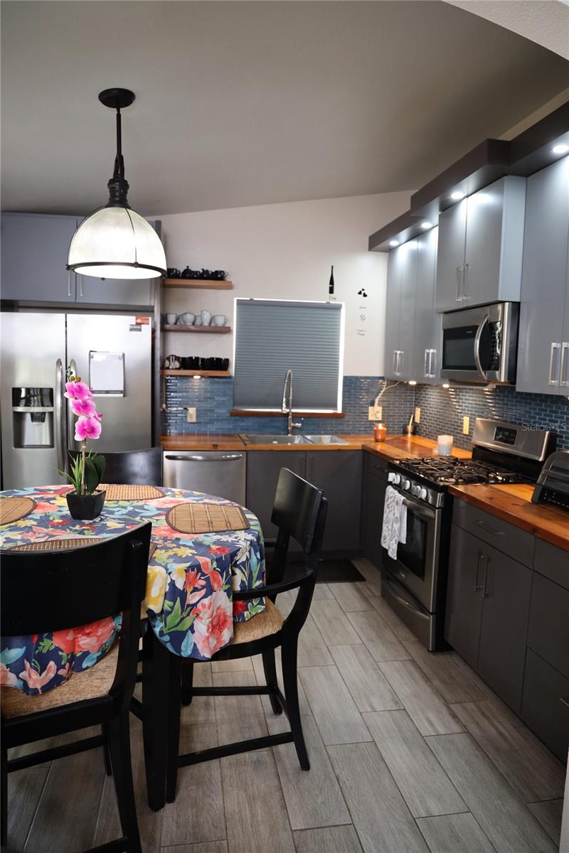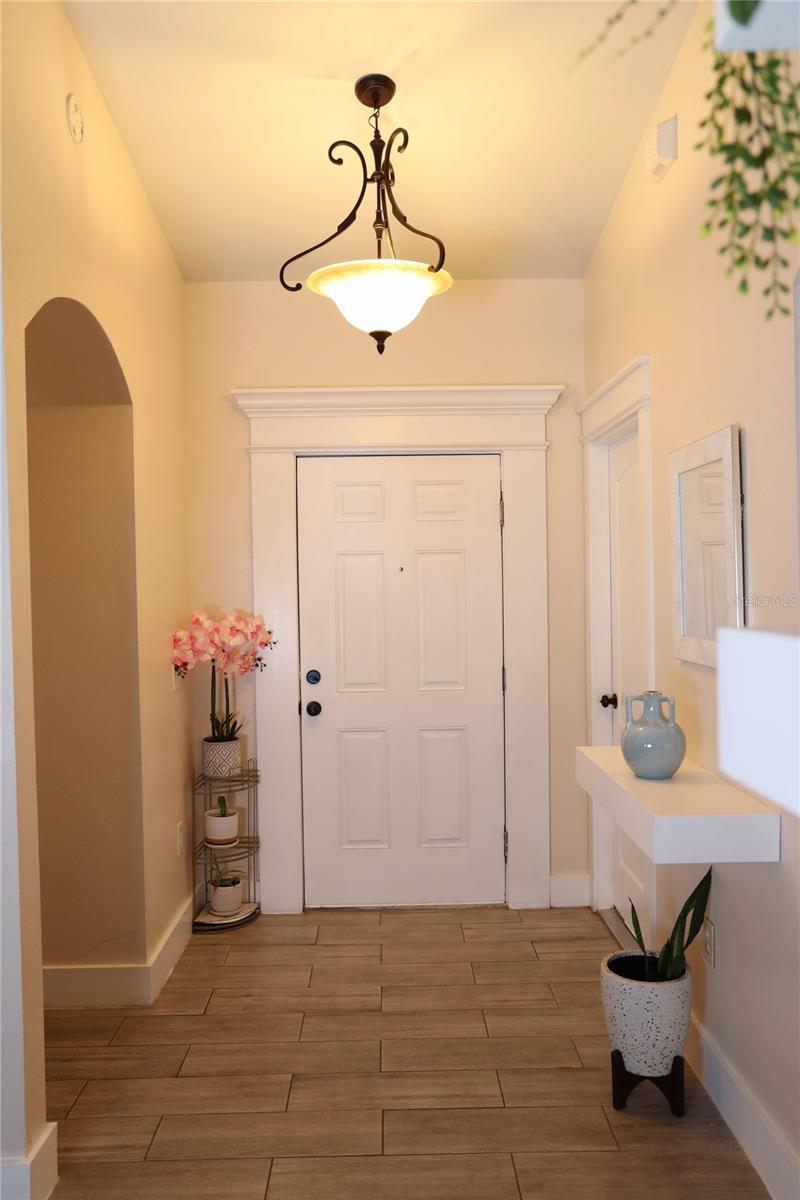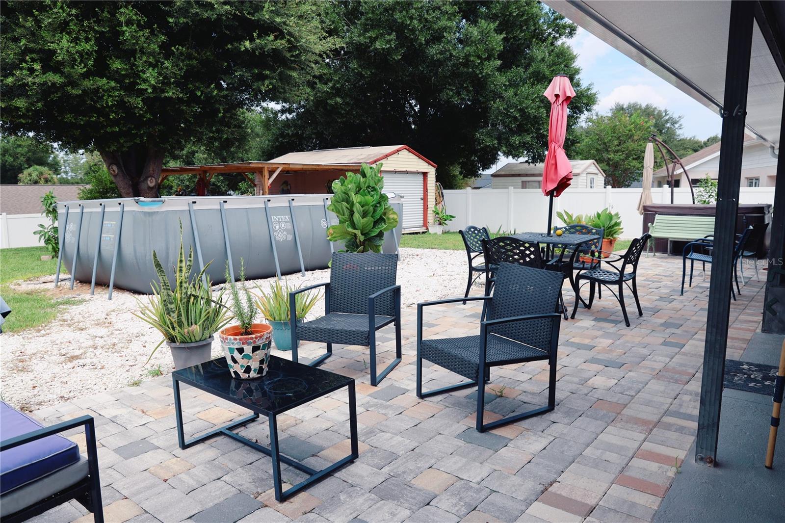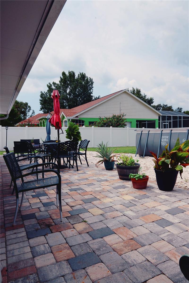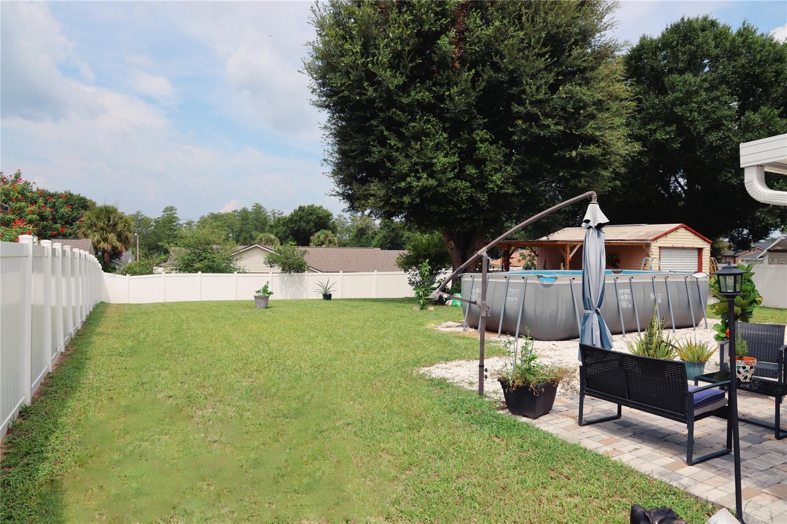 Discover comfort and privacy in this beautiful home, perfectly situated on a secluded cul-de-sac. The split floor plan ensures personal space, while the oversized lot is ideal for outdoor activities. Enjoy mornings on the screened-in front patio or relax in the cozy Florida room. A stand-alone shed/utility room (12ft x 20ft) adds extra storage. The kitchen is a showstopper with custom cabinetry, WOOD CYPRESS countertops, and a CERAMIC tile backsplash. Stainless steel appliances and ample storage make it both stylish and functional. Located in Greater Groves, enjoy a community pool, play area, and sports courts for just a $550 annual HOA fee. Minutes from shopping, dining, and 20 minutes from Disney, this home is perfect for full-time living or as a vacation rental. Key Features: NEW ROOF UNDER A YEAR OLD, Two-car garage with extra storage, Screened-in front patio & Florida room, Stand-alone shed/utility room and Low annual HOA fee: $550