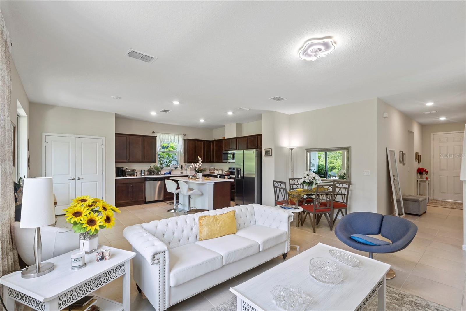 Welcome to this stunning move-in-ready home, built in 2022, where modern living meets serene surroundings. As you step inside, you’ll be greeted by an abundance of natural light that flows effortlessly through the open-concept main floor, beautifully accented with sleek tile flooring. The main floor features a full guest bedroom and full bathroom, offering convenience and flexibility for guests or multi-generational living. The spacious loft upstairs provides a versatile space perfect for an office, playroom, or additional living area. Step outside to the covered back porch, where you can unwind and enjoy the tranquil conservation view with no back neighbors, ensuring privacy and peace. A paved driveway adds to the curb appeal of this exceptional home. Located in the desirable Serenoa Lakes community, this home offers access to resort-style amenities, including a private kayak launch to Hancock Lake, a zero-entry pool, clubhouse, dog park, and splash pad. The community is also well-connected, with easy access to Winter Garden and nearby theme parks. Don’t miss this opportunity to own a beautifully maintained home that combines style, comfort, and nature all in one!