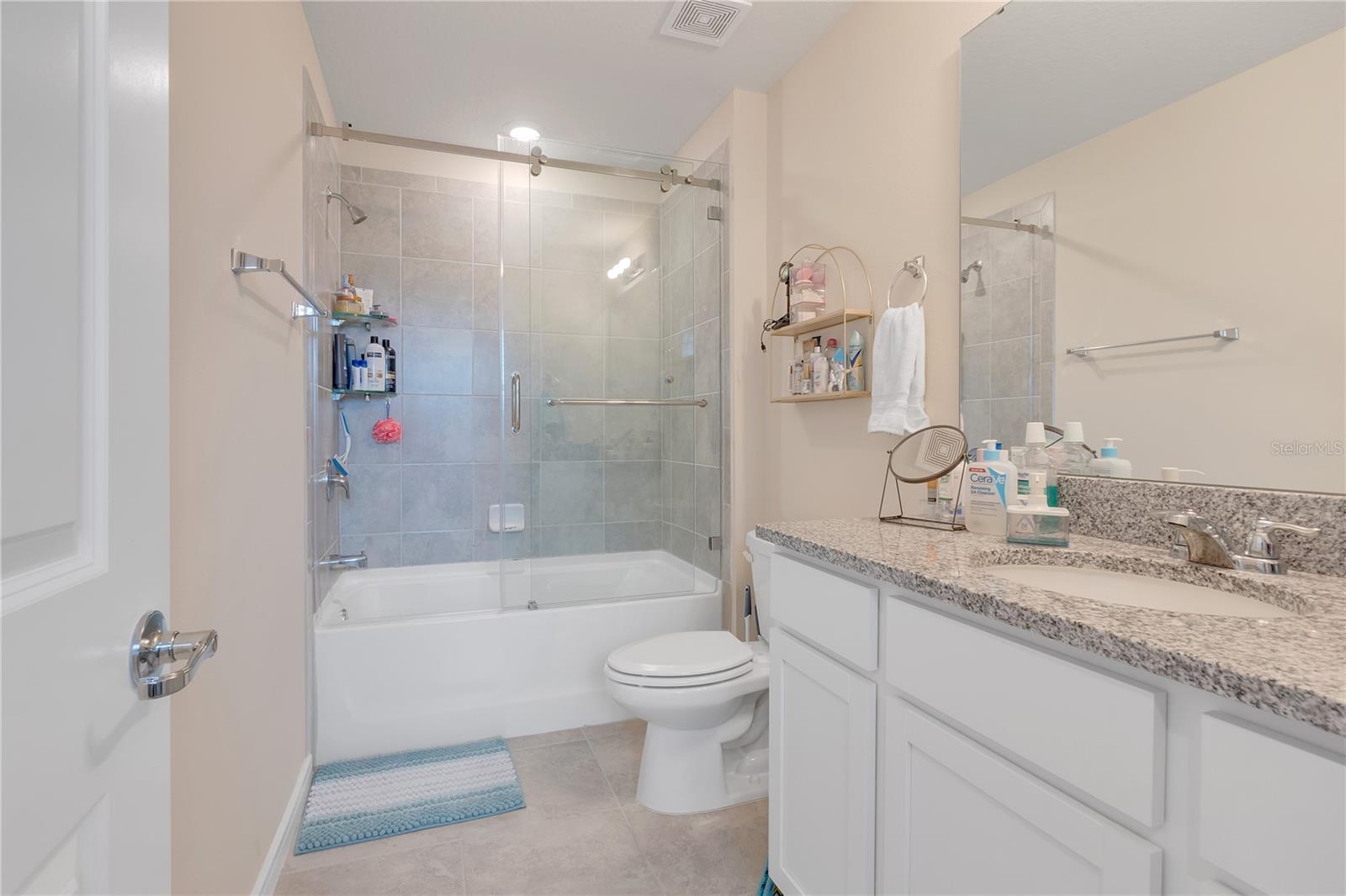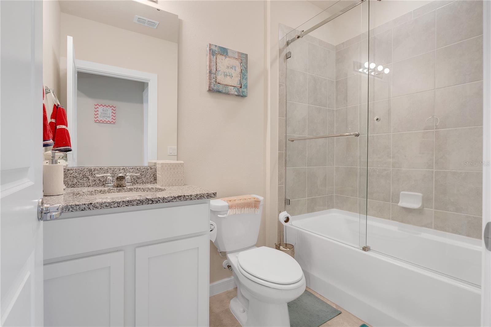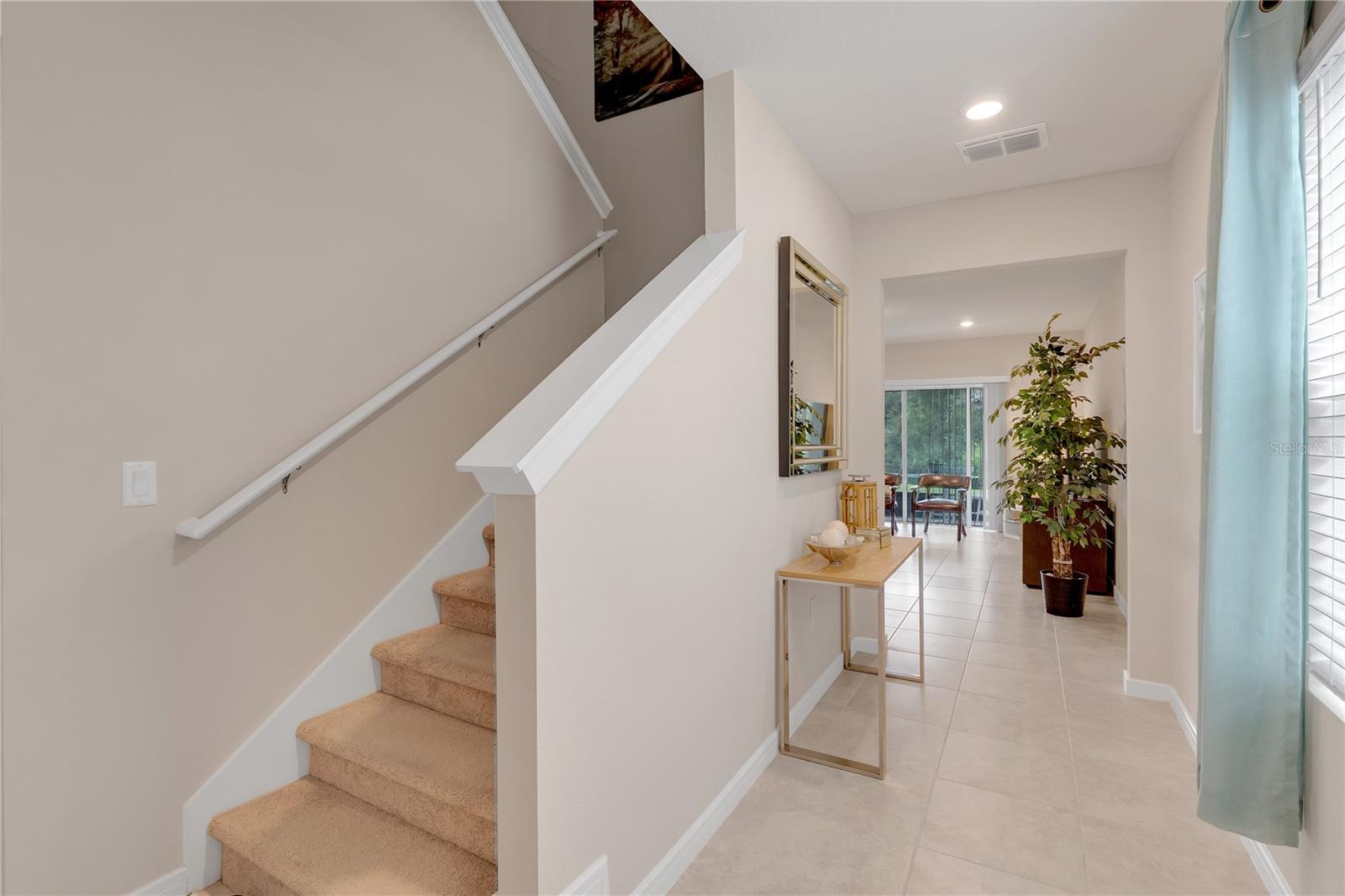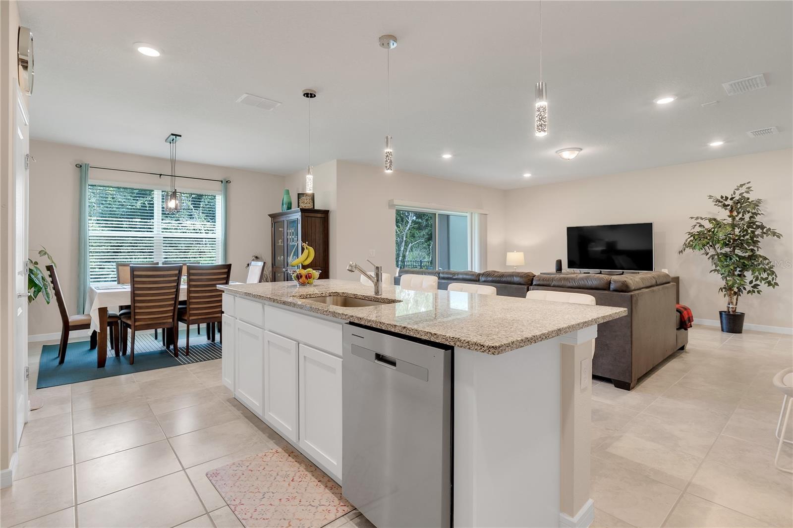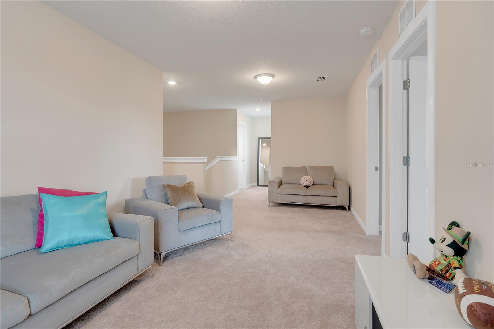 Built in 2023 this home is Turn key and ready for a new owner! Featuring stunning preservation views. This spacious property includes 5 bedrooms, 3 bathrooms, an upstairs loft, and a 2-car garage, thoughtfully designed with modern conveniences such as a washer, dryer, refrigerator, window blinds, and ample storage throughout. Solar panels to save on electricity and water softener system throughout the entire home. The open-concept first floor seamlessly integrates the kitchen, café, and gathering room, creating an ideal space for entertaining. The kitchen boasts a center island, storage pantry, stainless steel Whirlpool appliances, elegant cabinetry, and granite countertops. Step out to the lanai, located just beyond the café, for effortless indoor and outdoor entertaining. The main level also features a bedroom and full bathroom, perfect for accommodating guests or creating a private home office. Upstairs, the second floor offers ample space for the entire family, including a spacious loft, laundry room, three additional bedrooms, a third full bathroom, and the luxurious Owner’s Suite. The Owner’s Suite is a true retreat, complete with a large walk-in closet, en suite bathroom featuring a double quartz-topped vanity, dual sinks, a linen closet, and a walk-in shower. This home comes equipped with premium features, including a washer, dryer, refrigerator, blinds, a direct vented range hood, and our professionally curated Preferred design package. The kitchen is adorned with Villanova cabinetry, Majestic granite countertops, and Maple quartz countertops in the bathrooms. The first-floor living areas, bathrooms, and laundry room are graced with Boston Perla ceramic tile flooring, while stain-resistant Bare Mineral carpet adds comfort to the bedrooms and loft. This spacious Tybee home is perfect for relaxing and entertaining with family and friends. Located in the gated community of Cagan Crossings, this property offers affordable living with easy access to nearby attractions, shopping, and dining. The community features family-friendly amenities, including a pool with a cabana, playground, covered picnic area, and scenic wetland views. With highly ranked schools nearby, a convenient location just off Hwy-27, nine miles from I-4, and less than ten minutes to Disney, this is an opportunity you don’t want to miss!