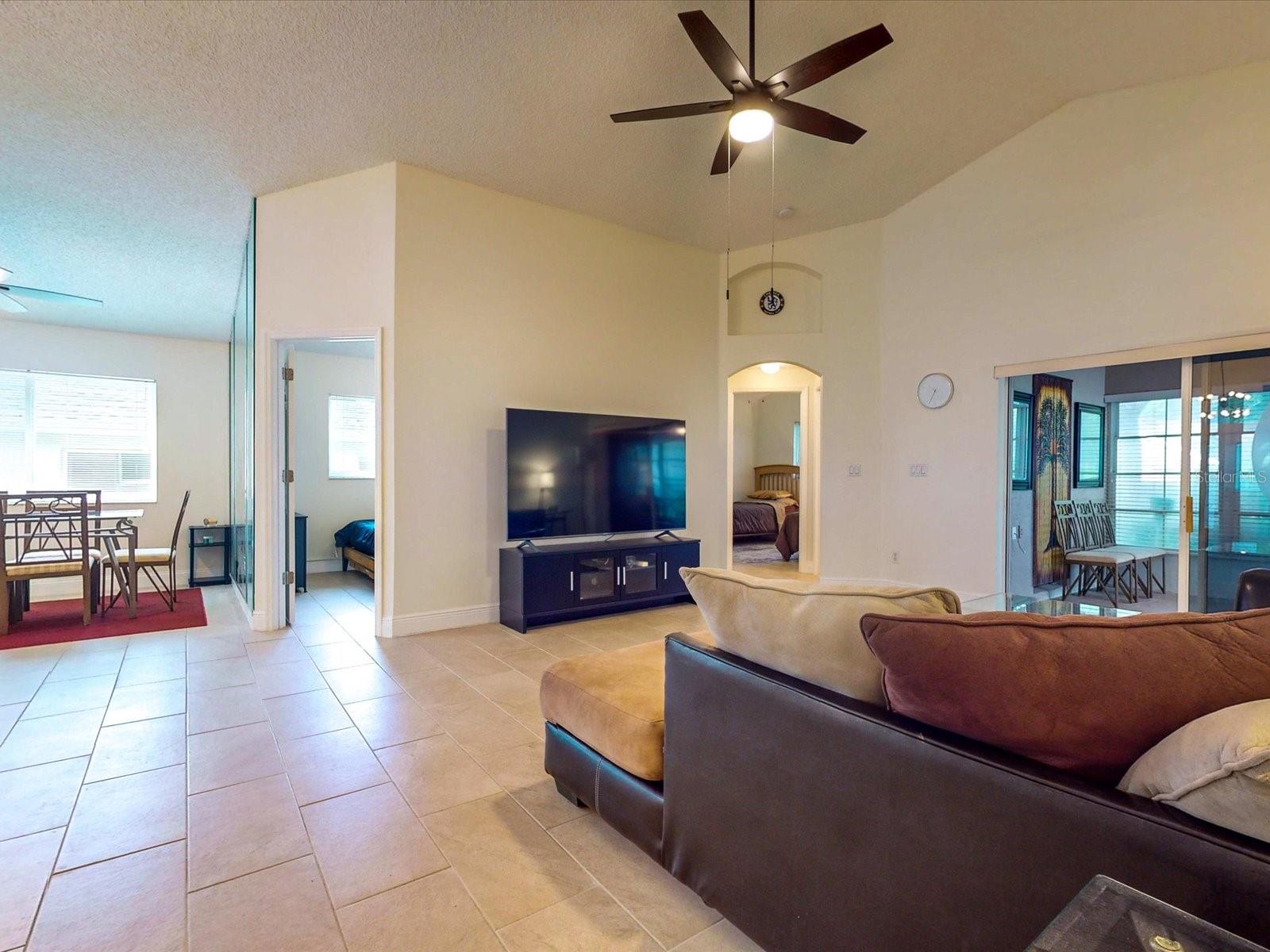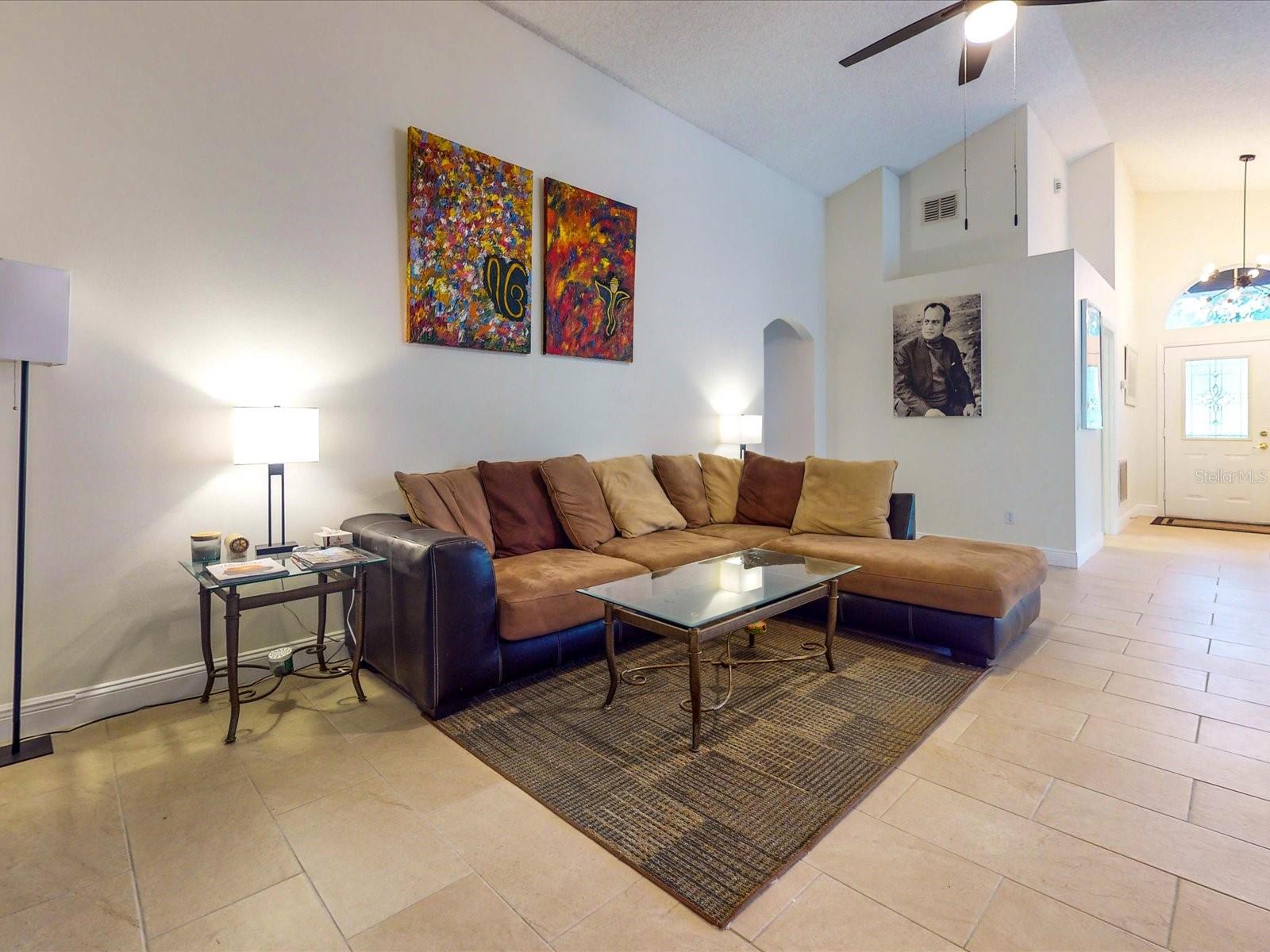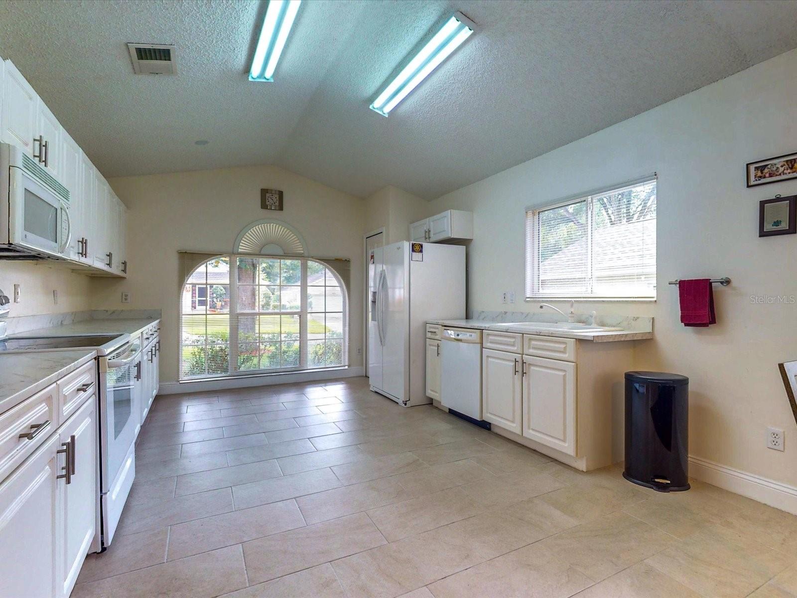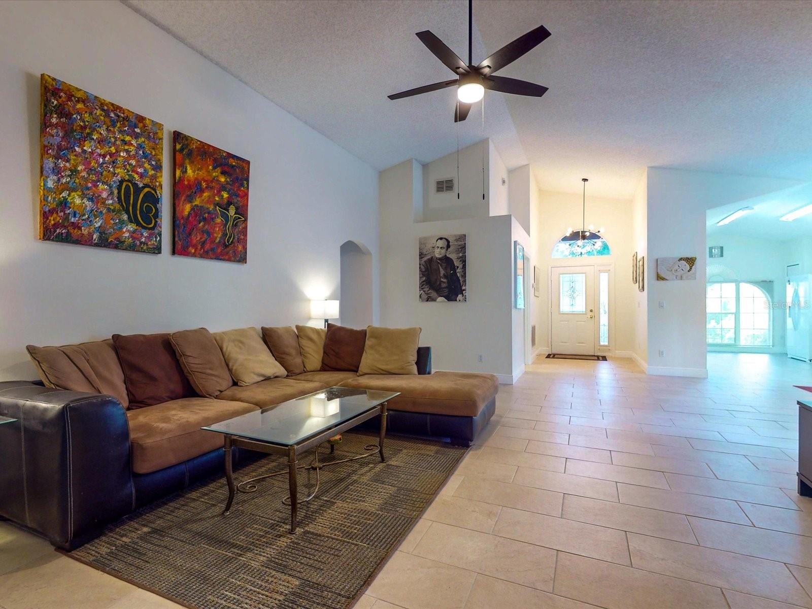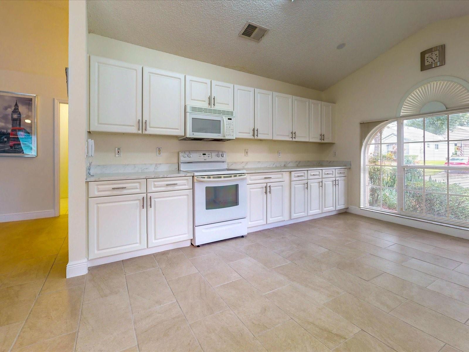 Your search is over with this gorgeous 3BD/2BA nestled in the active 55+ adult, gated community of King’s Ridge. As you drive through your neighborhood, you’ll be greeted by well manicured lawns and friendly neighbors. A glass front entry adds a touch of elegance and allows light to flow into the foyer. Entertaining is a joy in the Kent floor plan where the eat-in kitchen overlooks the formal dining space and is open to the family room. Vaulted ceilings, arched entrance ways and a mirrored wall create an open and inviting atmosphere, enhanced by the Florida sunshine flowing through the large windows. The Kent is a highly sought after floor plan for its additional den space, allowing for an extra guest room or office. Imagine all the outdoor living possibilities from your Florida room, with mature hedges that line the windows and a peek-a-book view of your lemon tree. Peace is achievable with a split floor plan, where the family room acts as a buffer between sleeping zones. After a day of fun in the sun, a personal retreat awaits you in your owner’s suite where you will find spacious accommodations with a large walk-in closet, separate vanity space, a separate water closet, and private access to the Florida room via sliding glass doors. Feel confident in owning a well maintained home that is ready for you to move in and make it your own! Kings Ridge not only offers well built homes, but also a fulfilling retirement lifestyle. Take a dip in one of the 3 pools, soak the 'kinks' out in one of the 2 spas, relax and read a book in one of the 4 cabanas, or take part in one of the many games played at the Royal Club. Join some of the many clubs and groups, attend seminars in the clubhouse, or enjoy some hobbies and crafts such as ceramics, needlecraft, or photography. Workout in one of the 2 exercise rooms, or take a class in the aerobics room. If you’d rather be outdoors there are two golf courses and tennis, pickleball, basketball, bocce and/or shuffleboard courts. There is always something to do at Kings Ridge! Enjoy an afternoon or evening at one of the professional productions on the ballroom stage, or a production put on by your Kings Ridge neighbors. Meet new friends at the bimonthly Friday night socials. Need something at the store? Just hop in your golf cart or take a stroll to the Kings Ridge Publix shopping plaza. Located on Hwy 27 and just 3 miles away from State Rd 50, you're just a short drive from hospitals, shopping, dining and all that Clermont has to offer. Live in a community that takes pride in their homes - the HOA fee covers: lawn maintenance, lawn irrigation & maintenance with reclaimed water, painting the house every 6 years, cable, internet and home phone. Fully embrace the Florida lifestyle and make this inviting home yours today!