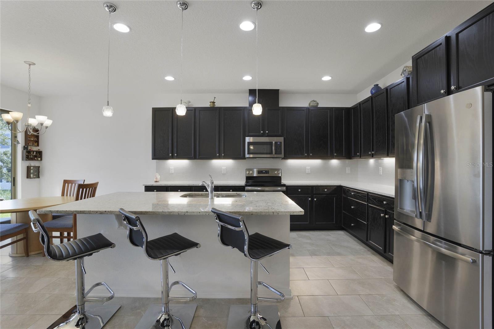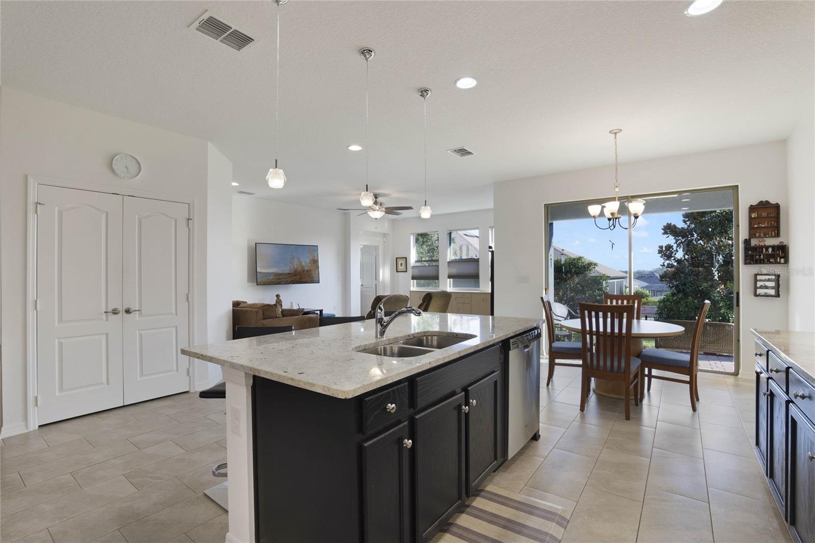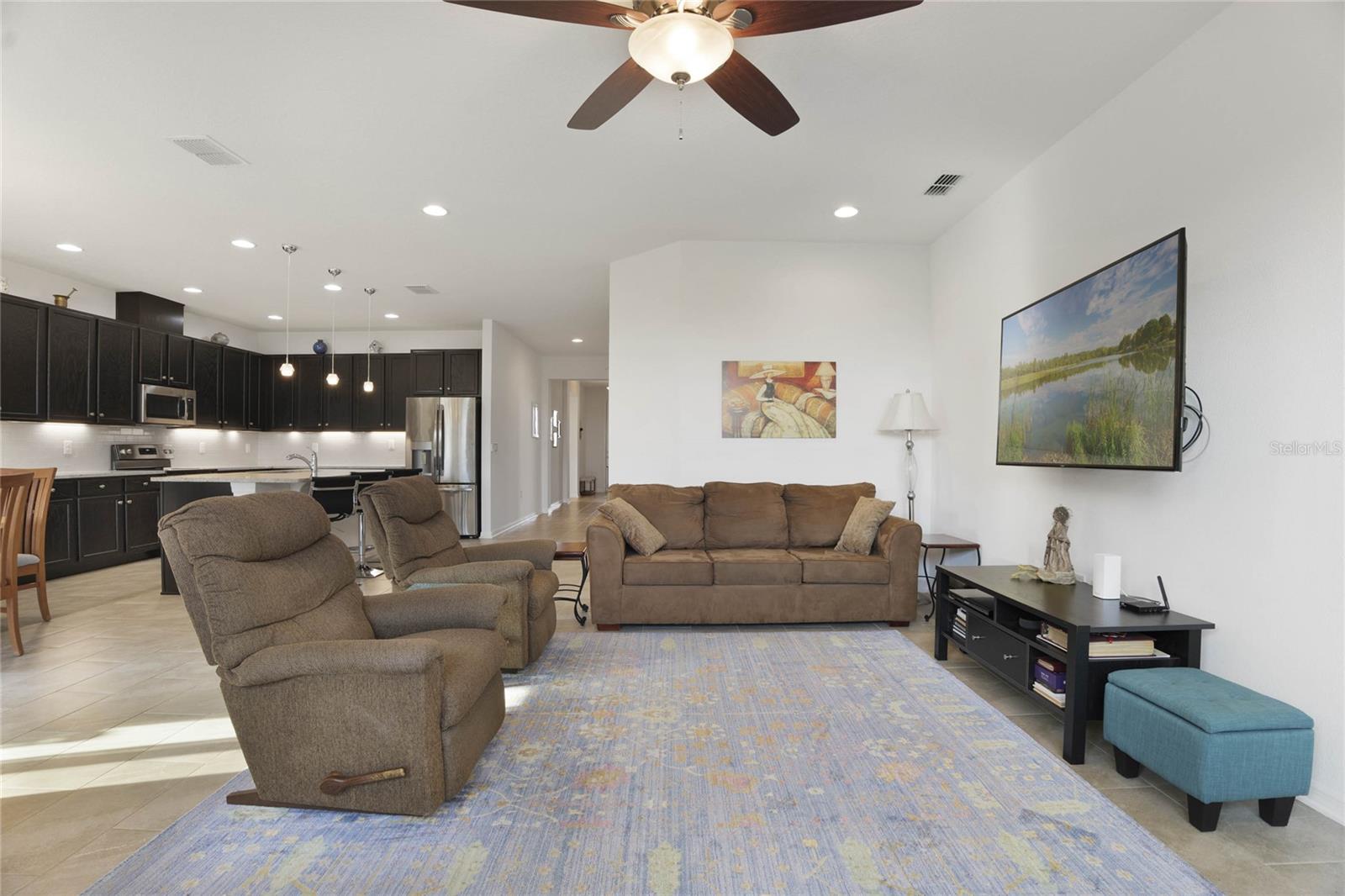 Welcome Home! As you make your way through the community you can't help but notice the serene features of Johns Lake. This stunning, well-maintained property features 4 bedrooms and 3 bathrooms with an inviting open floorplan. Tile flooring flows throughout, making maintenance a breeze. Perfect for guests or in-laws, the 4th bedroom comes with its own full bathroom for added privacy. The master suite features dual sinks, a huge walk-in closet, and a separate garden tub with double shower heads for a spa-like retreat. The kitchen showcases elegant granite countertops, endless cabinetry with under-cabinet lighting, and all appliances are included. Enjoy an abundance of natural light throughout this amazing property, creating a warm and welcoming atmosphere. Stay entertained with both a 45-inch and a 65-inch wall mounted TV's included, along with a Ring doorbell and additional security features for peace of mind. The home is equipped with an electrical air filter and ultraviolet carbon filter in the air handler for added protection, as well as an Ecobee thermostat for smart climate control. Conveniently located near great schools, major highways, shopping, dining, and the new Clermont Costco, this home is the perfect blend of comfort and accessibility. Don’t miss out on this incredible opportunity—schedule your showing today!