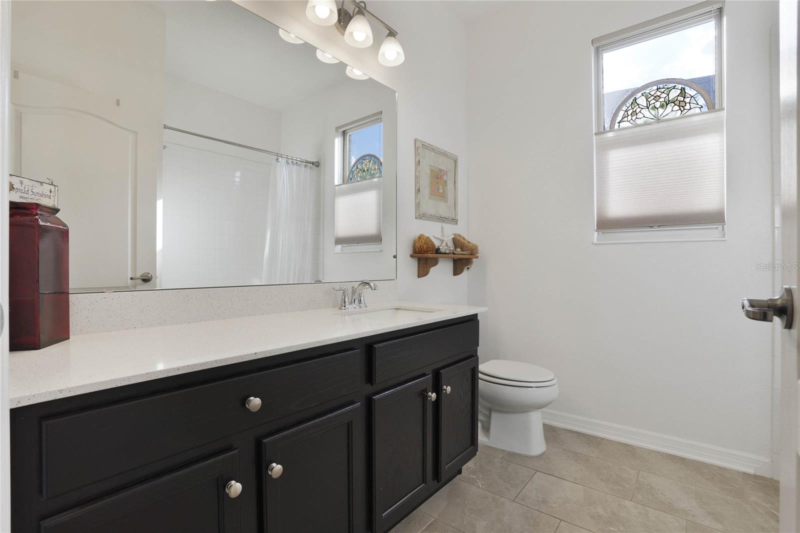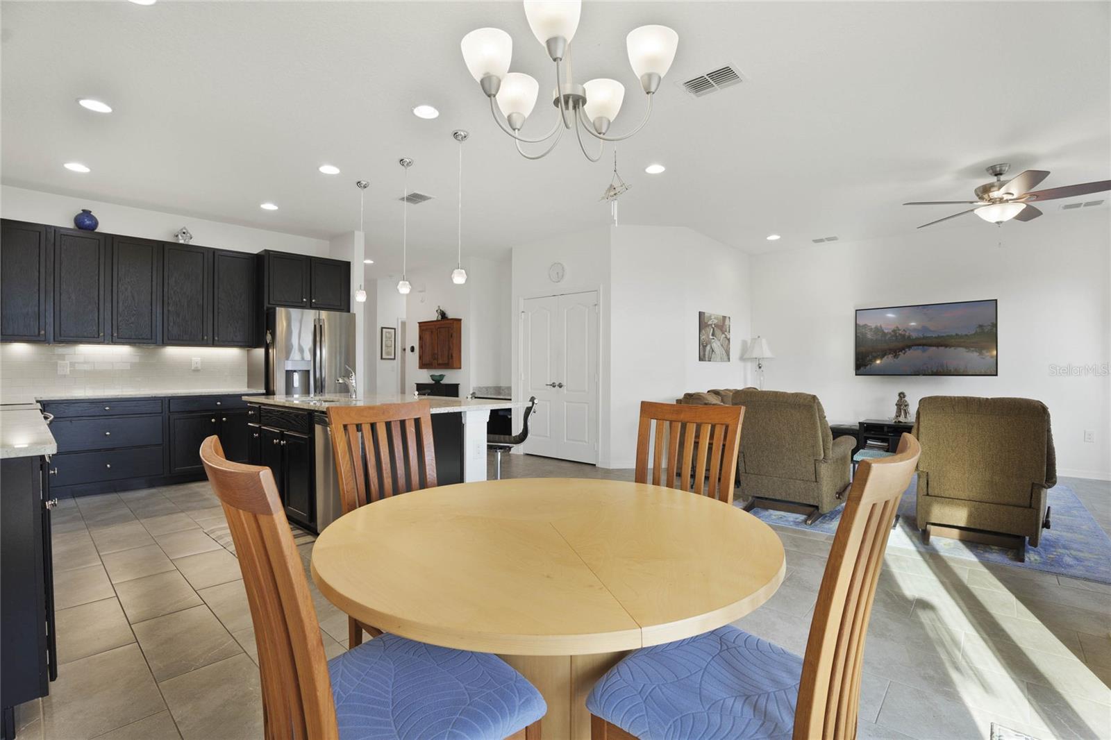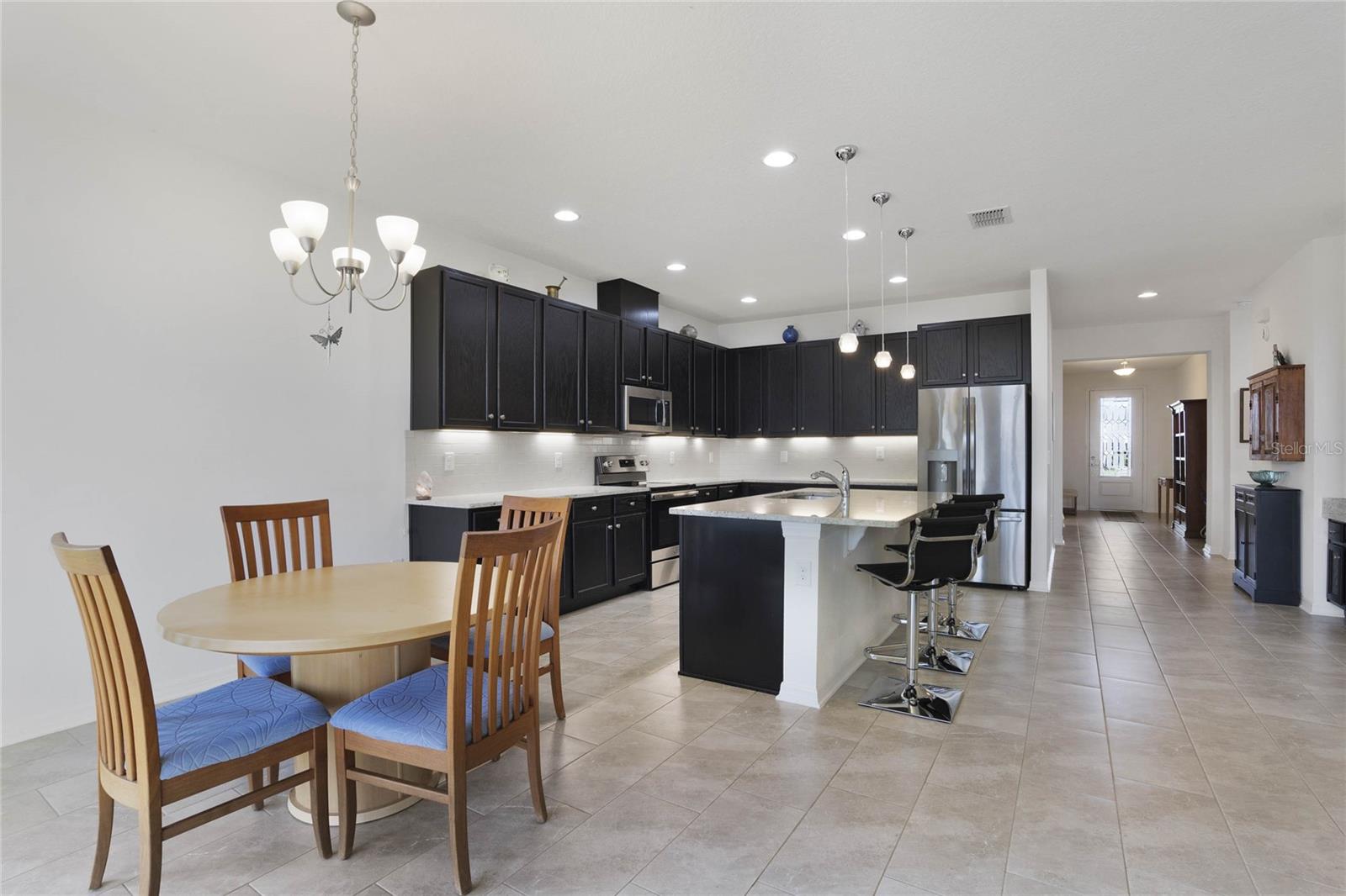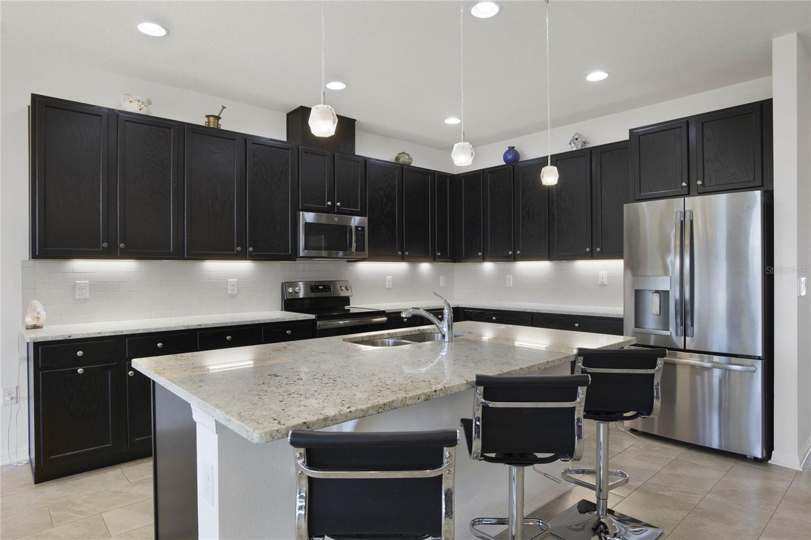 Welcome Home! As you make your way through the community you can't help but notice the serene features of Johns Lake. This stunning, well-maintained property features 4 bedrooms and 3 bathrooms with an inviting open floorplan. Tile flooring flows throughout, making maintenance a breeze. Perfect for guests or in-laws, the 4th bedroom comes with its own full bathroom for added privacy. The master suite features dual sinks, a huge walk-in closet, and a separate garden tub with double shower heads for a spa-like retreat. The kitchen showcases elegant granite countertops, endless cabinetry with under-cabinet lighting, and all appliances are included. Enjoy an abundance of natural light throughout this amazing property, creating a warm and welcoming atmosphere. Stay entertained with both a 45-inch and a 65-inch wall mounted TV's included, along with a Ring doorbell and additional security features for peace of mind. The home is equipped with an electrical air filter and ultraviolet carbon filter in the air handler for added protection, as well as an Ecobee thermostat for smart climate control. Conveniently located near great schools, major highways, shopping, dining, and the new Clermont Costco, this home is the perfect blend of comfort and accessibility. Don’t miss out on this incredible opportunity—schedule your showing today!