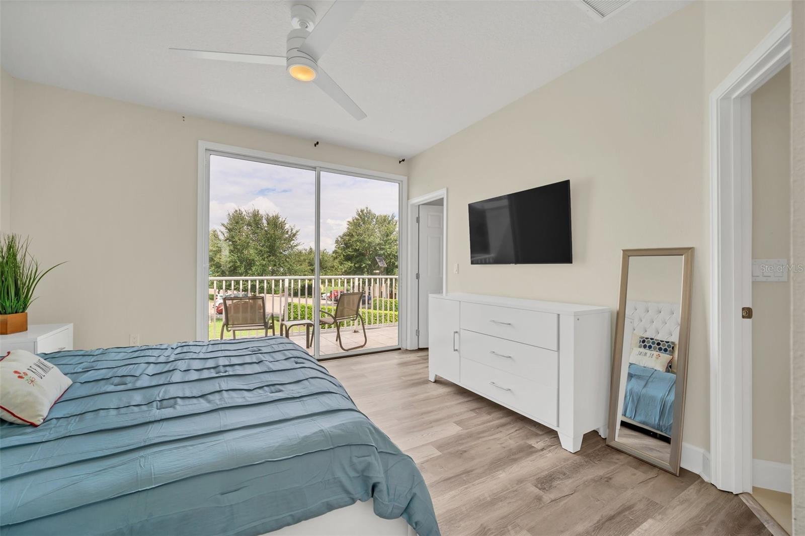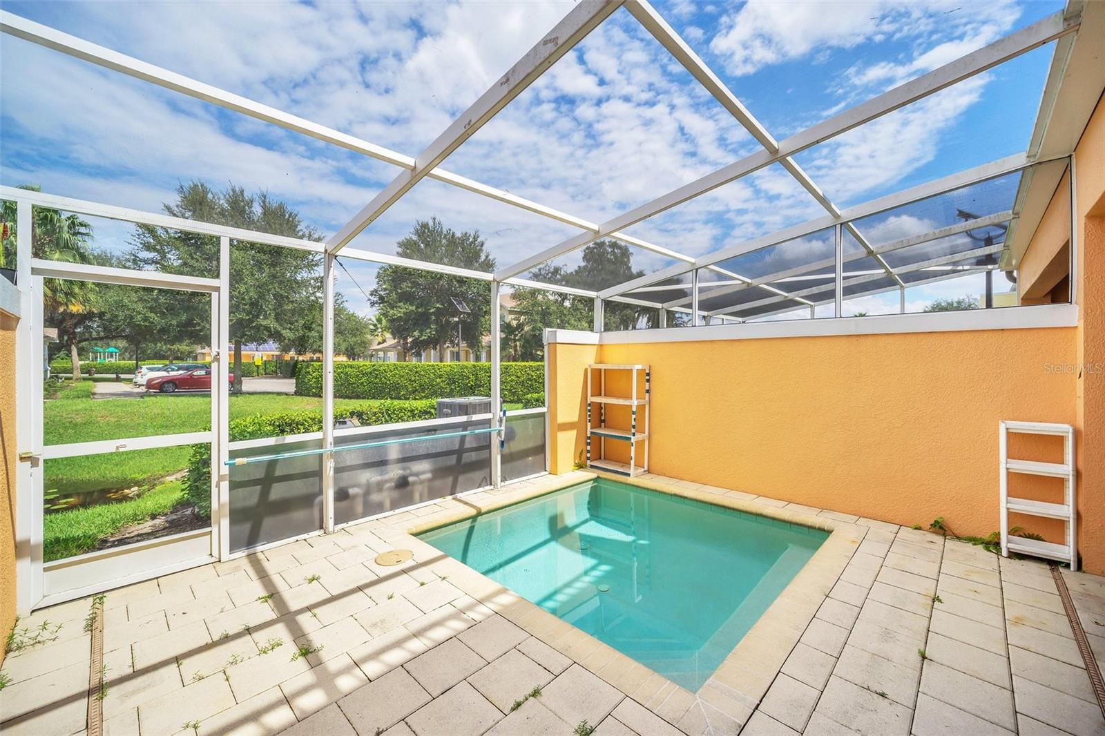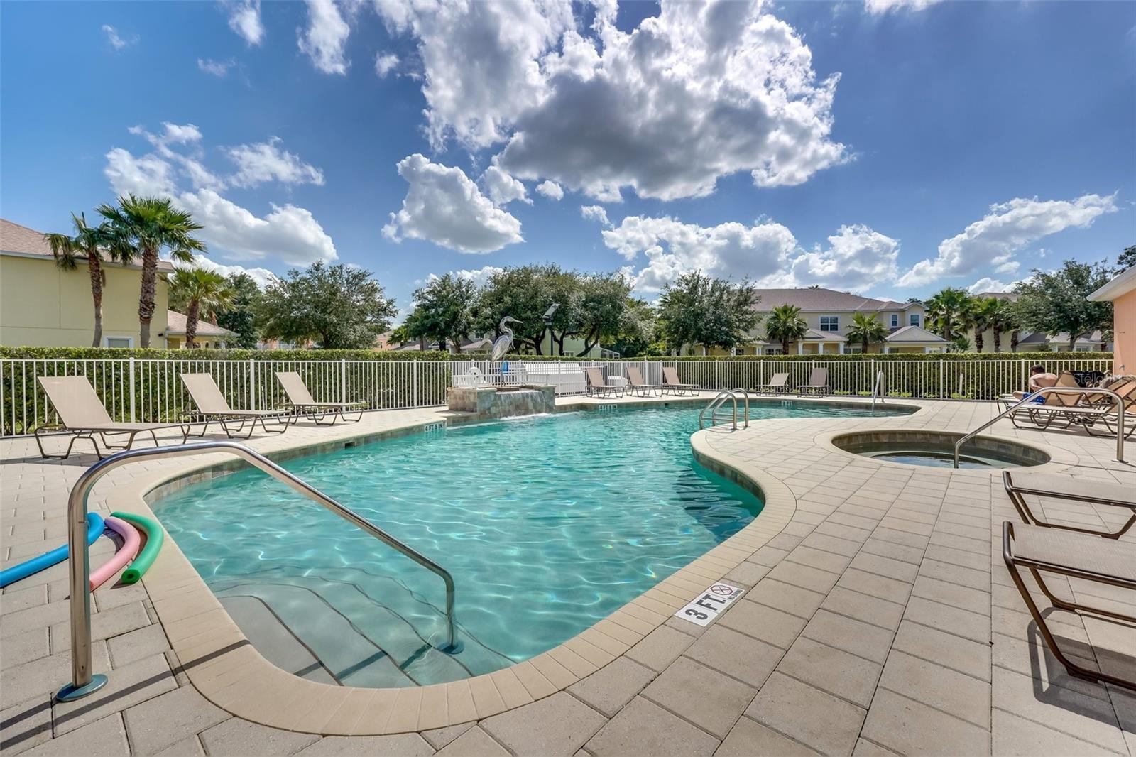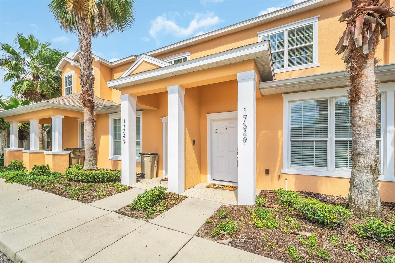 Discover this stunning 2-story townhome offering a perfect blend of comfort and convenience! With 3 spacious bedrooms, each featuring its own ensuite bathroom, this home provides privacy and luxury for all. The downstairs bedroom is perfect for guests or a private office space. Enjoy modern living with no carpeting, a screened splash pool, and a covered lanai for outdoor relaxation. The home will be sold fully furnished and equipped, with a serene pond view from the private balcony of the upstairs primary bedroom, complete with a walk-in closet, dual sinks, and ceiling fan. Additional furnishings and equipment have been ordered, awaiting delivery. Located near the community pool, playground, and fitness center, the home is part of an HOA that covers water/sewer, pool access, exterior painting, pressure washing, re-roofing, termite bond, pest control, valet trash, and clubhouse access. This is the perfect blend of convenience and luxury living!