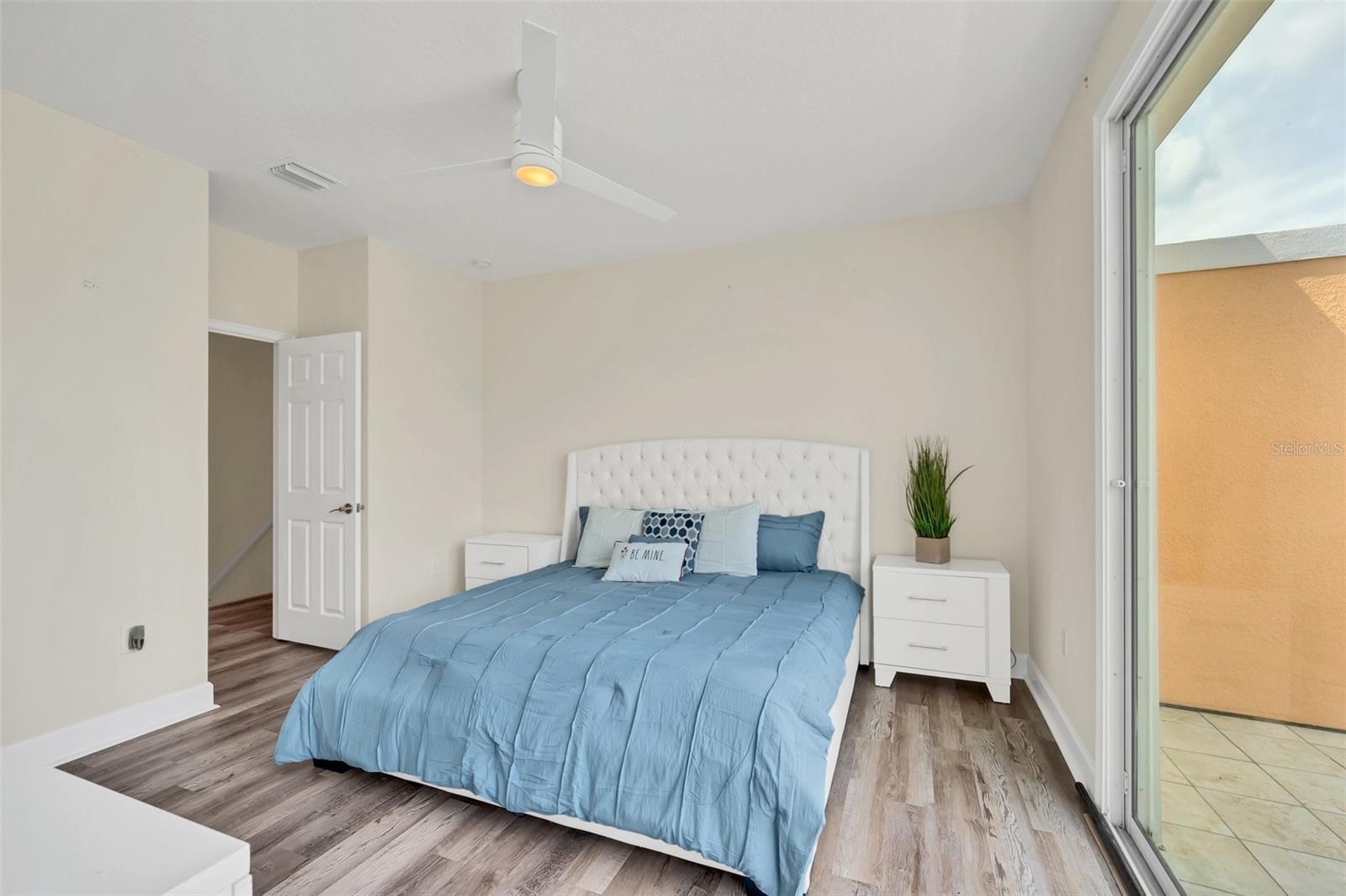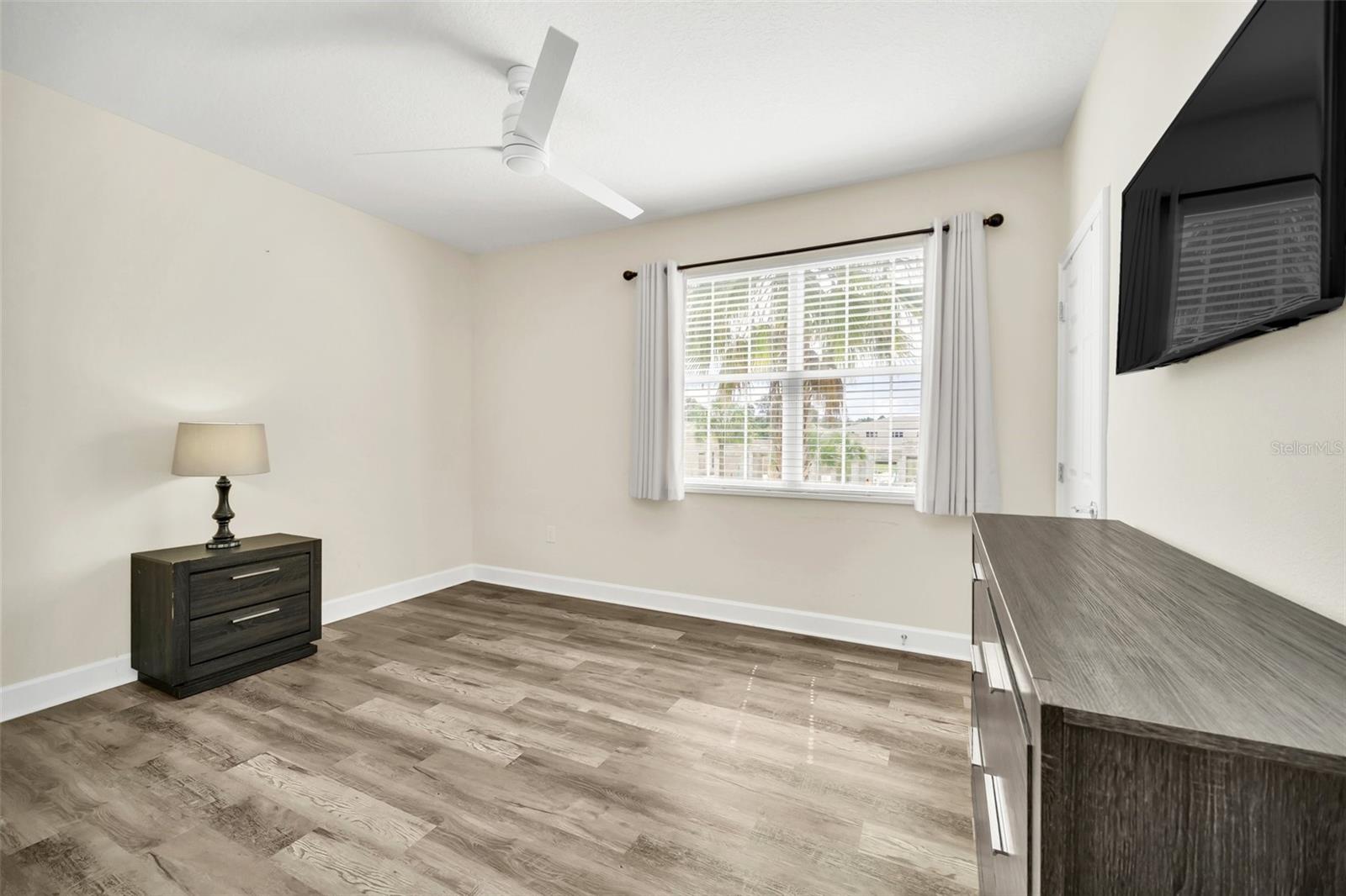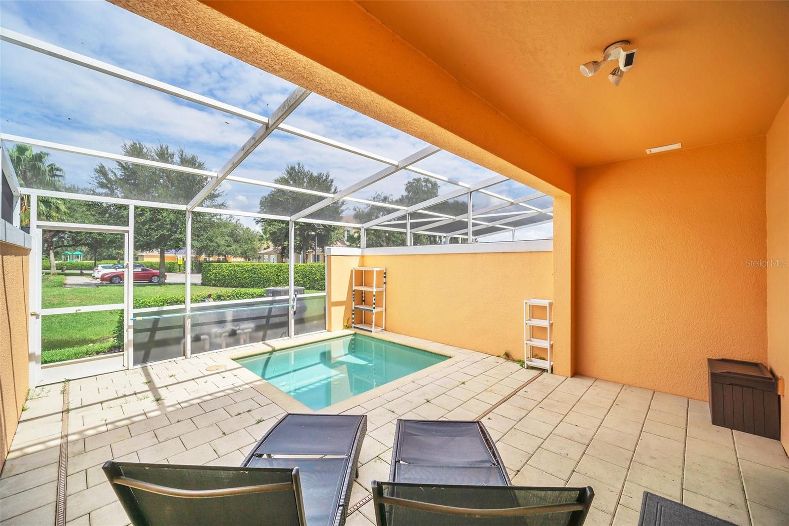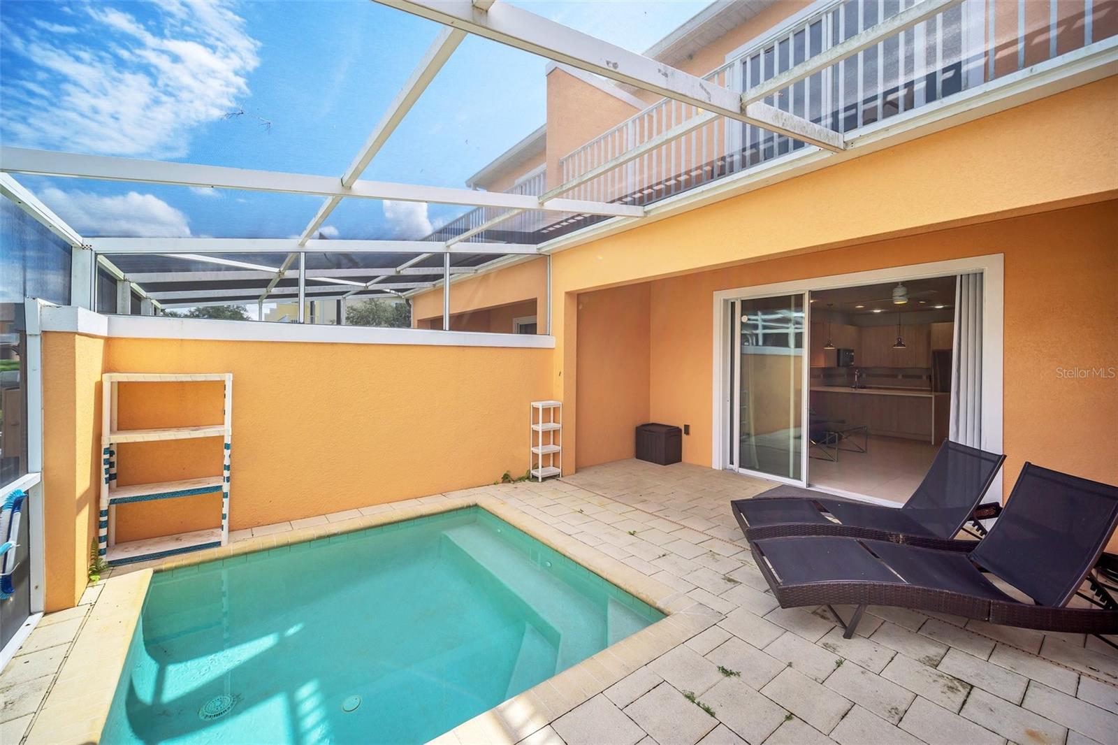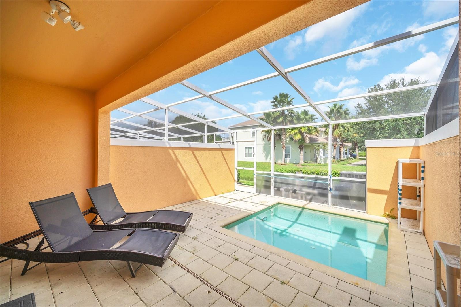 Discover this stunning 2-story townhome offering a perfect blend of comfort and convenience! With 3 spacious bedrooms, each featuring its own ensuite bathroom, this home provides privacy and luxury for all. The downstairs bedroom is perfect for guests or a private office space. Enjoy modern living with no carpeting, a screened splash pool, and a covered lanai for outdoor relaxation. The home will be sold fully furnished and equipped, with a serene pond view from the private balcony of the upstairs primary bedroom, complete with a walk-in closet, dual sinks, and ceiling fan. Additional furnishings and equipment have been ordered, awaiting delivery. Located near the community pool, playground, and fitness center, the home is part of an HOA that covers water/sewer, pool access, exterior painting, pressure washing, re-roofing, termite bond, pest control, valet trash, and clubhouse access. This is the perfect blend of convenience and luxury living!