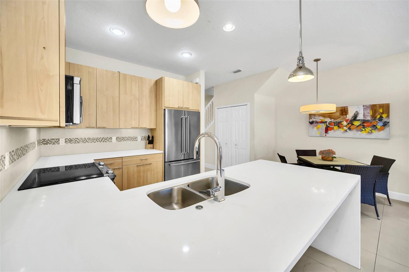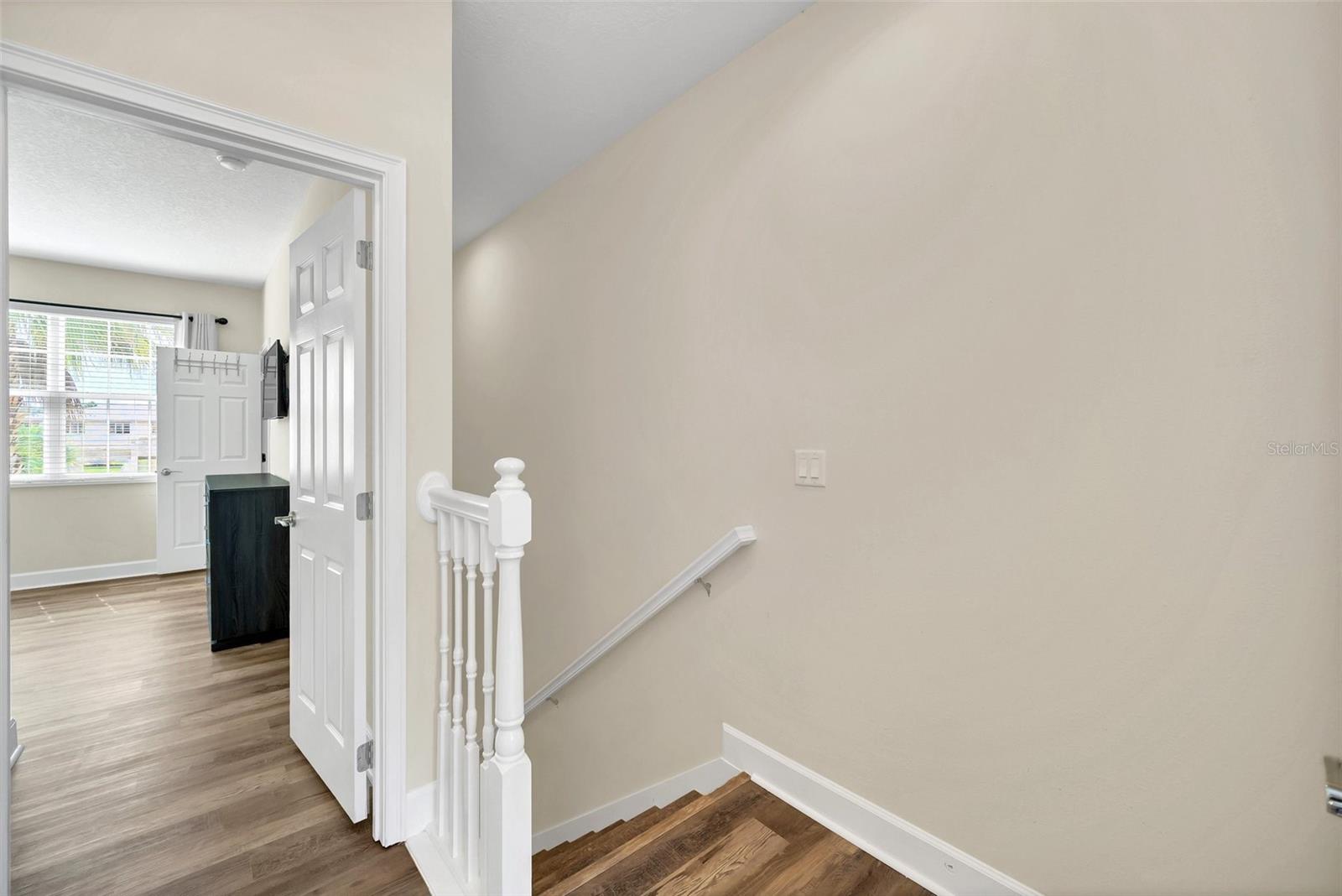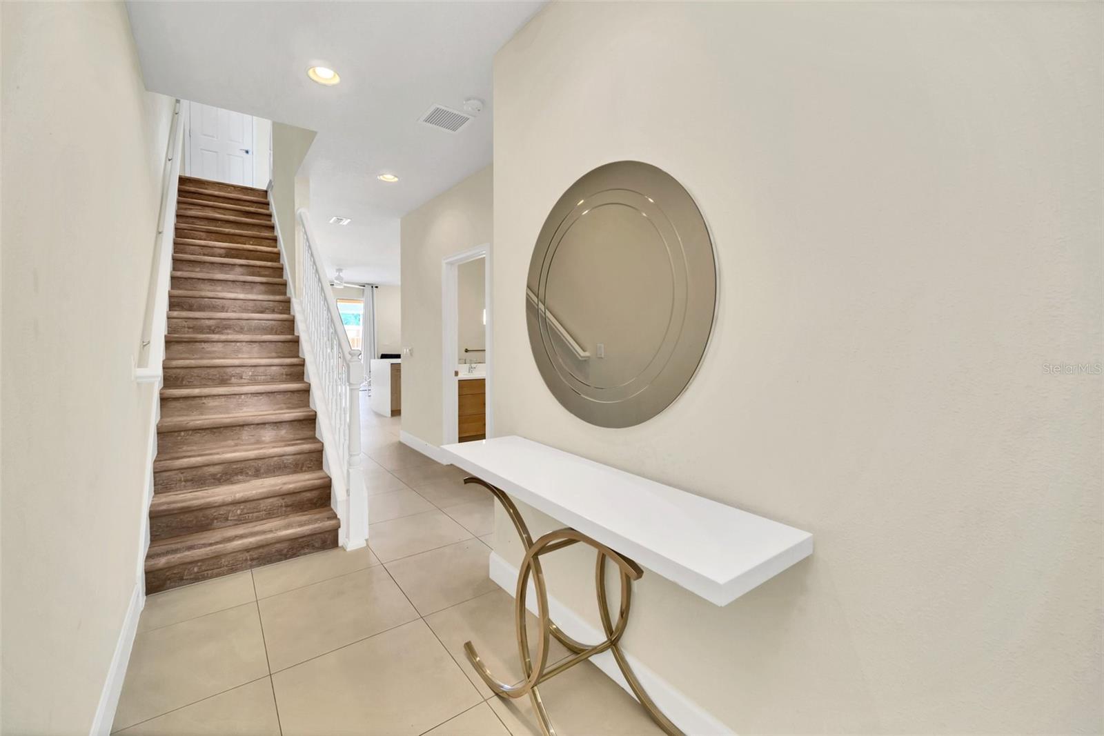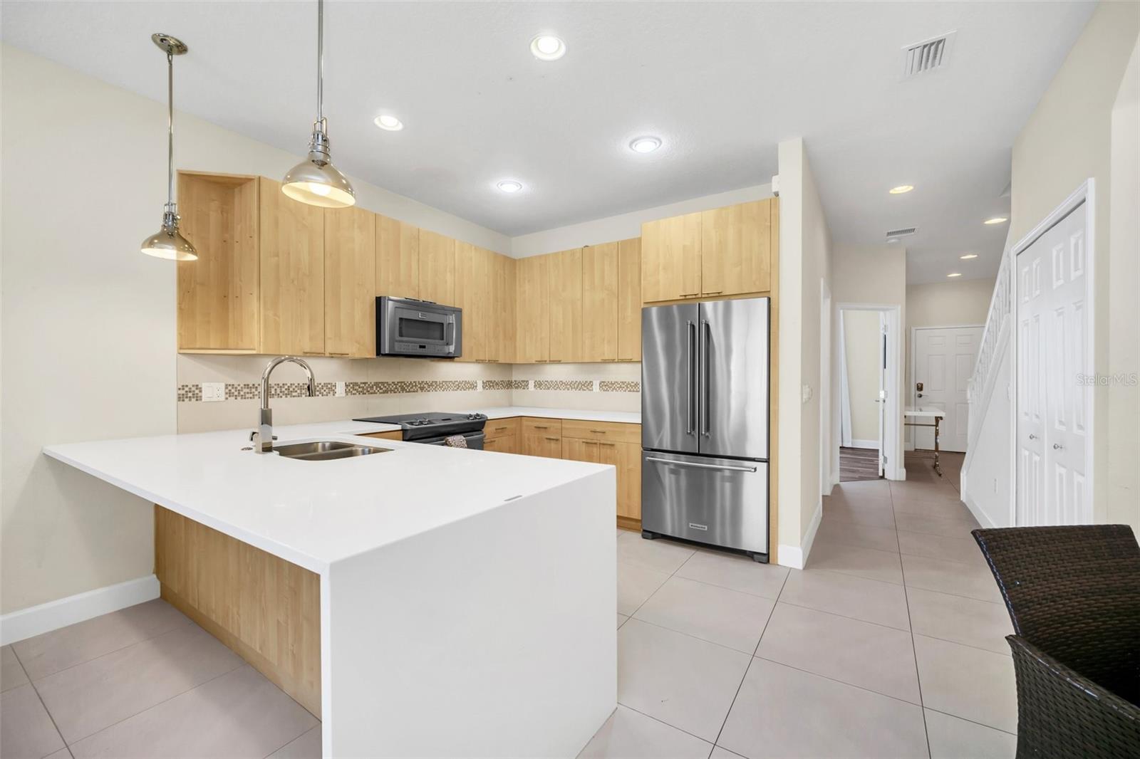 Discover this stunning 2-story townhome offering a perfect blend of comfort and convenience! With 3 spacious bedrooms, each featuring its own ensuite bathroom, this home provides privacy and luxury for all. The downstairs bedroom is perfect for guests or a private office space. Enjoy modern living with no carpeting, a screened splash pool, and a covered lanai for outdoor relaxation. The home will be sold fully furnished and equipped, with a serene pond view from the private balcony of the upstairs primary bedroom, complete with a walk-in closet, dual sinks, and ceiling fan. Additional furnishings and equipment have been ordered, awaiting delivery. Located near the community pool, playground, and fitness center, the home is part of an HOA that covers water/sewer, pool access, exterior painting, pressure washing, re-roofing, termite bond, pest control, valet trash, and clubhouse access. This is the perfect blend of convenience and luxury living!