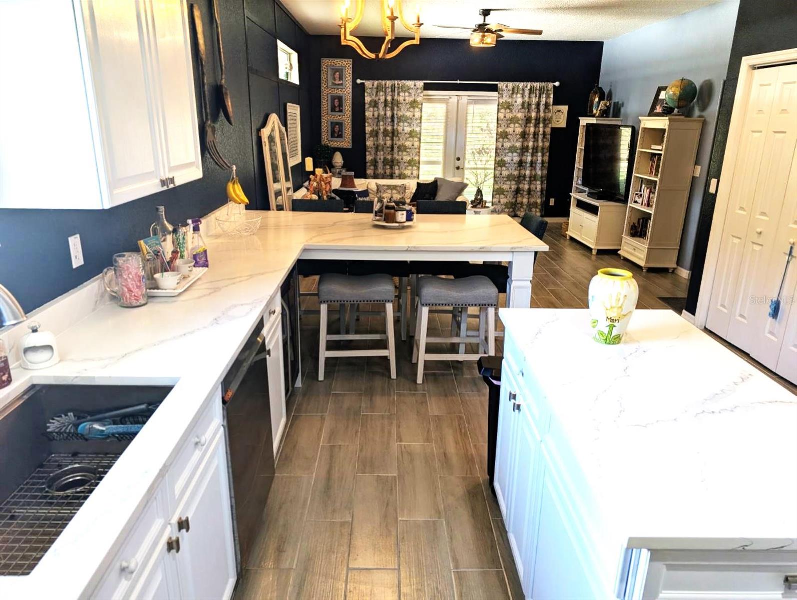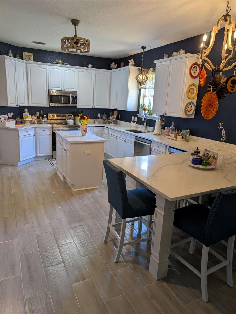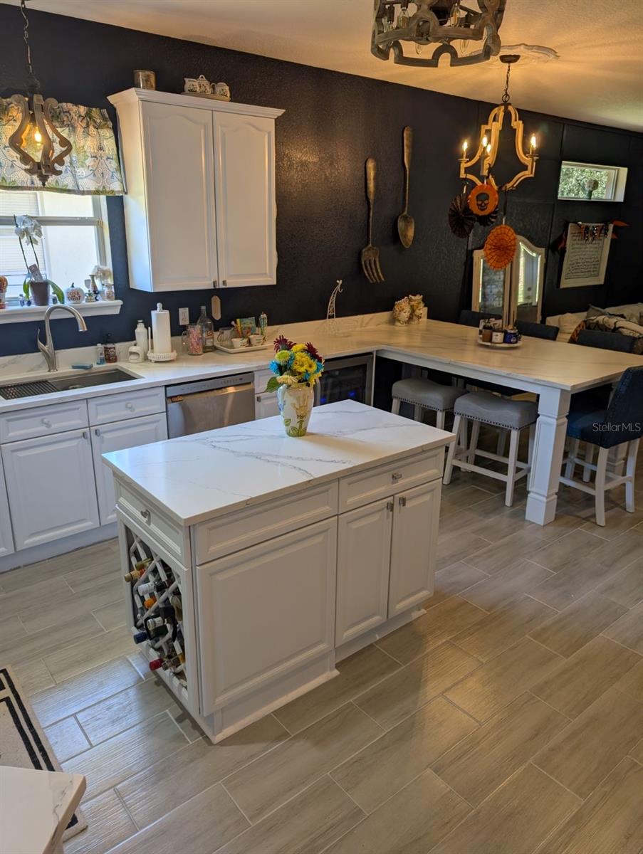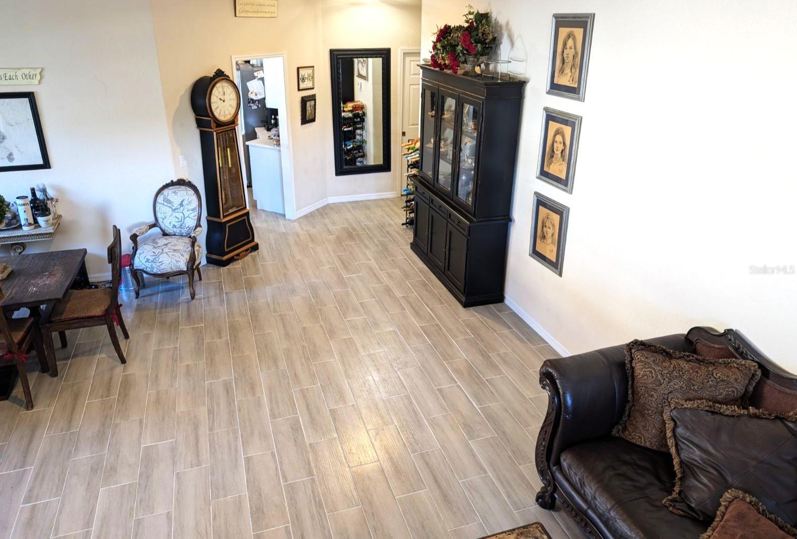 Come tour this well appointed single-story home, located on a canopy lined street in the picturesque community of Palisades. This home offers open living areas for easy entertaining. Upon entering the home, you will find new gray wood-look ceramic tile that flows throughout the main living areas. An open Dining Room/Living Room combination offers ample space to host family gatherings or parties with friends. Directly behind the formal living area is the recently updated Kitchen. This room features a completely new stainless steel appliance package, refaced wood cabinets, new Kraus sink and trash compactor as well as a custom designed quartz countertop featuring a large peninsula to enjoy meals. Any chef would be pleased with the double door pantry, and plenty of counterspace for meal prep. Partake in an evening libation to relax? This Kitchen has two storage options for your wine collection. The island features a wine rack and directly behind it, you will find a wine refrigerator. The main refrigerator features a craft ice maker for your high-ball drinks.The Great Room flows directly onto a screened lanai where you can enjoy the beautiful Florida weather. Dine”al fresco” in the comfort of this space or curl up with a book. The Owner’s Retreat sits off the back of the house as well, and has its own private door to access the screened lanai. This Primary Bath offers a spa like bathroom with a walk-in shower and garden tub. Are you a shopper? No need to worry about your shoe collection, the Owner’s Retreat also features and oversized walk-in closet! Most light fixtures throughout the home have been updated. The Guest Bath has new wallpaper and fixtures that have been added to give it a custom look. AC unit is 3 years old. This home is conveniently located close to Florida theme parks, golf courses, shopping, and restaurants. Schedule your appointment today to see this charming home.