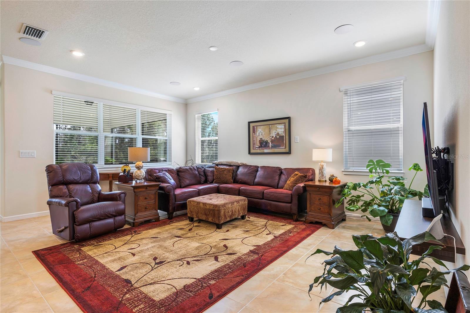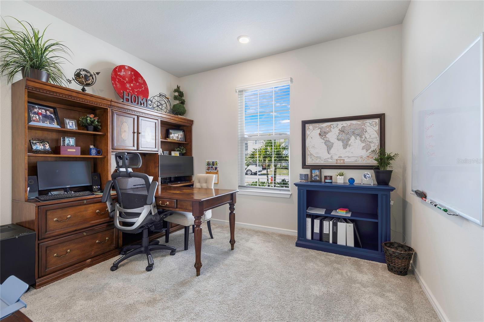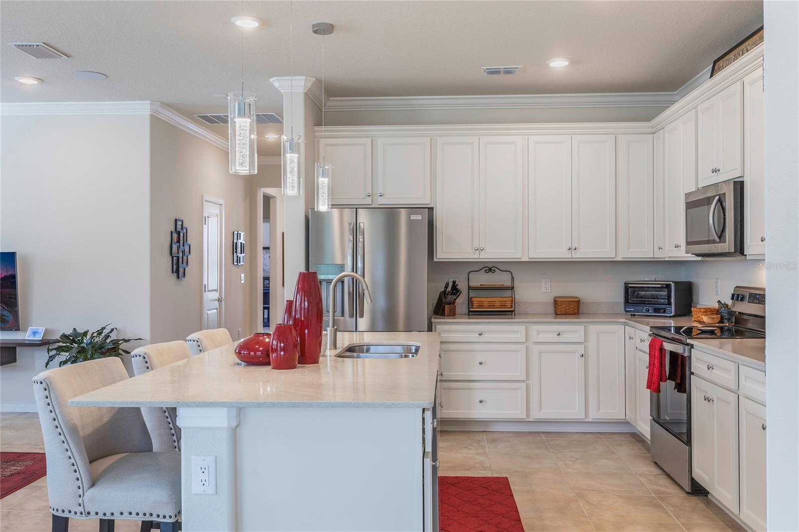 This nearly new beautiful four-bedroom, three-bathroom home sits on a spacious oversized conservation lot, offering privacy and a serene natural setting. The extended screened-in lanai is perfect for enjoying Florida's outdoor lifestyle year-round and for gazing at the nightly Disney Fireworks...yes, your own private view! Inside, each bedroom is generously sized, providing ample space and comfort for family or guests. The heart of the home is the upgraded kitchen, featuring elegant white cabinets, sleek quartz countertops, and a large island adorned with three modern pendant lights—ideal for entertaining or casual dining. The laundry room boasts built-in cabinets to keep everything organized. Beyond the home itself, the community offers a range of top-tier amenities, including a resort-style pool, clubhouse, fitness center, and playground. Conveniently located in Clermont, the future connector road will provide quick access to Disney and other nearby attractions, making this home not only a sanctuary but also a central hub for everything the area has to offer. WELCOME HOME!