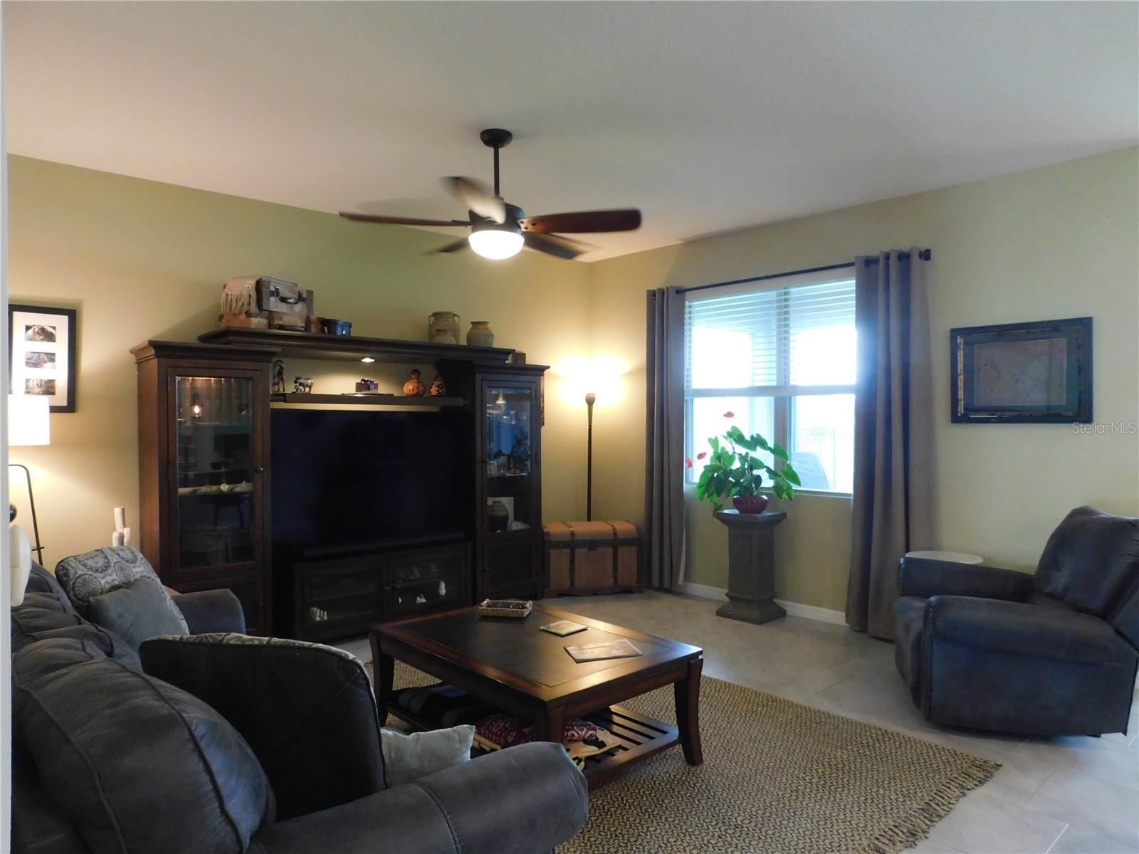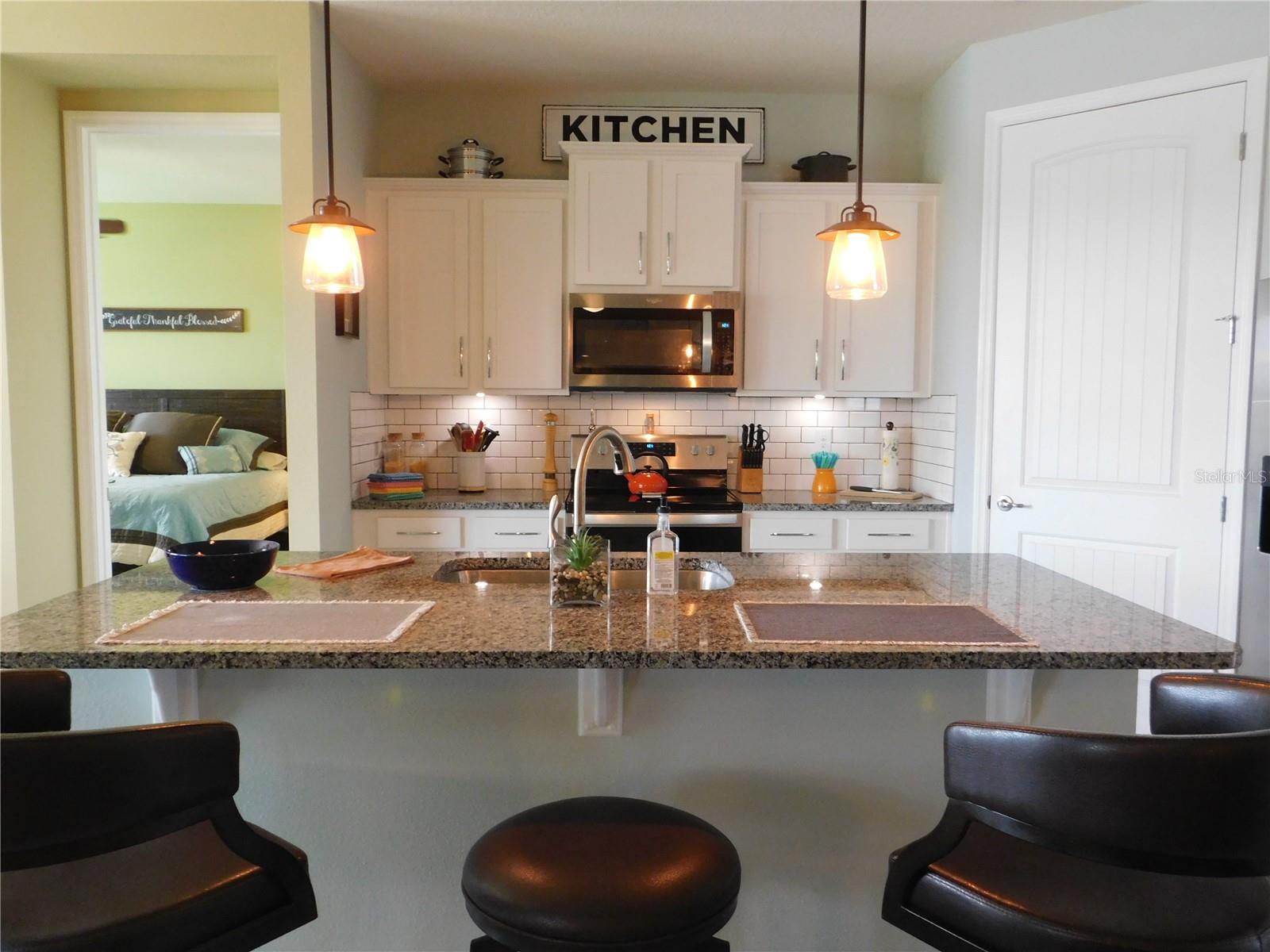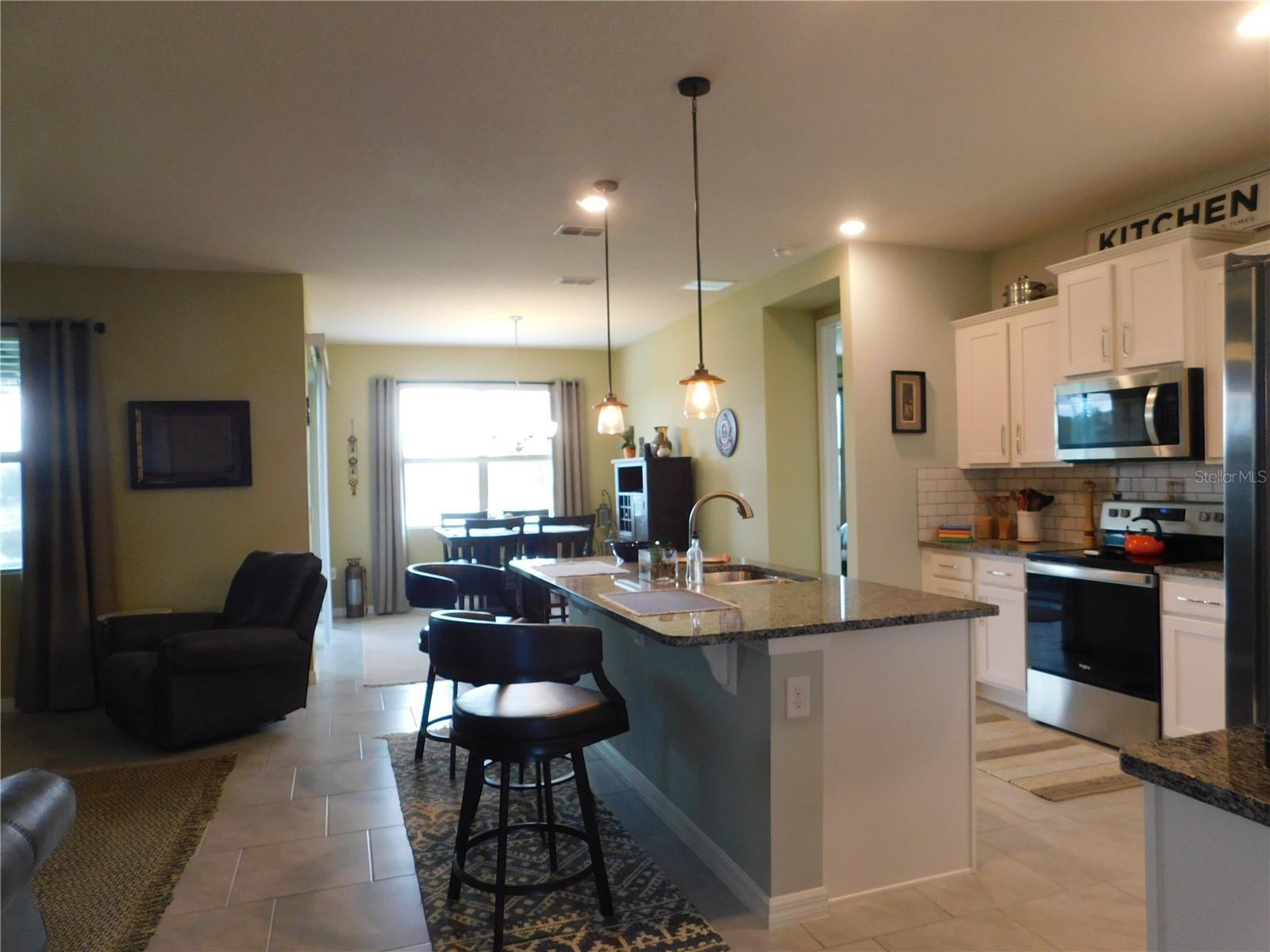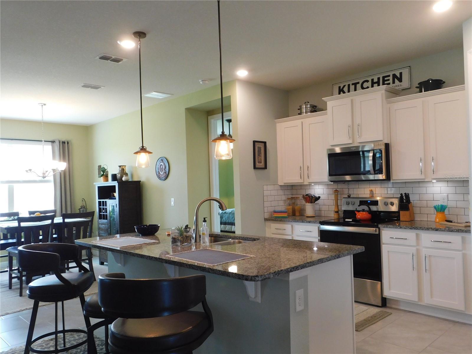 Welcome Home to the Palms at Serenoa an exclusive 55+ active lifestyle community soon to be just minutes to Lake Luisa State Park or to Disney World with a new direct roadway opening in 2026. This 3 bed, 2 bath BRISTOL model by DR Horton offers the perfect combination of OPEN CONCEPT along with PRIVATE SPACE. The layout is split bedroom with spectacular open concept kitchen, living room and dining nook plus FLEX space with closet that can be used as a 3rd bedroom or office/bonus room, laundry room, private covered/screened lanai plus 2 car garage with powered sun screen. This home boasts many upgrades: granite countertops, upgraded cabinets ,energy efficient construction, stainless steel appliance package, upgraded washer and dryer, tile throughout the common areas. OWNER ADDED additional upgrades: - Exterior light at front door - "Ring" doorbell - Custom glass insert at front door - Pendant lights in kitchen - Five ceiling fans - Electric roll down garage screen - Screen room, 220 electric service installed for a hot tub. Allows for a hot tub to be installed - Generator hook up installed in garage - Tile back splash in kitchen and entry area from garage – PLUS NEW roof, garage door and gutters 2023. This LUXURY COMMUNITY is located in picturesque Lake County just minutes to shopping and restaurants and offers: a gated entrance, private roads, sprawling clubhouse complete with zero-entry heated pool, yoga room, fitness center, poker/game room, spectacular walking paths, pickle ball and bocce ball courts, fire pit plus a calendar of daily events and activities. You might also like to head over to popular Lake Luisa State Park where you can hike, cycle, camp or rent cabins! Best of all this is a maintenance free lifestyle where each home receives full landscaping services! Spectrum internet/phone/cable tv package is included in your HOA fees beginning 3/1/25. This home is available furnished or partially furnished at additional cost.