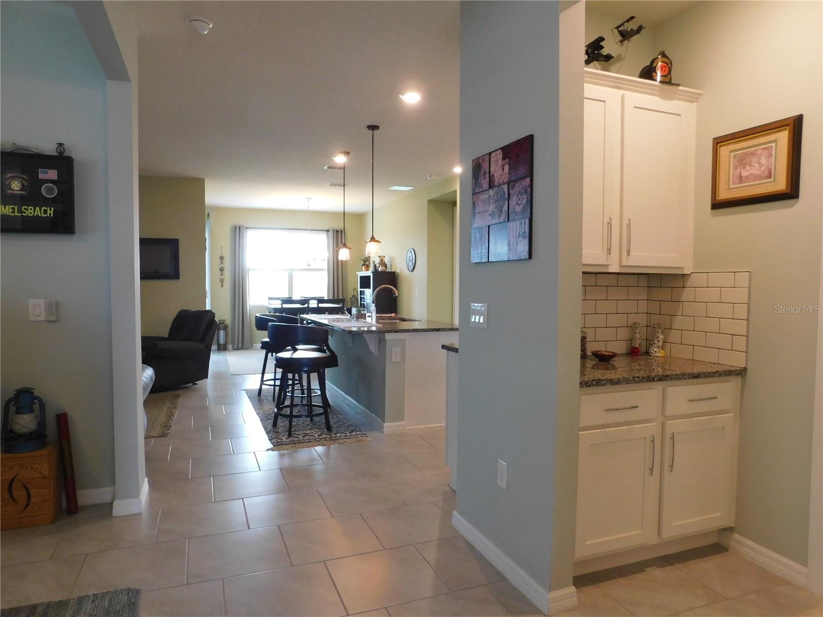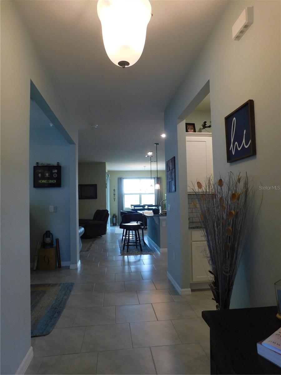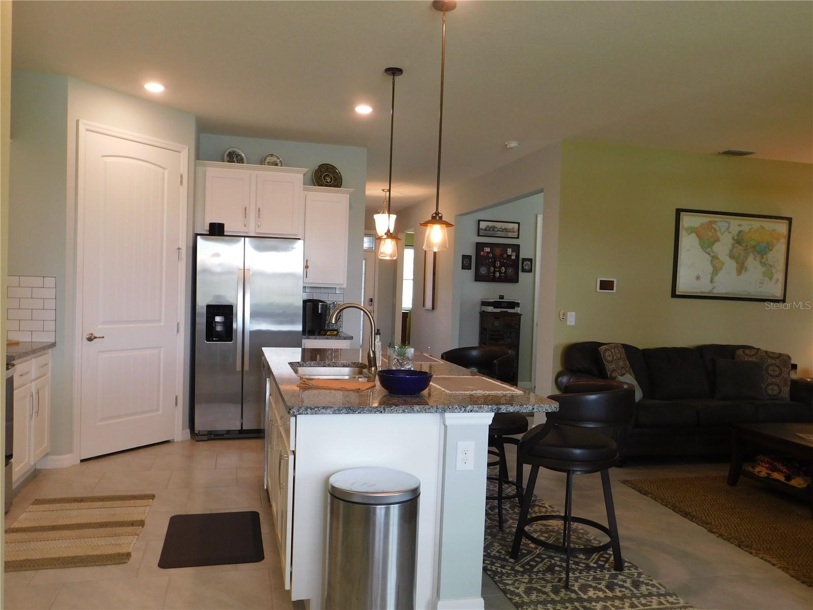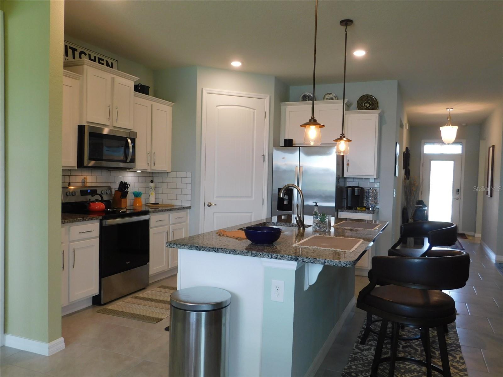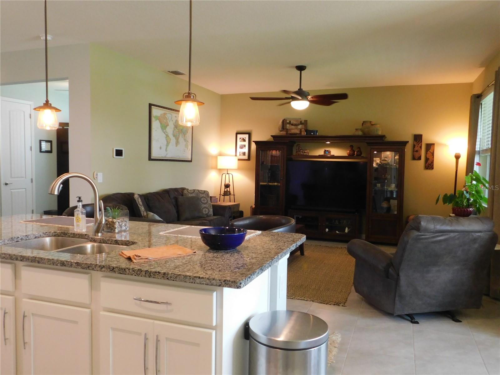 Welcome Home to the Palms at Serenoa an exclusive 55+ active lifestyle community soon to be just minutes to Lake Luisa State Park or to Disney World with a new direct roadway opening in 2026. This 3 bed, 2 bath BRISTOL model by DR Horton offers the perfect combination of OPEN CONCEPT along with PRIVATE SPACE. The layout is split bedroom with spectacular open concept kitchen, living room and dining nook plus FLEX space with closet that can be used as a 3rd bedroom or office/bonus room, laundry room, private covered/screened lanai plus 2 car garage with powered sun screen. This home boasts many upgrades: granite countertops, upgraded cabinets ,energy efficient construction, stainless steel appliance package, upgraded washer and dryer, tile throughout the common areas. OWNER ADDED additional upgrades: - Exterior light at front door - "Ring" doorbell - Custom glass insert at front door - Pendant lights in kitchen - Five ceiling fans - Electric roll down garage screen - Screen room, 220 electric service installed for a hot tub. Allows for a hot tub to be installed - Generator hook up installed in garage - Tile back splash in kitchen and entry area from garage – PLUS NEW roof, garage door and gutters 2023. This LUXURY COMMUNITY is located in picturesque Lake County just minutes to shopping and restaurants and offers: a gated entrance, private roads, sprawling clubhouse complete with zero-entry heated pool, yoga room, fitness center, poker/game room, spectacular walking paths, pickle ball and bocce ball courts, fire pit plus a calendar of daily events and activities. You might also like to head over to popular Lake Luisa State Park where you can hike, cycle, camp or rent cabins! Best of all this is a maintenance free lifestyle where each home receives full landscaping services! Spectrum internet/phone/cable tv package is included in your HOA fees beginning 3/1/25. This home is available furnished or partially furnished at additional cost.