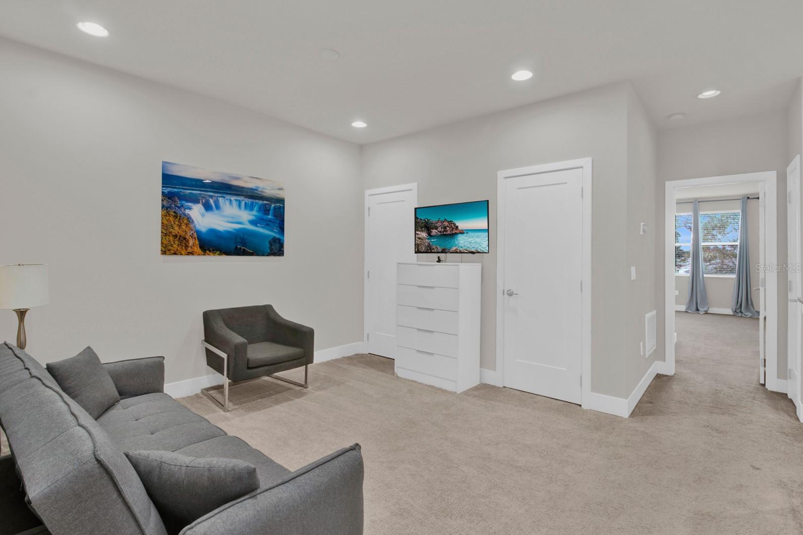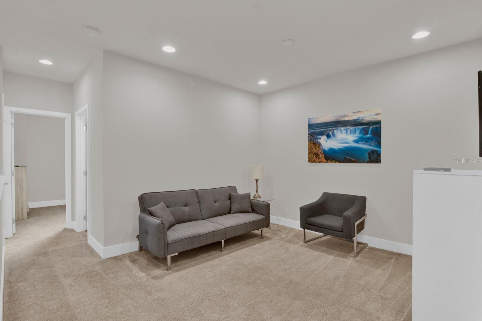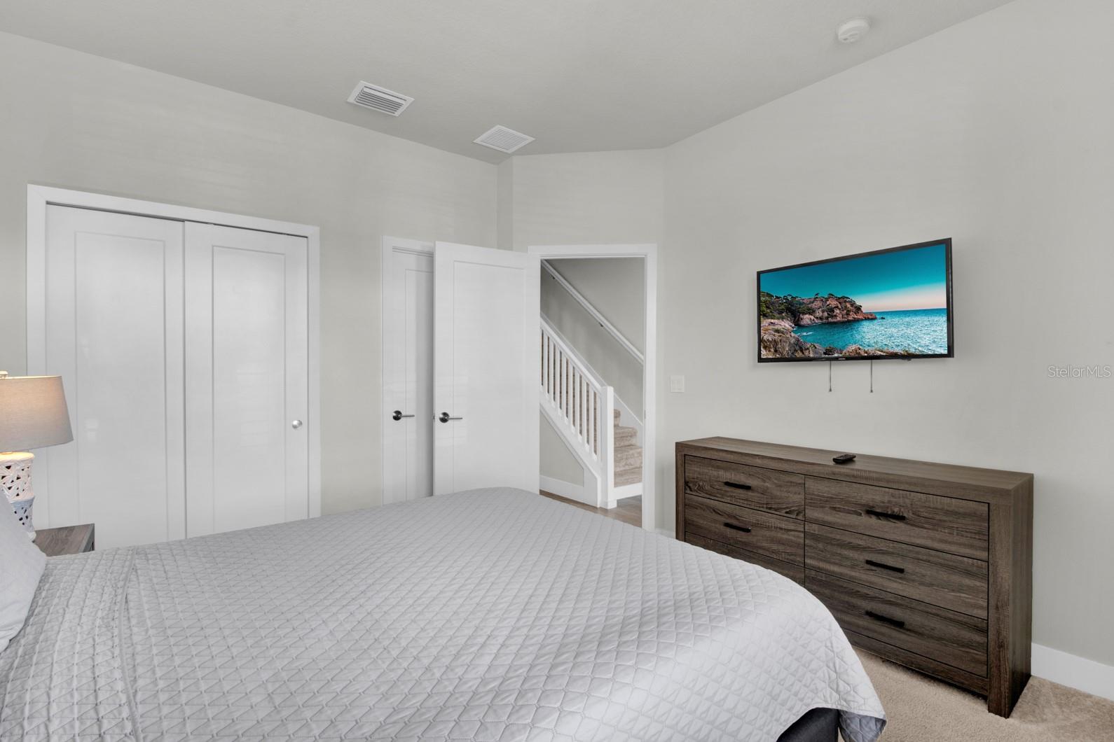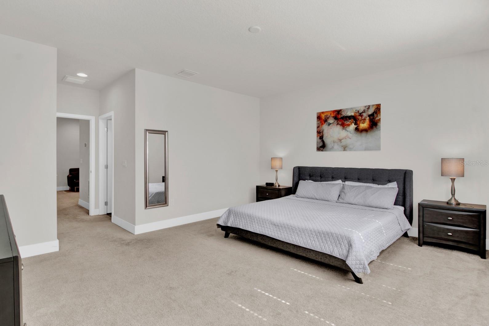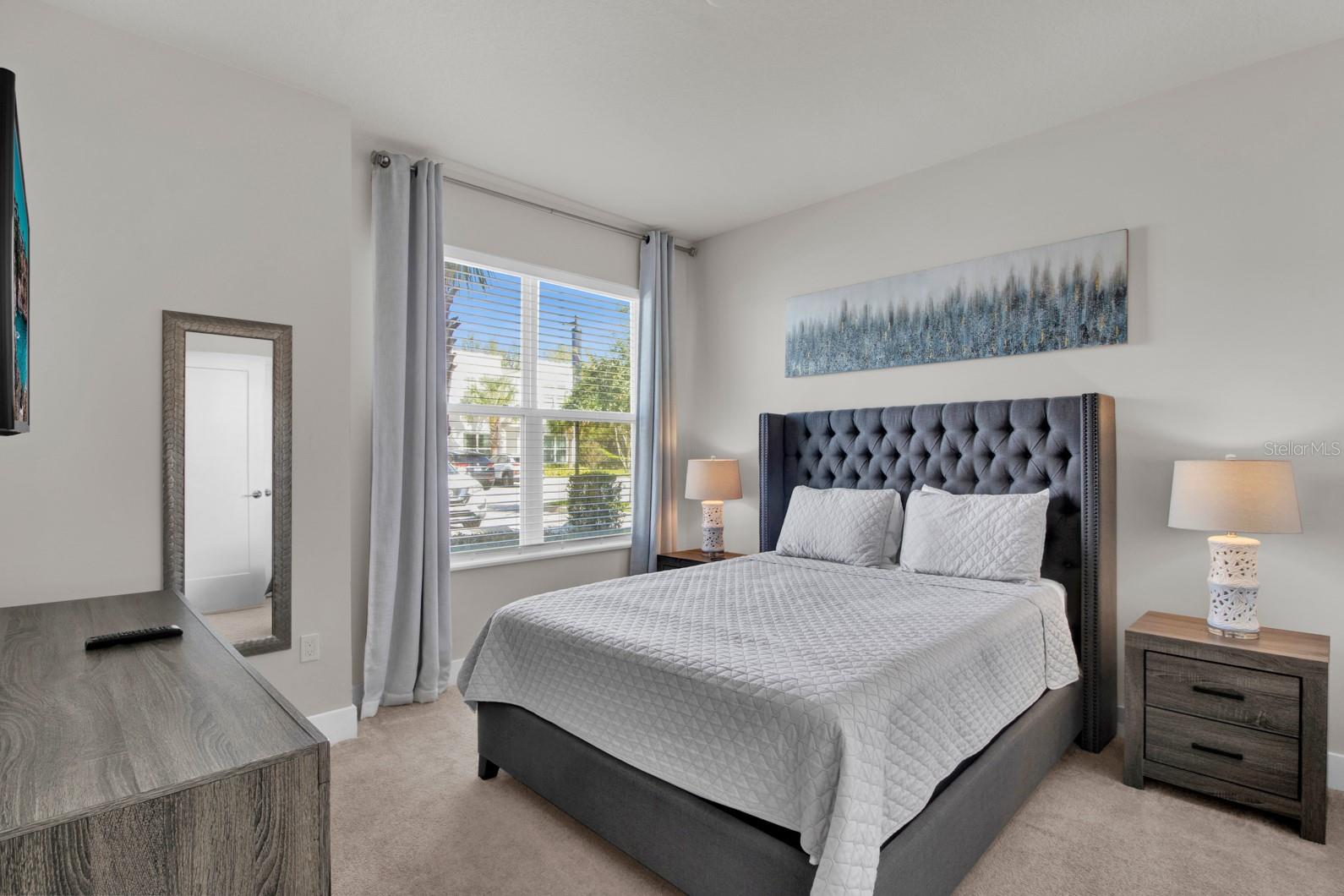 Check out this small community of luxury townhomes just 8 miles from Disney parks where you can live full-time or lease as a short-term investment. Every corner of this home exudes modern sophistication, from the open-concept living spaces to the designer finishes and tasteful decor. FULLY FURNISHED this turn-key home features 3-bedrooms and 3-full bathrooms, a private swim spa and tons of upgrades! The light and bright open floor plan on the main floor has faux wood tile, making maintenance breeze, a wall of sliding glass doors for natural light and a chef’s dream kitchen! The contemporary kitchen features a waterfall quartz countertop, matching backsplash, sleek cabinetry with under cabinet lighting and stainless appliances. One bedroom/bathroom is located on the ground floor for those that have trouble with stairs or to use as an office. Upstairs you will find a versatile loft, second bedroom and the huge primary suite. Relax and unwind at the end of a long day in your tranquil retreat space that has a walk-in closet and must see en-suite bath with a floating vanity, lighted mirrors and large walk-in shower. The back screened-in lanai features a private and heated swim-spa, take a dip before heading out to spend a day at the theme parks or cookout poolside and enjoy a day at home. This community is surrounded by nature, has an affordable HOA and is within close proximity to world-class theme parks, attractions, golf courses, shopping, and restaurants!