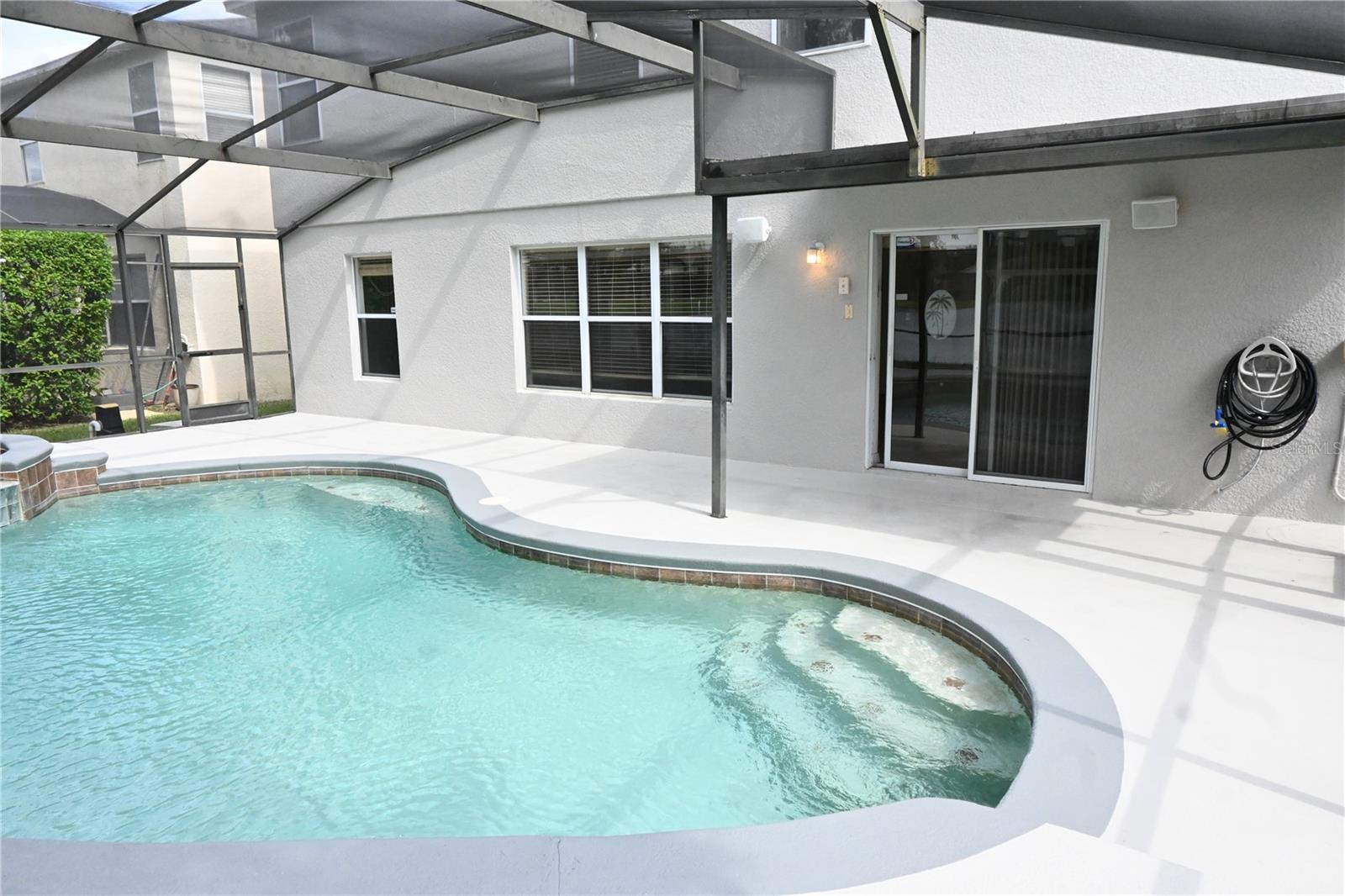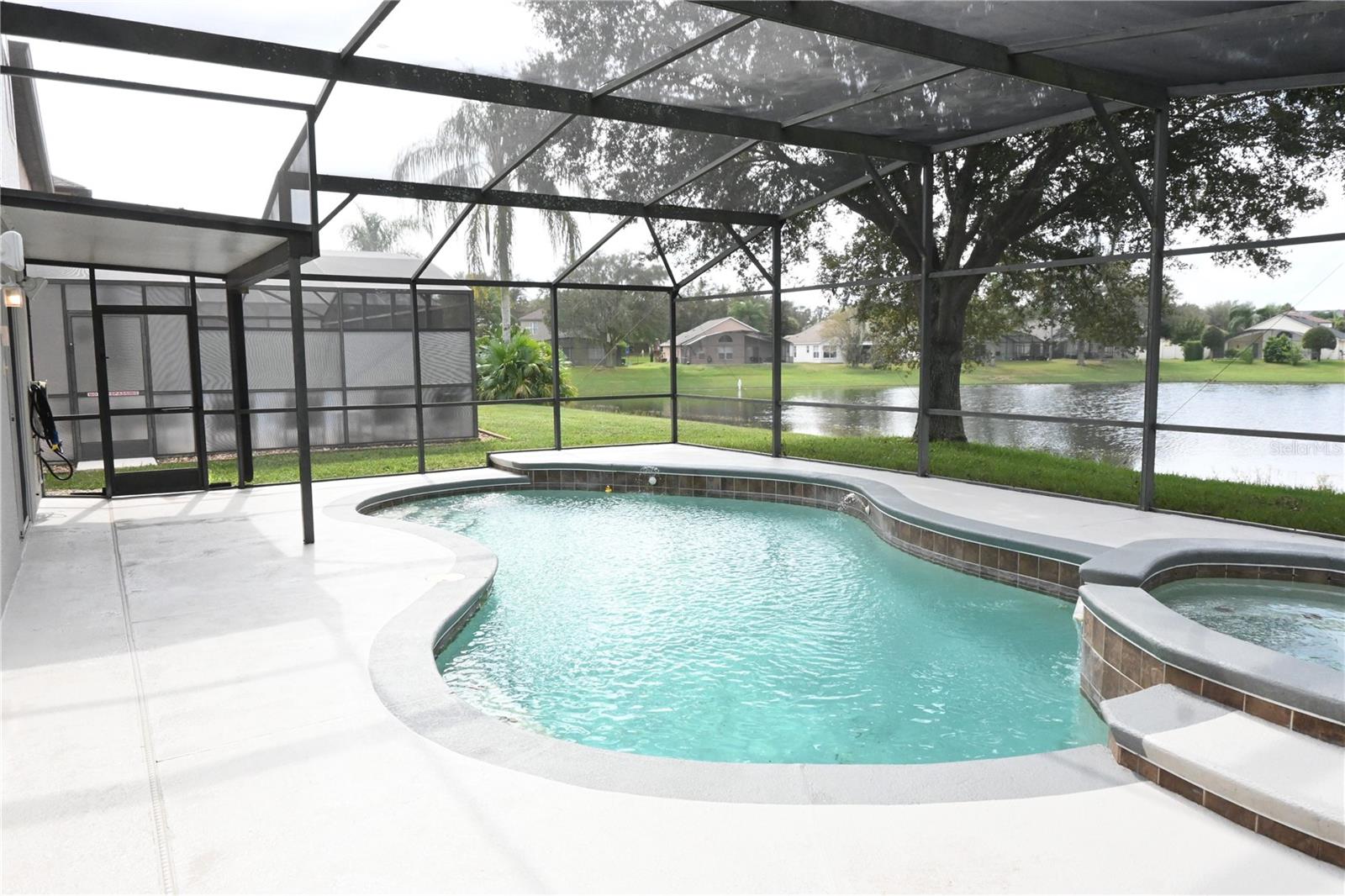 Waterfront property! For sale is this fabulous 5 bed 3 bath home in Sunrise Lakes. This home has it all: pond view, heated pool &spa, and a west facing pool . The roof was replaced in June 2024. 4 bedrooms on the second floor including the primary bedroom and 1 bedroom on the first floor. The home is only 8 miles from Disney.