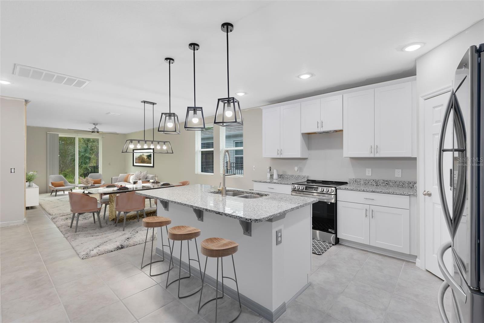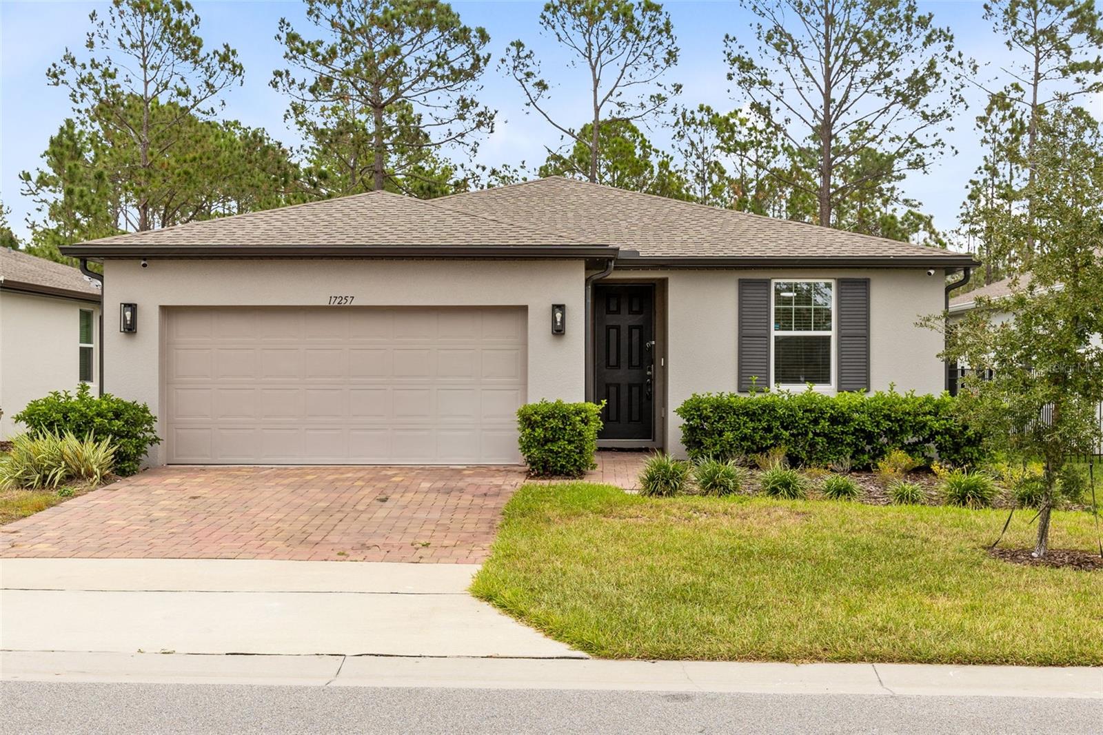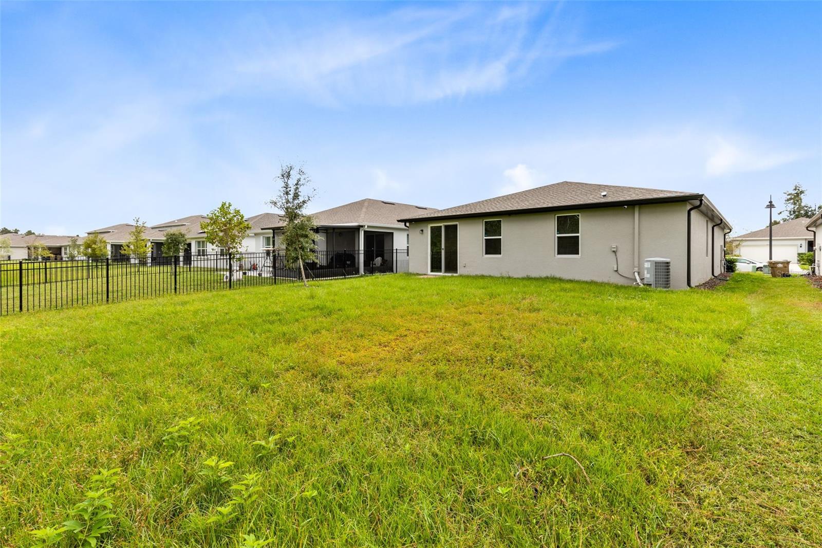 This beautiful 2022-built home is perfectly situated in a serene setting, backing up to conservation land with no rear neighbors, ensuring unmatched quietness and privacy. Enjoy serene, quiet living with the beauty of nature right at your doorstep. Meticulously designed, this property offers a seamless blend of modern style and comfort, situated in a peaceful setting that backs up to conservation land—no rear neighbors! Step inside to discover a spacious, open-concept floor plan that effortlessly connects the living, dining, and kitchen areas—ideal for both everyday living and entertaining. The stylish living room is enhanced with a contemporary accent wall, while the dining room and kitchen showcase elegant, modern light fixtures that elevate the space. The chef’s kitchen features sleek solid surface countertops, stainless steel appliances, and a convenient pantry for all your storage needs. Sliding glass doors open from the living room to a tranquil backyard with stunning conservation views, perfect for unwinding or hosting gatherings. A dedicated office space, complete with custom built-in bookcases and cabinets, provides the ideal work-from-home setup or a peaceful retreat for reading and study. The laundry room, thoughtfully located just across from the kitchen, adds to the home's functional design. The spacious primary suite boasts a large walk-in closet and a luxurious en suite bath with dual vanities and an oversized shower, offering a perfect place to relax and rejuvenate. Two additional bedrooms share a beautifully appointed hall bath with a tub/shower combo. This home is located within a gated community that offers an array of fantastic amenities including a sparkling community pool, clubhouse, and playground, making it perfect for families and individuals alike. The location couldn’t be more convenient—within close proximity to shopping, dining, and entertainment options. Plus, with a quick 30-minute drive to Walt Disney World Resort, you're never far from the magic! Don’t miss the opportunity to make this beautiful home yours. <iframe width='853' height='480' src='https://my.matterport.com/show/?m=uPC1Z8wv2dF' frameborder='0' allowfullscreen allow='xr-spatial-tracking'></iframe>