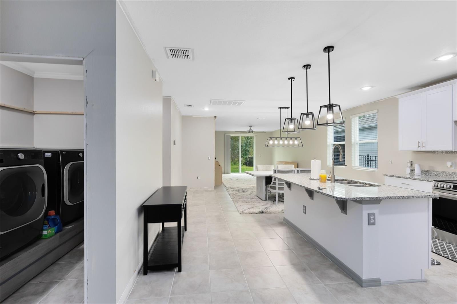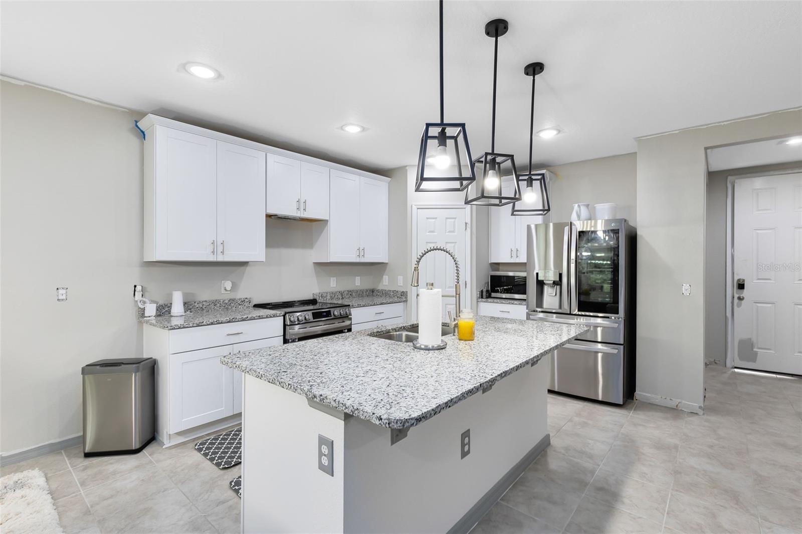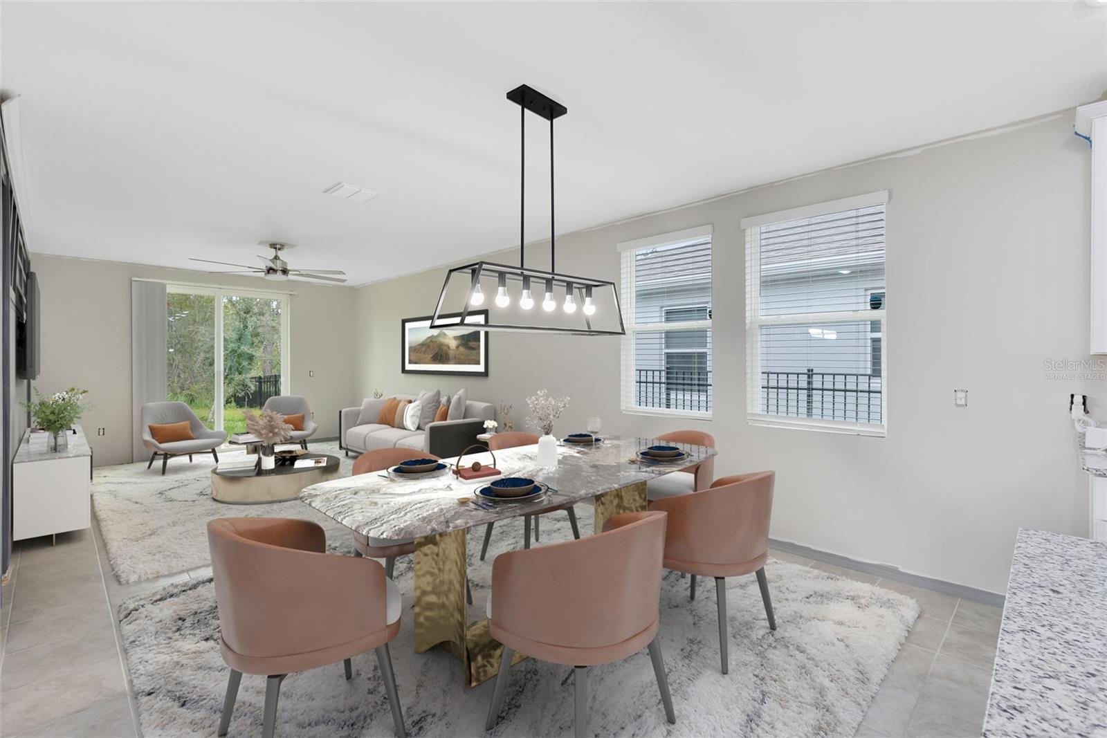 This beautiful 2022-built home is perfectly situated in a serene setting, backing up to conservation land with no rear neighbors, ensuring unmatched quietness and privacy. Enjoy serene, quiet living with the beauty of nature right at your doorstep. Meticulously designed, this property offers a seamless blend of modern style and comfort, situated in a peaceful setting that backs up to conservation land—no rear neighbors! Step inside to discover a spacious, open-concept floor plan that effortlessly connects the living, dining, and kitchen areas—ideal for both everyday living and entertaining. The stylish living room is enhanced with a contemporary accent wall, while the dining room and kitchen showcase elegant, modern light fixtures that elevate the space. The chef’s kitchen features sleek solid surface countertops, stainless steel appliances, and a convenient pantry for all your storage needs. Sliding glass doors open from the living room to a tranquil backyard with stunning conservation views, perfect for unwinding or hosting gatherings. A dedicated office space, complete with custom built-in bookcases and cabinets, provides the ideal work-from-home setup or a peaceful retreat for reading and study. The laundry room, thoughtfully located just across from the kitchen, adds to the home's functional design. The spacious primary suite boasts a large walk-in closet and a luxurious en suite bath with dual vanities and an oversized shower, offering a perfect place to relax and rejuvenate. Two additional bedrooms share a beautifully appointed hall bath with a tub/shower combo. This home is located within a gated community that offers an array of fantastic amenities including a sparkling community pool, clubhouse, and playground, making it perfect for families and individuals alike. The location couldn’t be more convenient—within close proximity to shopping, dining, and entertainment options. Plus, with a quick 30-minute drive to Walt Disney World Resort, you're never far from the magic! Don’t miss the opportunity to make this beautiful home yours. <iframe width='853' height='480' src='https://my.matterport.com/show/?m=uPC1Z8wv2dF' frameborder='0' allowfullscreen allow='xr-spatial-tracking'></iframe>