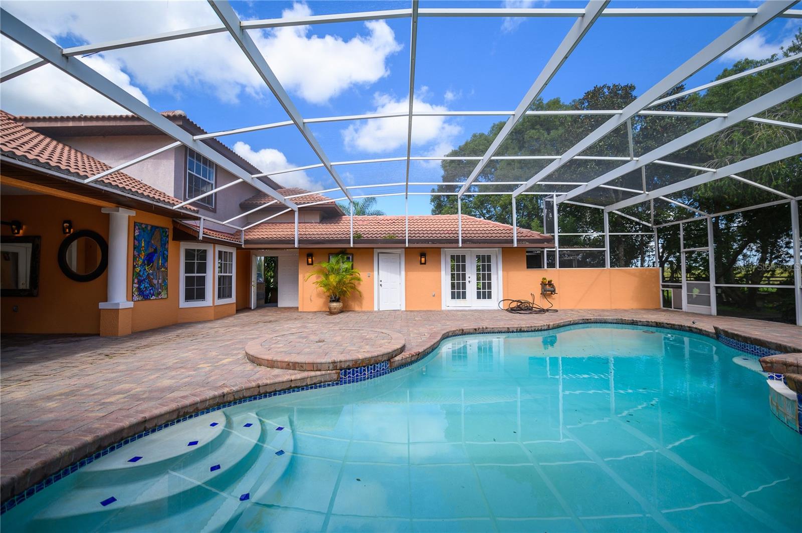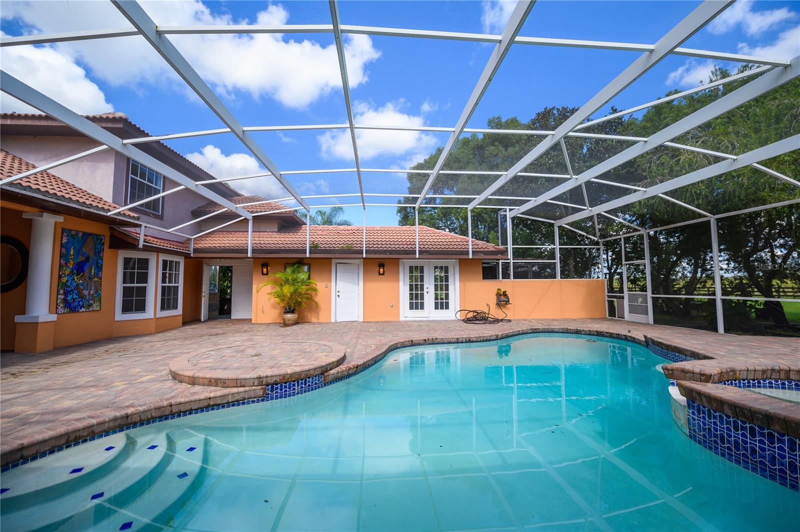 Experience luxury, privacy, and sophistication at this exquisite two-story, 5-bedroom home, now available for the first time. Nestled on a sprawling 23-acre estate with a gated entrance and fully fenced yard, this meticulously crafted residence blends modern amenities with timeless elegance. Upon entering, you’re greeted by a grand foyer leading to an open, airy floor plan adorned with brand-new porcelain tile and freshly painted walls. The custom-designed kitchen shines with beautiful cabinetry, granite countertops, and high-end appliances, complemented by a butler’s kitchen, custom wet bar, and wine racks—perfect for hosting memorable gatherings. The master suite offers a true sanctuary, featuring spacious his-and-hers closets, large windows, and a spa-like en-suite bathroom. Each of the four additional bedrooms is equally inviting, ideal for family, guests, or a private office. For added comfort and privacy, a separate one-bedroom cabana/mother-in-law suite includes its own private bathroom, making it perfect for guests or extended family. Step outside to discover your own private oasis. A stunning in-ground pool awaits, surrounded by mature landscaping for unparalleled beauty and seclusion. A covered shooting range provides a dedicated space for recreational shooting in complete privacy, perfect for outdoor enthusiasts. This property seamlessly combines elegance, functionality, and exceptional indoor and outdoor living, offering the ideal balance of relaxation, entertainment, and recreation in a truly one-of-a-kind setting.