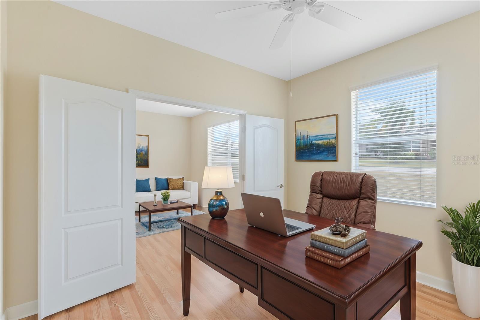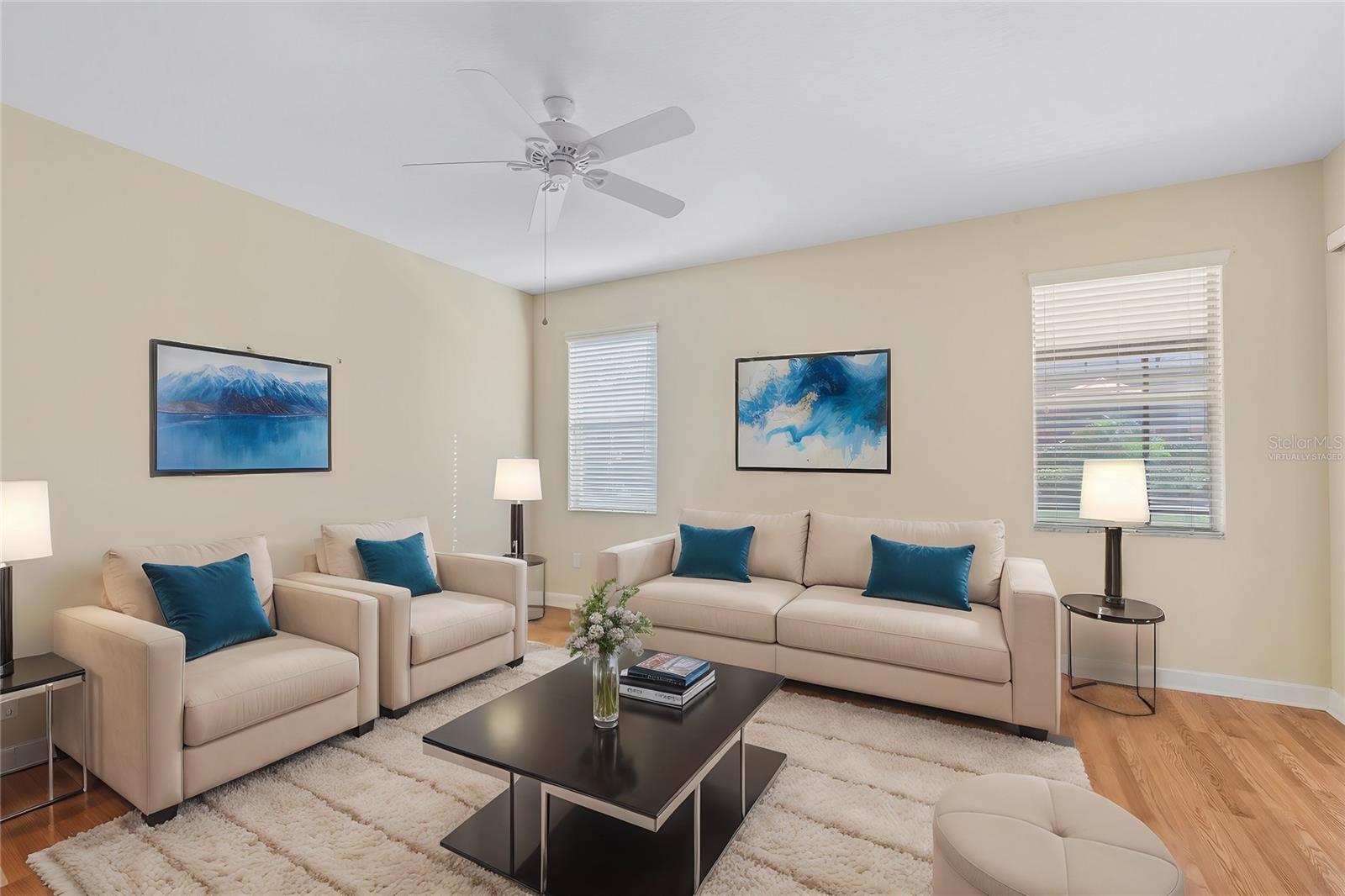 One or more photo(s) has been virtually staged. Reduced for a quick sale! Seller must sell and is very motivated with this reduced price! This one owner home in sought after Heritage Hills is move in ready and sits on an oversized corner lot! This 55+ easy living community is guard gated and offers tons of amenities! The Monroe II floor plan is a 3 bedroom, 3 full bath split floor plan. You have a private office, formal living room, formal dining room, open concept kitchen that flows to the family room while providing beautiful views to the covered lanai. The Primary suite is very spacious, 2 large walk in closets and a large en-suite bathroom with walk in shower. The 3 car garage is great for golf cart or extra storage. You will love to relax on your extended screened and covered lanai in the morning or afternoons. The yard on this home is very large and offers nice space, you sit high with a nice elevation. Roof replaced in 2023 and HVAC in 2020. The HOA for Heritage Hills covers all lawn mowing, re-mulching yearly and painting of exterior of home every six years. Lifestyle features are a resort style heated pool and spa, tennis and pickle ball courts, basketball, shuffleboard and more. Clubhouse offers 24-hour fitness center, craft room, library, card rooms as well as a Ballroom with stage and kitchen for special events. Additionally, there is a 5-mile walking trail around the community. Clermont is one of the most sought after areas in Central Florida! Known for its Rolling Hills and wonderful Lakes. You have great Hospitals, local shopping, easy access to the Florida Turnpike and a quick drive to Winter Garden and Disney and all the parks!