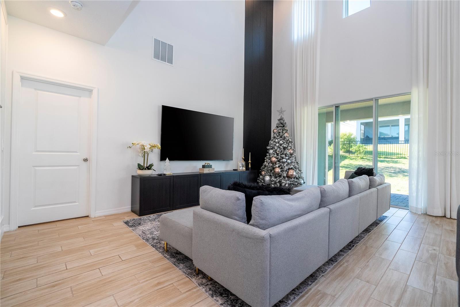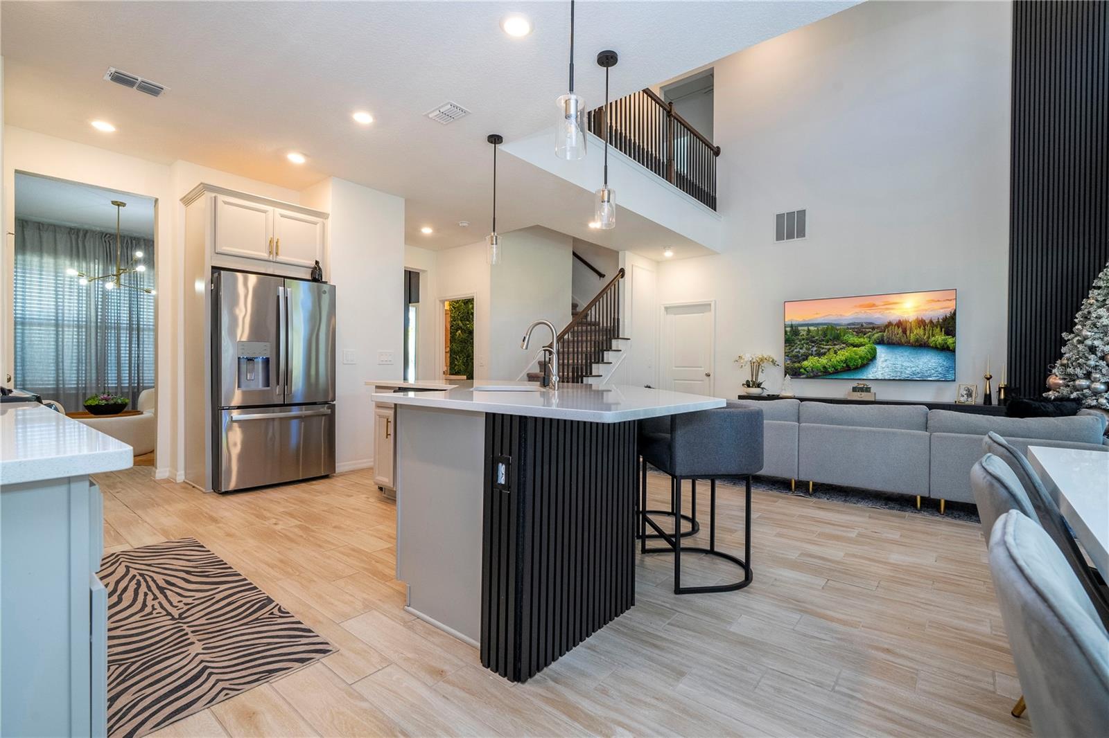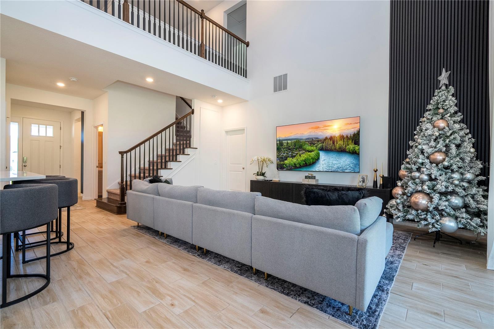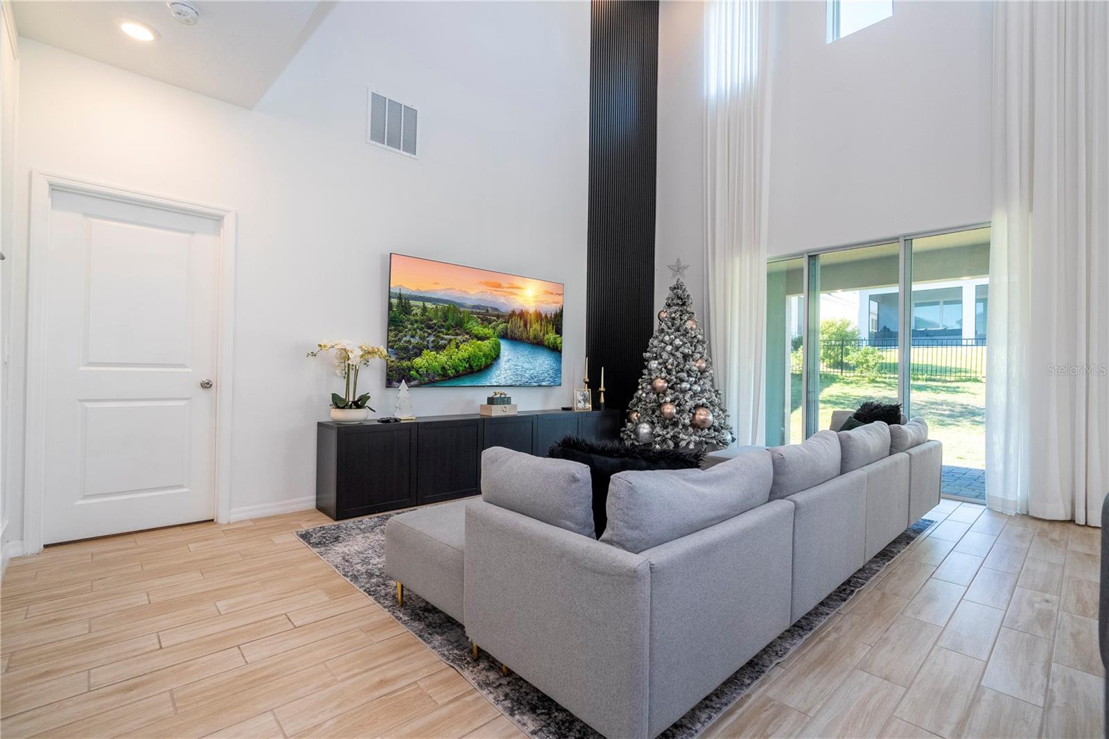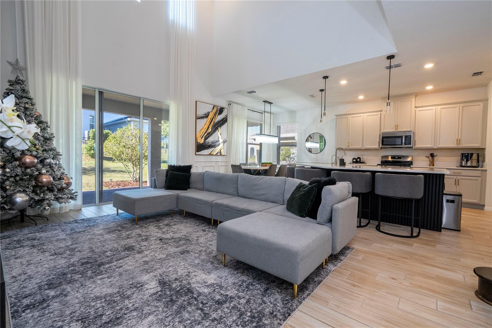 We are excited to present this exceptional home, where contemporary design meets ultimate family comfort. Situated in a desirable gated community within the top-rated Lost Lake Elementary School district, this home offers the ideal location for easy access to schools, shopping, dining, recreational activities, and more. Upon entering through the impressive 8-foot front door, you'll be welcomed into a breathtaking 20-foot high family room.. The open-concept layout seamlessly connects the living areas, with wood-look ceramic tile flooring throughout the entire first floor. Abundant natural light streams through the 8-foot sliding doors, highlighting the sleek quartz countertops in the kitchen. The kitchen, with its white cabinetry and stainless steel appliances, offers a practical layout with the perfect triangle of refrigerator, cooktop, and sink for efficient meal prep. Fully fenced backyard, this outdoor space is ideal for enjoying morning coffee, evening dinners, or simply unwinding. The first floor also features a convenient and large Master Suite, a true retreat, offering a walk-in closet, and a spa-like en-suite bath. The second floor includes 3 Bedrooms, a Flex room where you can transform into a Cinema Room or an Office, and also you will find a Bonus Room. Enjoy an energy-efficient AC system, all designed for low maintenance. The community's pool and playground are just a short walk away, making it easy to enjoy outdoor activities. Built in 2022, this home is only four years old, meticulously maintained, and ready to welcome its next owner. FURNITURE is negotiable if you would like.