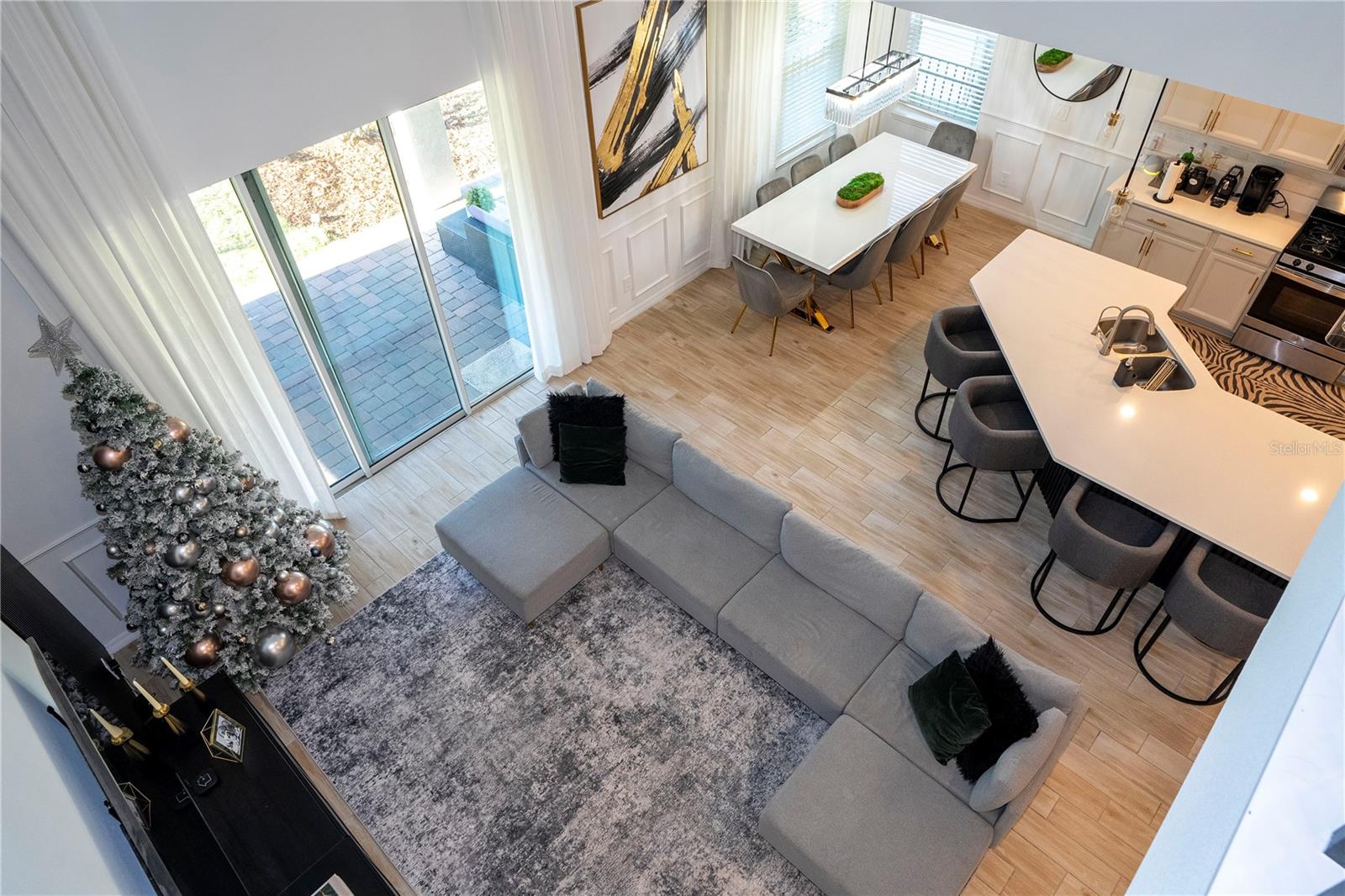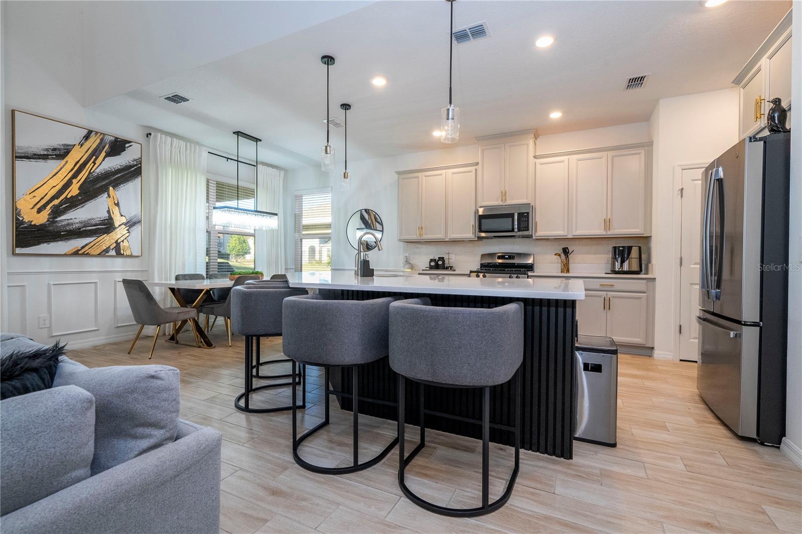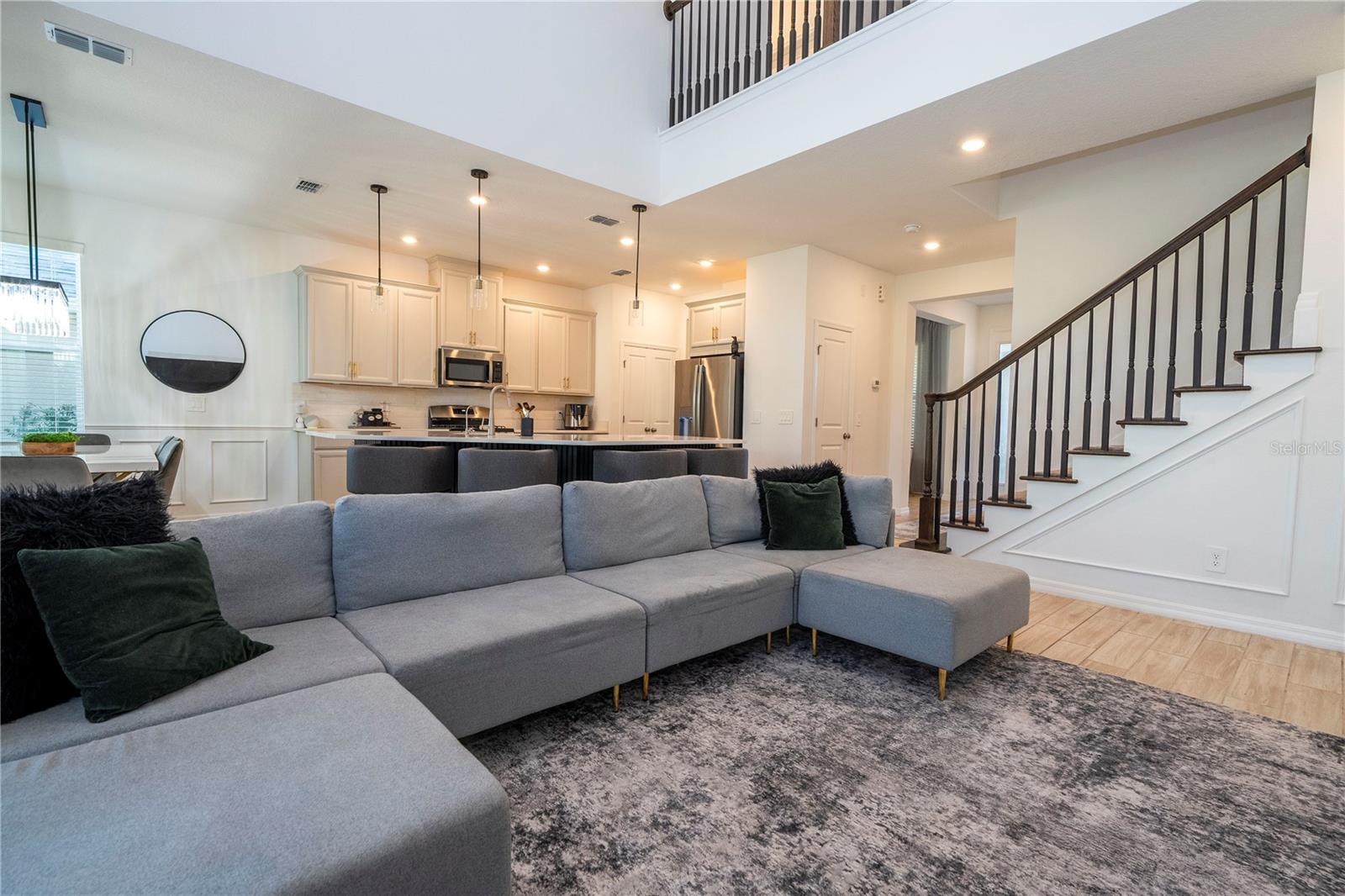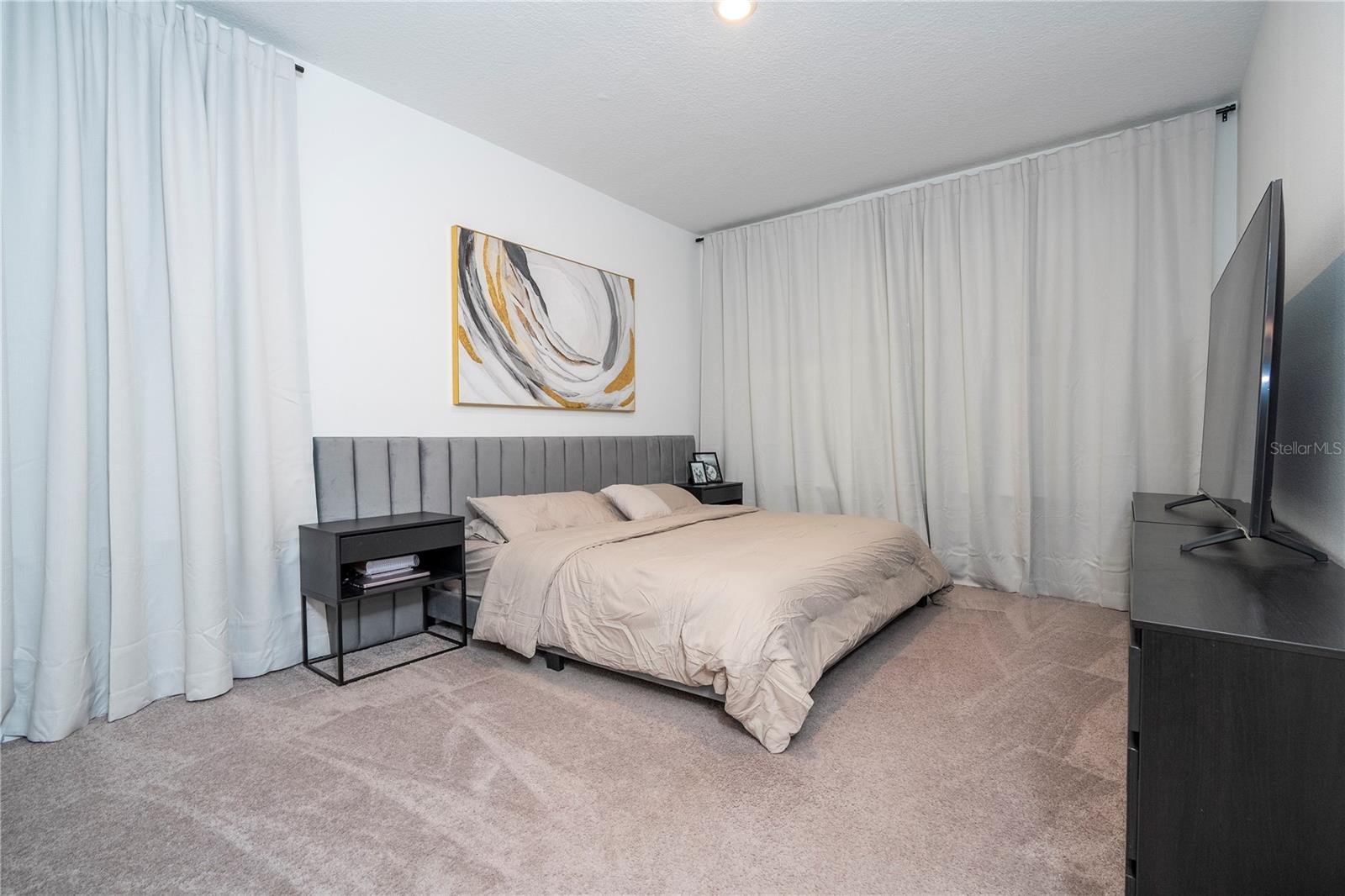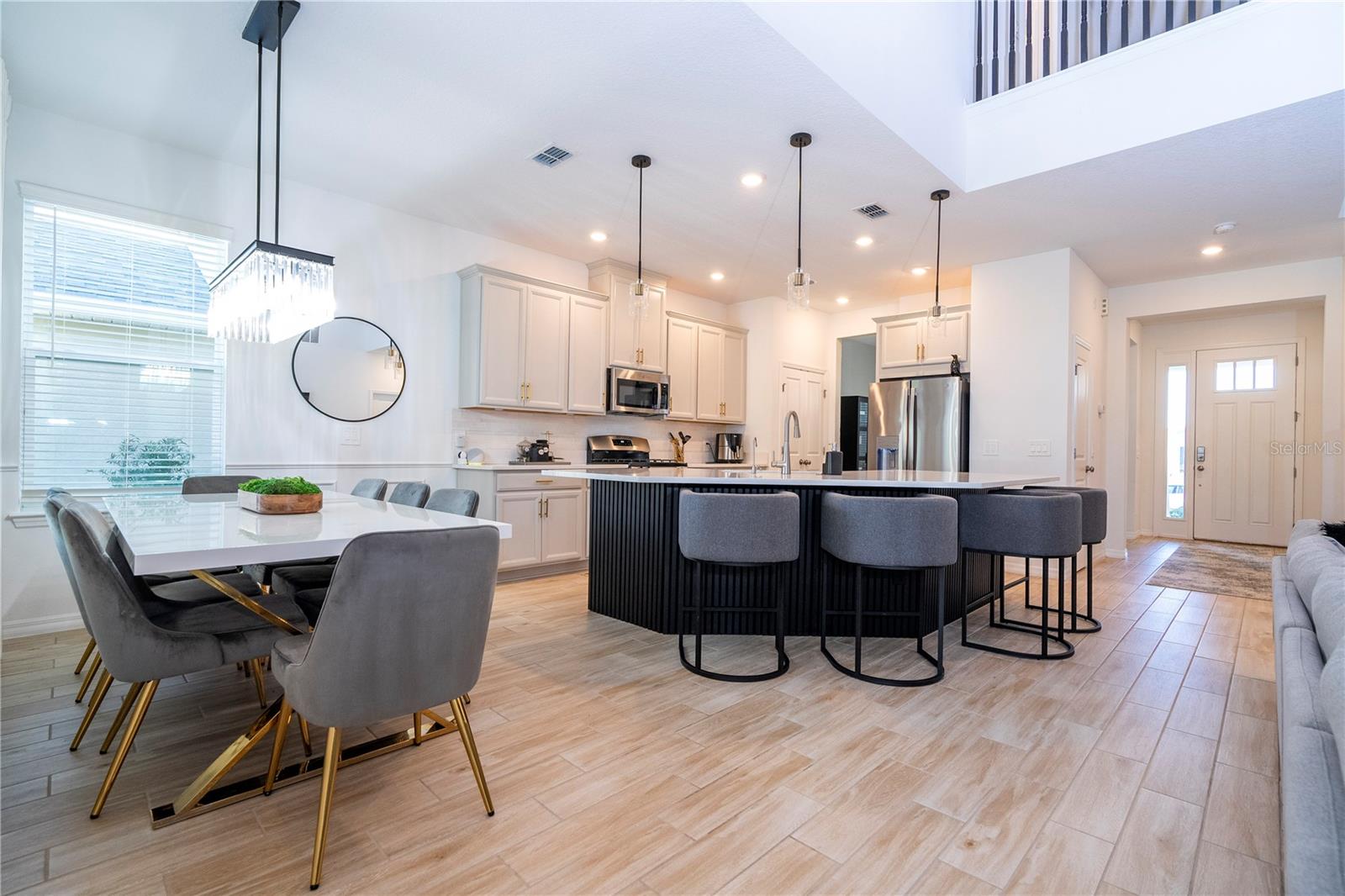 We are excited to present this exceptional home, where contemporary design meets ultimate family comfort. Situated in a desirable gated community within the top-rated Lost Lake Elementary School district, this home offers the ideal location for easy access to schools, shopping, dining, recreational activities, and more. Upon entering through the impressive 8-foot front door, you'll be welcomed into a breathtaking 20-foot high family room.. The open-concept layout seamlessly connects the living areas, with wood-look ceramic tile flooring throughout the entire first floor. Abundant natural light streams through the 8-foot sliding doors, highlighting the sleek quartz countertops in the kitchen. The kitchen, with its white cabinetry and stainless steel appliances, offers a practical layout with the perfect triangle of refrigerator, cooktop, and sink for efficient meal prep. Fully fenced backyard, this outdoor space is ideal for enjoying morning coffee, evening dinners, or simply unwinding. The first floor also features a convenient and large Master Suite, a true retreat, offering a walk-in closet, and a spa-like en-suite bath. The second floor includes 3 Bedrooms, a Flex room where you can transform into a Cinema Room or an Office, and also you will find a Bonus Room. Enjoy an energy-efficient AC system, all designed for low maintenance. The community's pool and playground are just a short walk away, making it easy to enjoy outdoor activities. Built in 2022, this home is only four years old, meticulously maintained, and ready to welcome its next owner. FURNITURE is negotiable if you would like.