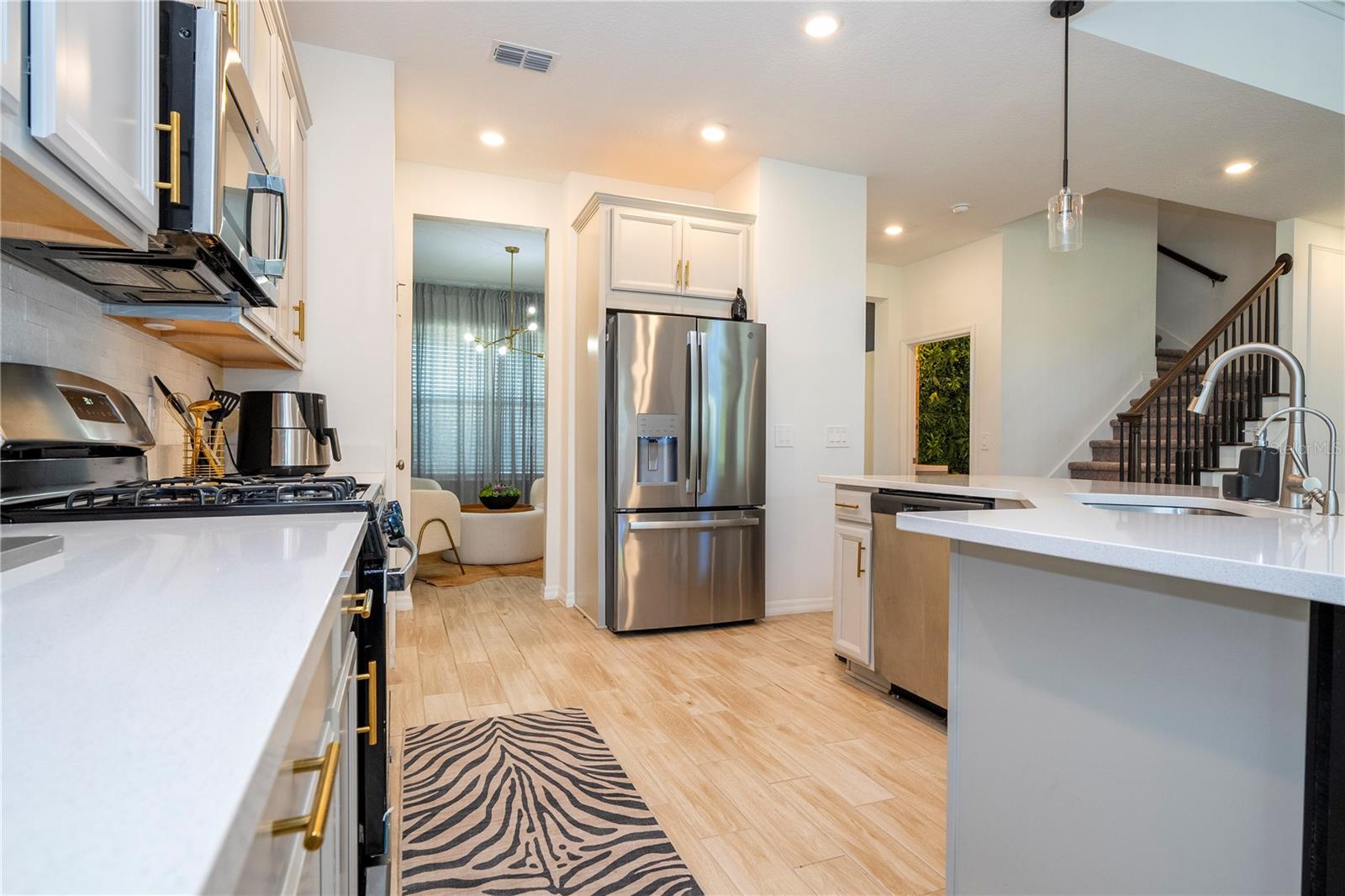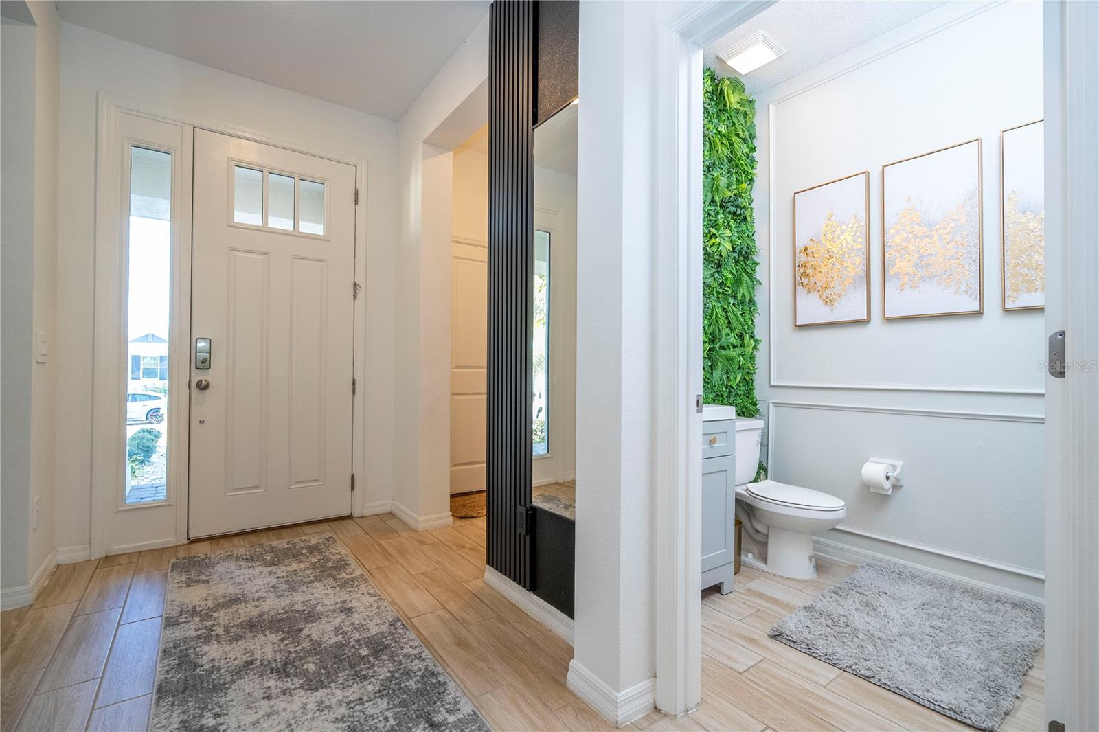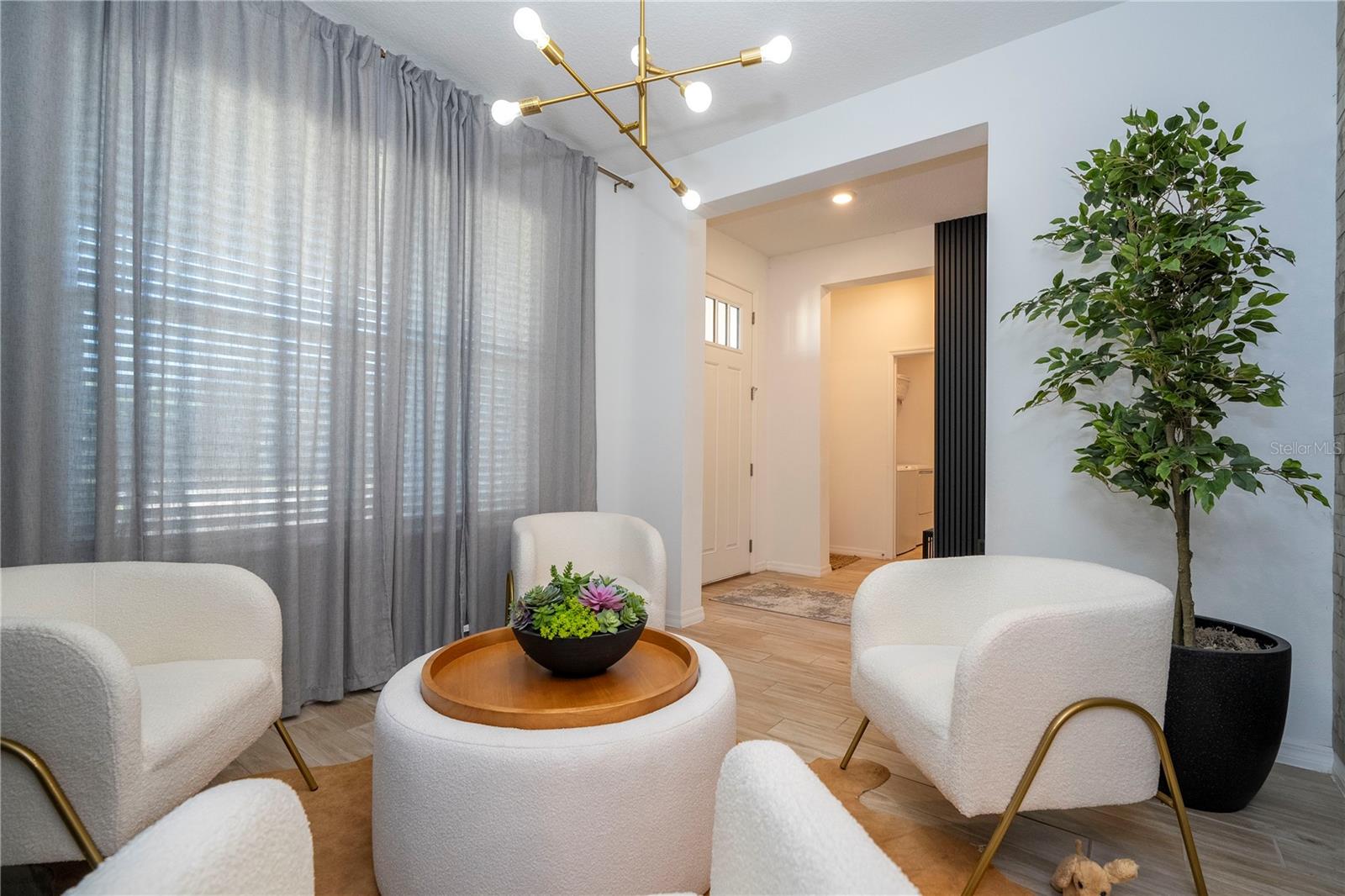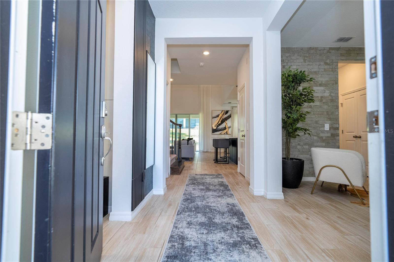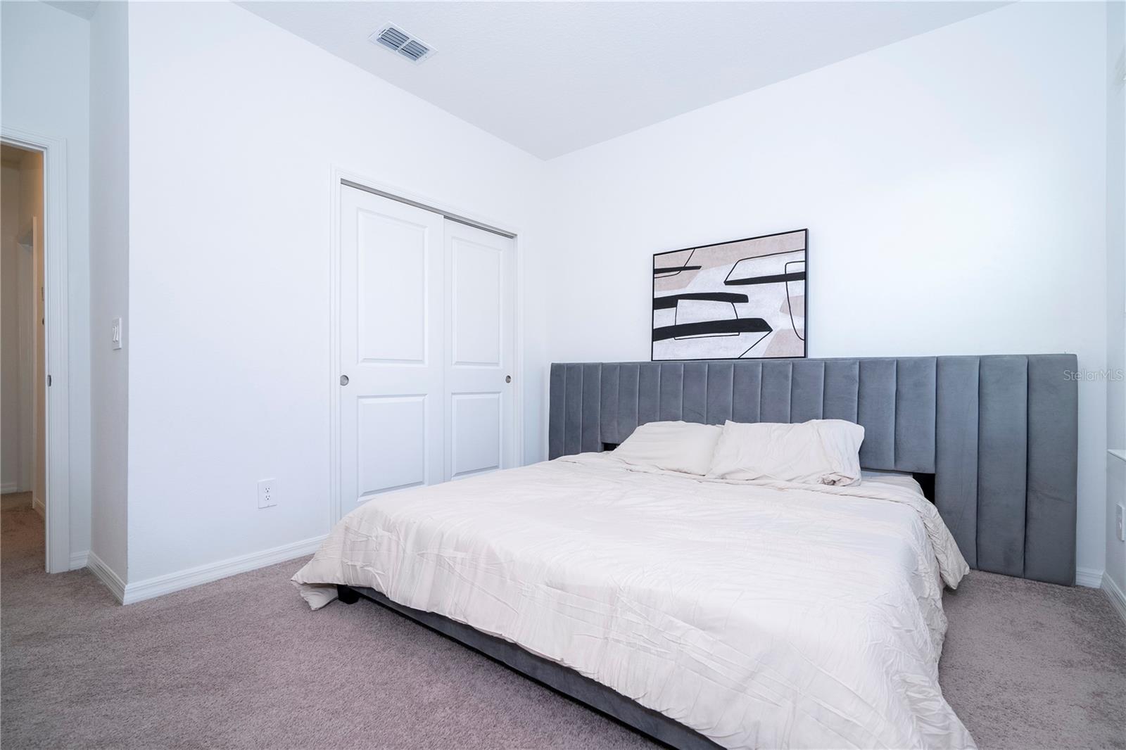 We are excited to present this exceptional home, where contemporary design meets ultimate family comfort. Situated in a desirable gated community within the top-rated Lost Lake Elementary School district, this home offers the ideal location for easy access to schools, shopping, dining, recreational activities, and more. Upon entering through the impressive 8-foot front door, you'll be welcomed into a breathtaking 20-foot high family room.. The open-concept layout seamlessly connects the living areas, with wood-look ceramic tile flooring throughout the entire first floor. Abundant natural light streams through the 8-foot sliding doors, highlighting the sleek quartz countertops in the kitchen. The kitchen, with its white cabinetry and stainless steel appliances, offers a practical layout with the perfect triangle of refrigerator, cooktop, and sink for efficient meal prep. Fully fenced backyard, this outdoor space is ideal for enjoying morning coffee, evening dinners, or simply unwinding. The first floor also features a convenient and large Master Suite, a true retreat, offering a walk-in closet, and a spa-like en-suite bath. The second floor includes 3 Bedrooms, a Flex room where you can transform into a Cinema Room or an Office, and also you will find a Bonus Room. Enjoy an energy-efficient AC system, all designed for low maintenance. The community's pool and playground are just a short walk away, making it easy to enjoy outdoor activities. Built in 2022, this home is only four years old, meticulously maintained, and ready to welcome its next owner. FURNITURE is negotiable if you would like.