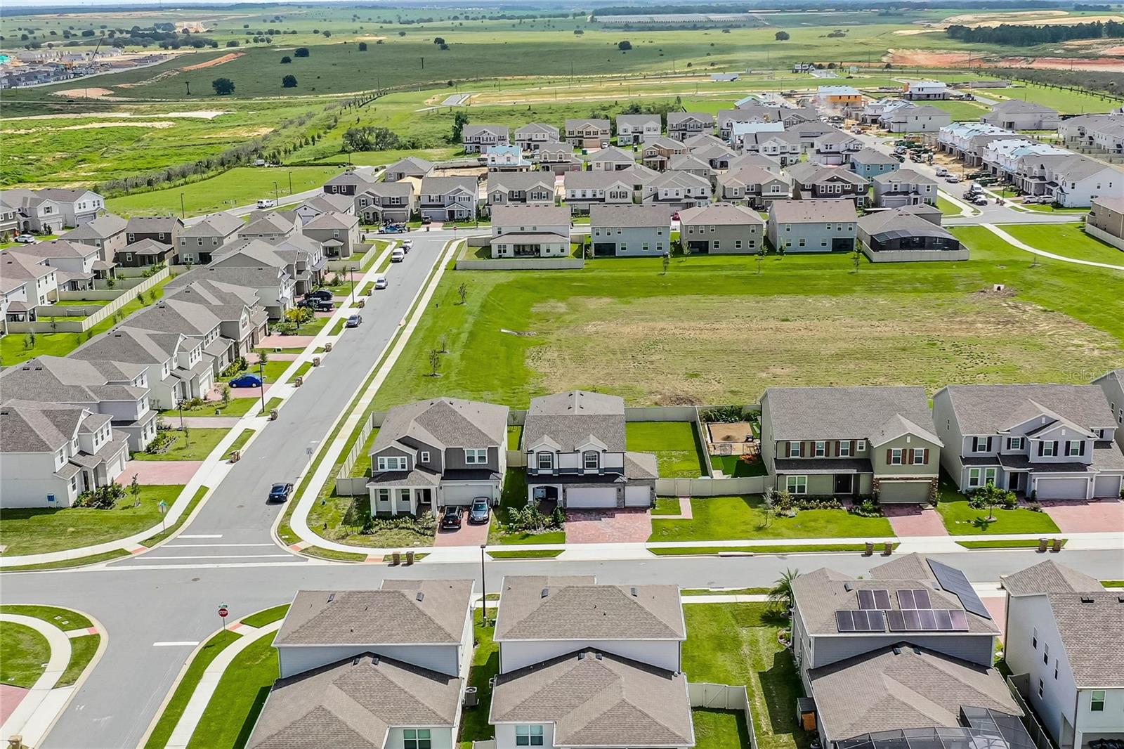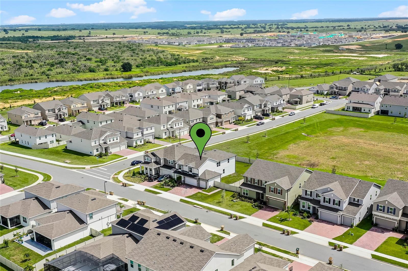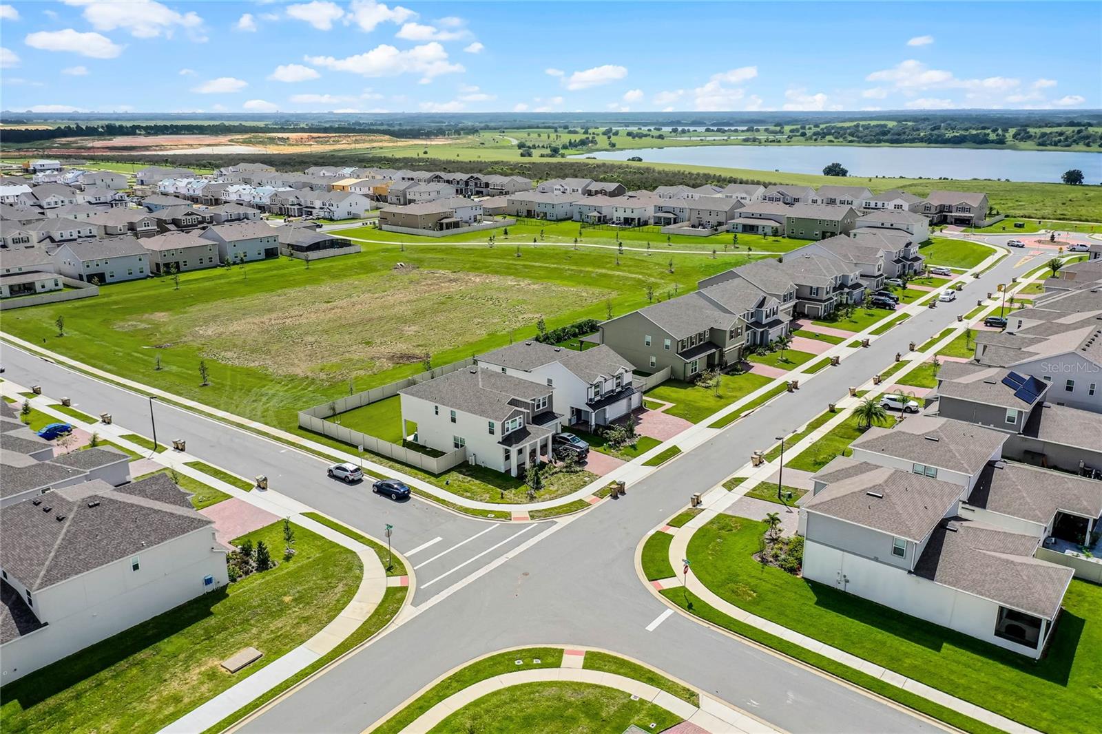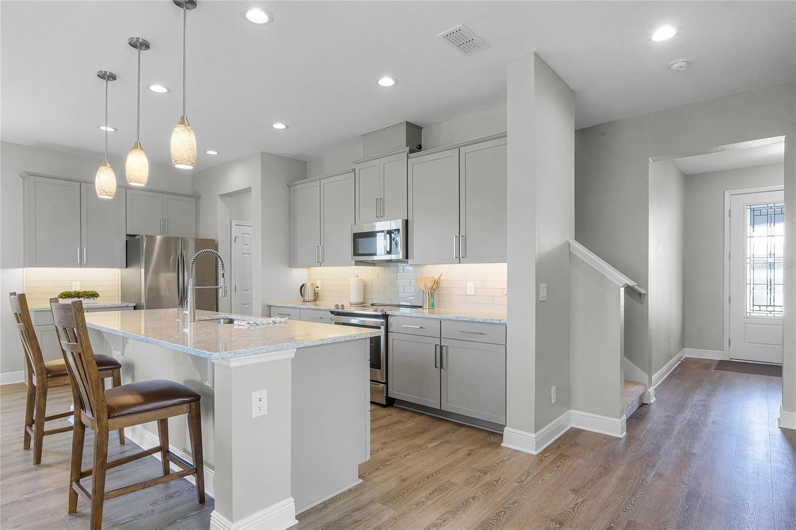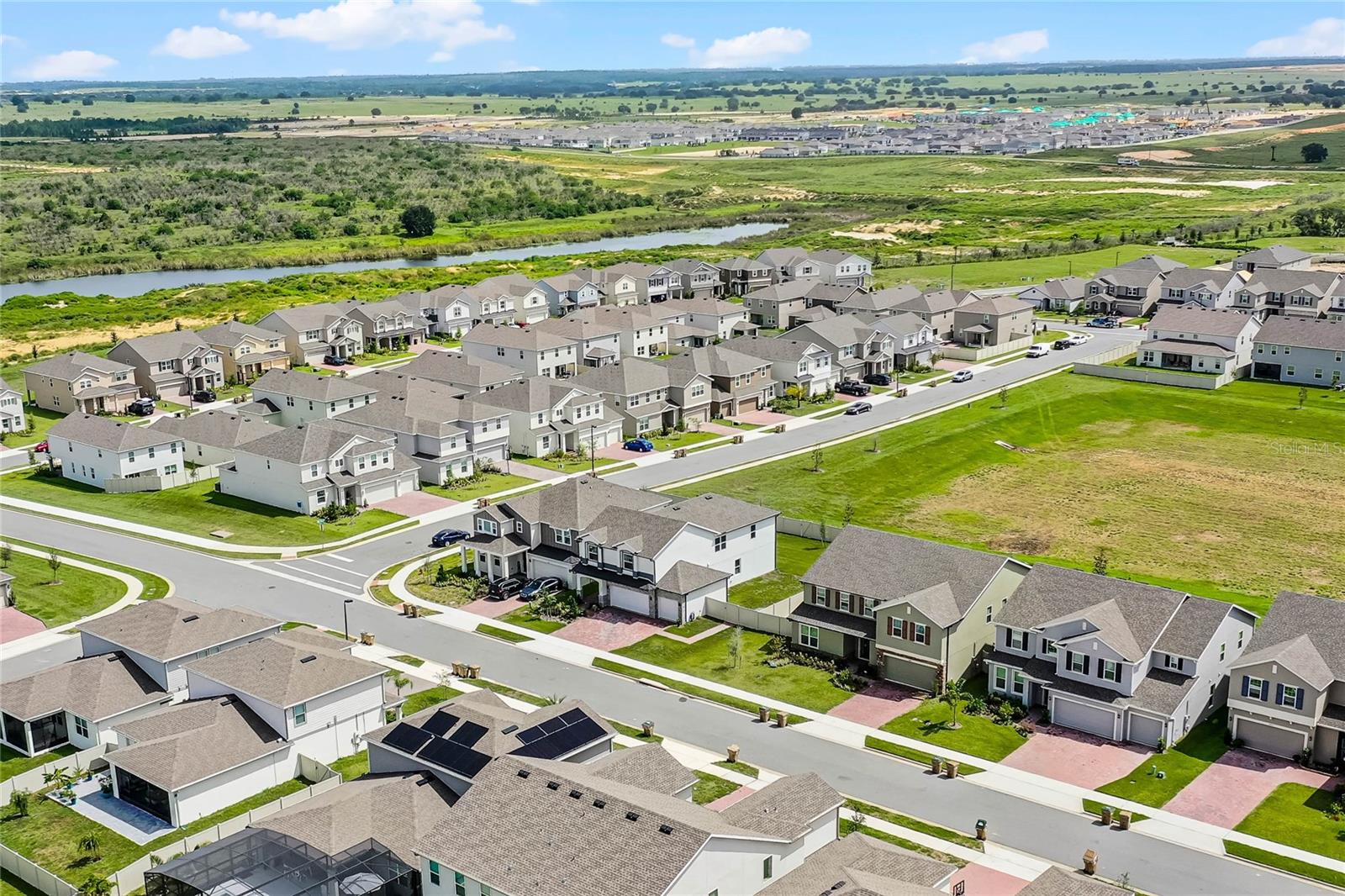 Why wait to build when you can own this stunning, better than new 4-bedroom, 2.5-bath home with an office and loft, perfectly situated on a private lot with no rear neighbors, backing up to a serene retention area. Lived in for less than a year, this home is in pristine condition and boasts over $100,000 in luxurious upgrades. From the moment you arrive, the beautiful stone front façade and paver driveway and walkway create an inviting first impression. The large, fenced backyard offers ample room to design your dream pool, with a paver walkway extending from the front yard to the gate. Step inside through the charming covered front porch, where luxury vinyl plank floors flow seamlessly throughout the main level. The spacious foyer features a drop zone/mudroom for convenient storage. The open-concept living space includes a bright and airy dining area, living room, and a chef’s dream kitchen. The kitchen is a true showpiece, with under-cabinet lighting, quartz countertops, stainless steel appliances, a subway-tile backsplash, and a large counter-height island with pendant lighting perfect for casual dining. The kitchen also offers a pantry with custom shelving and an additional storage closet, ideal for a second pantry. Adjacent to the living area, a dedicated office space provides a quiet retreat with views of the backyard. The first floor also includes a half bath and a functional laundry room equipped with built-in cabinetry and a quartz-topped folding station for added convenience. Upstairs, plush upgraded carpeting guides you to a spacious loft, perfect for additional living space. The primary suite is an impressive retreat, featuring a separate sitting area ideal for a home gym, nursery, or private relaxation space. The en-suite bath is beautifully appointed with a double-sink quartz vanity, a glass enclosed shower, and a large walk-in closet with a custom closet system. Additional upgrades in the primary suite include a Brondell Swash toilet seat for a spa-like experience. The remaining bedrooms are generously sized and share a well-appointed second full bath with a double quartz vanity and another upgraded toilet seat. Outside, enjoy the peaceful view from the screened lanai, overlooking the expansive backyard, which extends along the side of the house. The home is packed with modern conveniences, including smart features such as WiFi-enabled lighting, a doorbell camera, a smart thermostat, a WiFi garage door opener, and a front door keypad. Ceiling fans with remote controls are installed in every room, and thoughtful touches like nightlight outlets throughout the hallways and bathrooms add to the home’s charm. The garage and lanai floors have been upgraded with durable Polyaspartic floor coating, and the exterior is equipped with gutters for added functionality. Located just across from Lake Louisa State Park, this home is surrounded by natural beauty and offers easy access to outdoor adventures such as swimming, boating, hiking, and biking. The Ridgeview community, conveniently located on US 27 with nearby SR 429 access, is next to the upcoming Olympus Sports Project, promising future recreational opportunities.