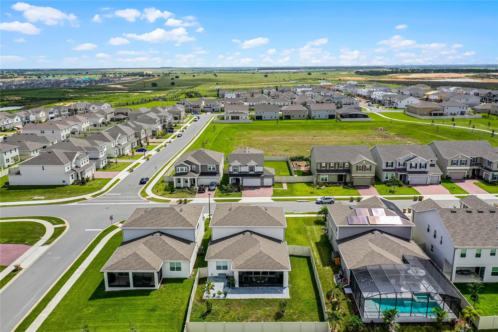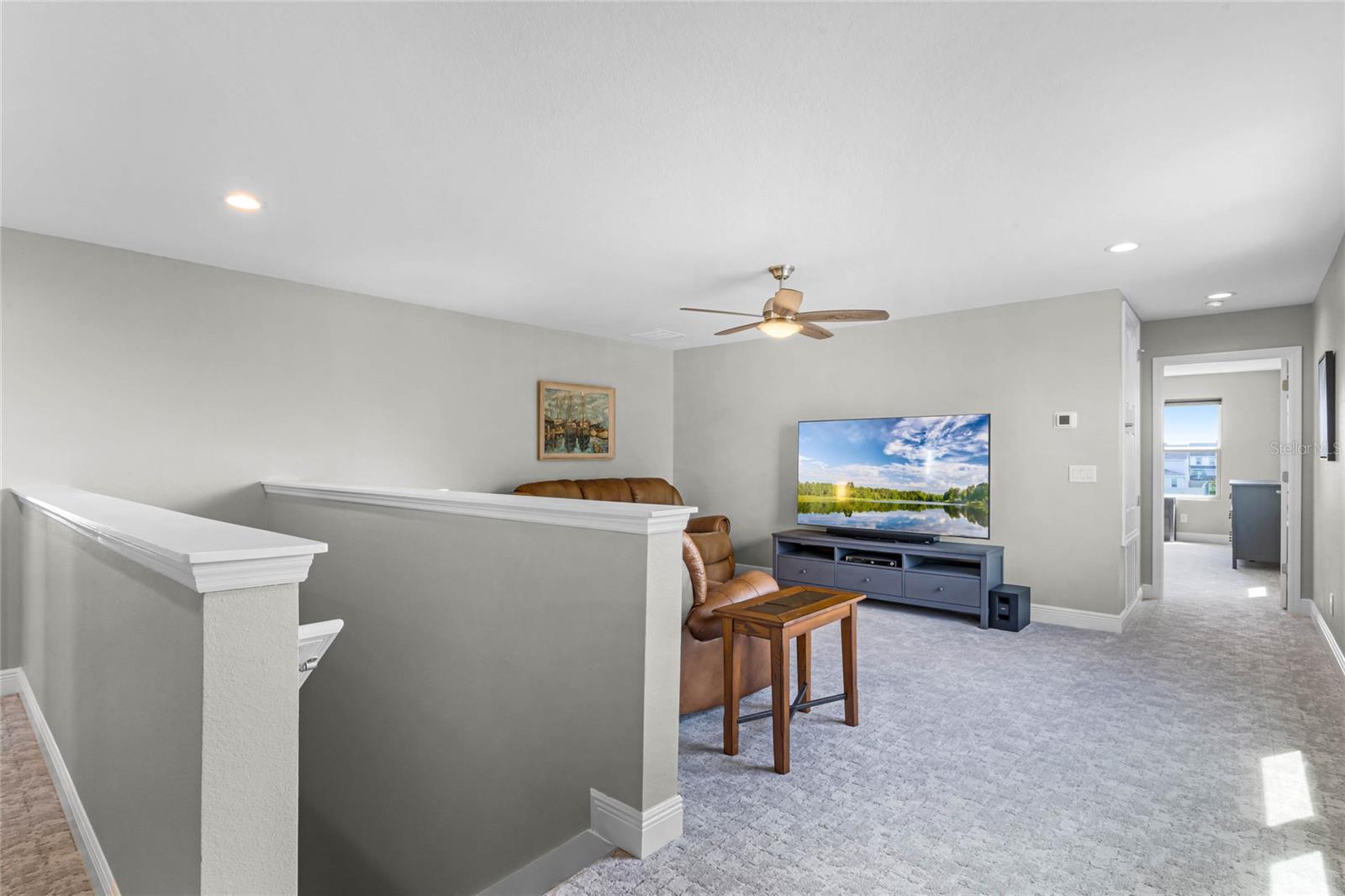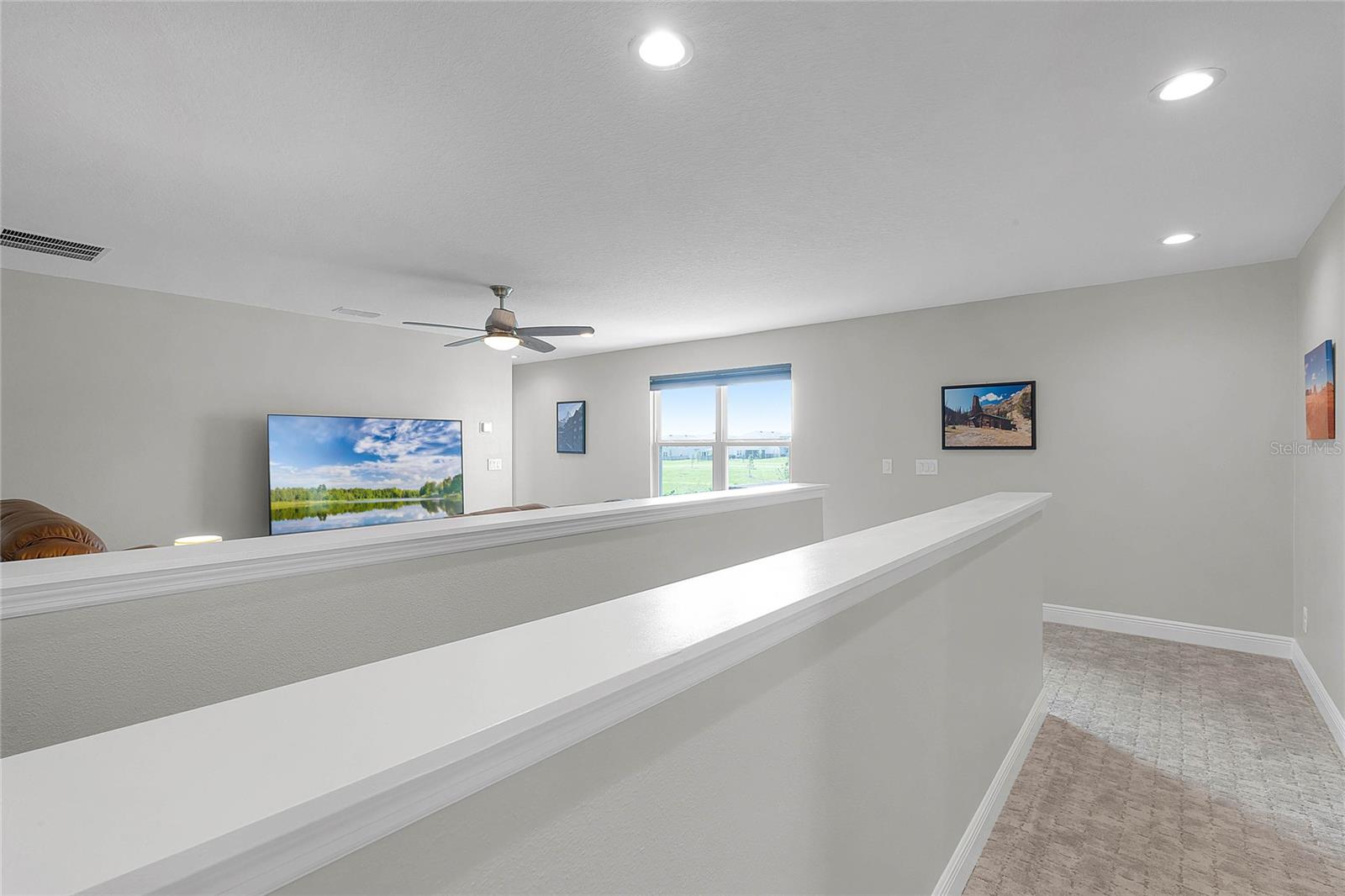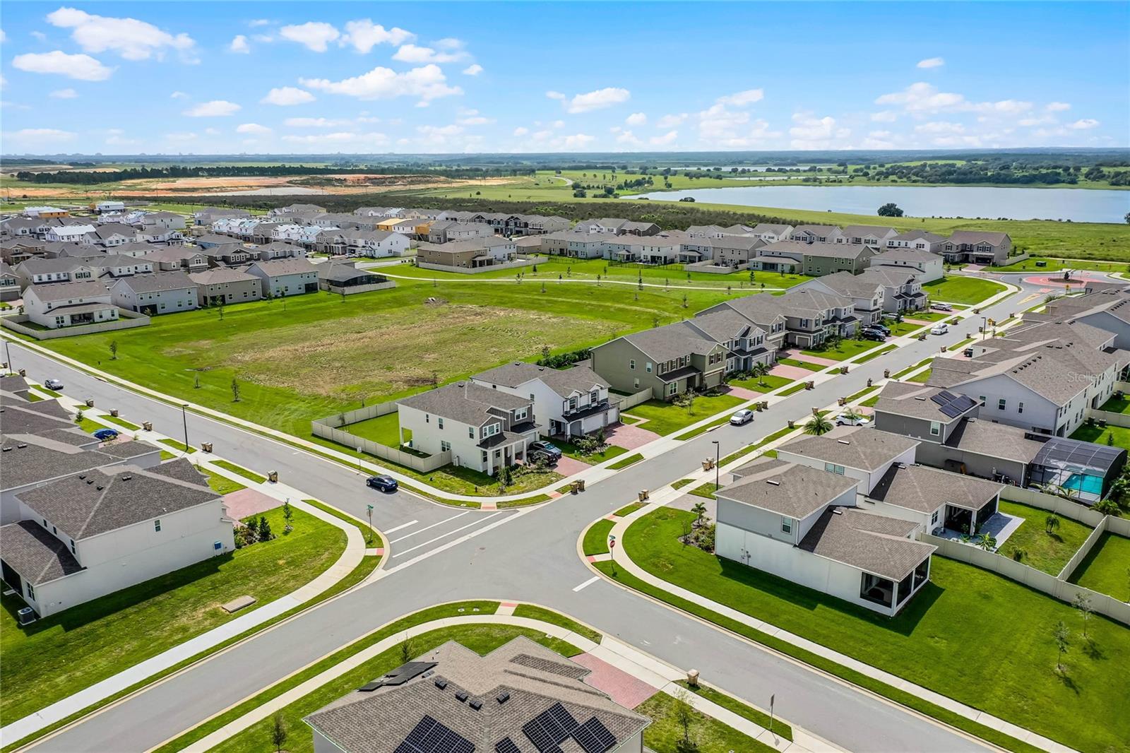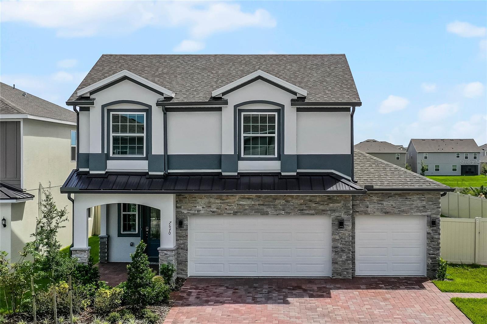 Why wait to build when you can own this stunning, better than new 4-bedroom, 2.5-bath home with an office and loft, perfectly situated on a private lot with no rear neighbors, backing up to a serene retention area. Lived in for less than a year, this home is in pristine condition and boasts over $100,000 in luxurious upgrades. From the moment you arrive, the beautiful stone front façade and paver driveway and walkway create an inviting first impression. The large, fenced backyard offers ample room to design your dream pool, with a paver walkway extending from the front yard to the gate. Step inside through the charming covered front porch, where luxury vinyl plank floors flow seamlessly throughout the main level. The spacious foyer features a drop zone/mudroom for convenient storage. The open-concept living space includes a bright and airy dining area, living room, and a chef’s dream kitchen. The kitchen is a true showpiece, with under-cabinet lighting, quartz countertops, stainless steel appliances, a subway-tile backsplash, and a large counter-height island with pendant lighting perfect for casual dining. The kitchen also offers a pantry with custom shelving and an additional storage closet, ideal for a second pantry. Adjacent to the living area, a dedicated office space provides a quiet retreat with views of the backyard. The first floor also includes a half bath and a functional laundry room equipped with built-in cabinetry and a quartz-topped folding station for added convenience. Upstairs, plush upgraded carpeting guides you to a spacious loft, perfect for additional living space. The primary suite is an impressive retreat, featuring a separate sitting area ideal for a home gym, nursery, or private relaxation space. The en-suite bath is beautifully appointed with a double-sink quartz vanity, a glass enclosed shower, and a large walk-in closet with a custom closet system. Additional upgrades in the primary suite include a Brondell Swash toilet seat for a spa-like experience. The remaining bedrooms are generously sized and share a well-appointed second full bath with a double quartz vanity and another upgraded toilet seat. Outside, enjoy the peaceful view from the screened lanai, overlooking the expansive backyard, which extends along the side of the house. The home is packed with modern conveniences, including smart features such as WiFi-enabled lighting, a doorbell camera, a smart thermostat, a WiFi garage door opener, and a front door keypad. Ceiling fans with remote controls are installed in every room, and thoughtful touches like nightlight outlets throughout the hallways and bathrooms add to the home’s charm. The garage and lanai floors have been upgraded with durable Polyaspartic floor coating, and the exterior is equipped with gutters for added functionality. Located just across from Lake Louisa State Park, this home is surrounded by natural beauty and offers easy access to outdoor adventures such as swimming, boating, hiking, and biking. The Ridgeview community, conveniently located on US 27 with nearby SR 429 access, is next to the upcoming Olympus Sports Project, promising future recreational opportunities.