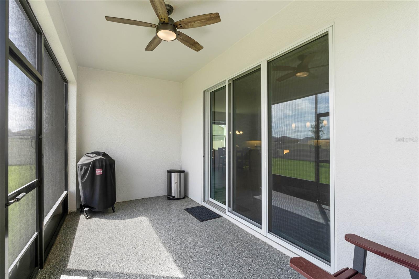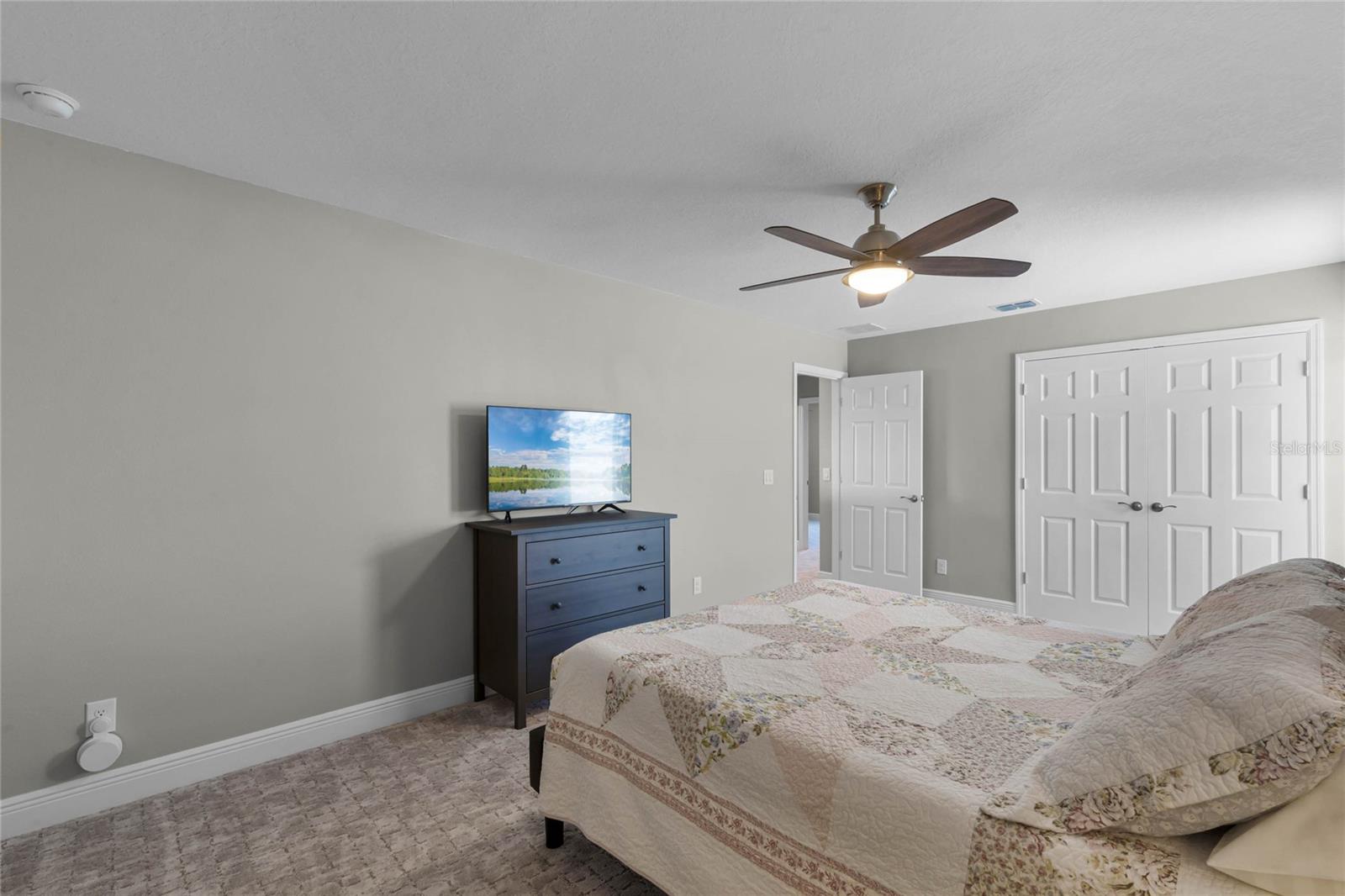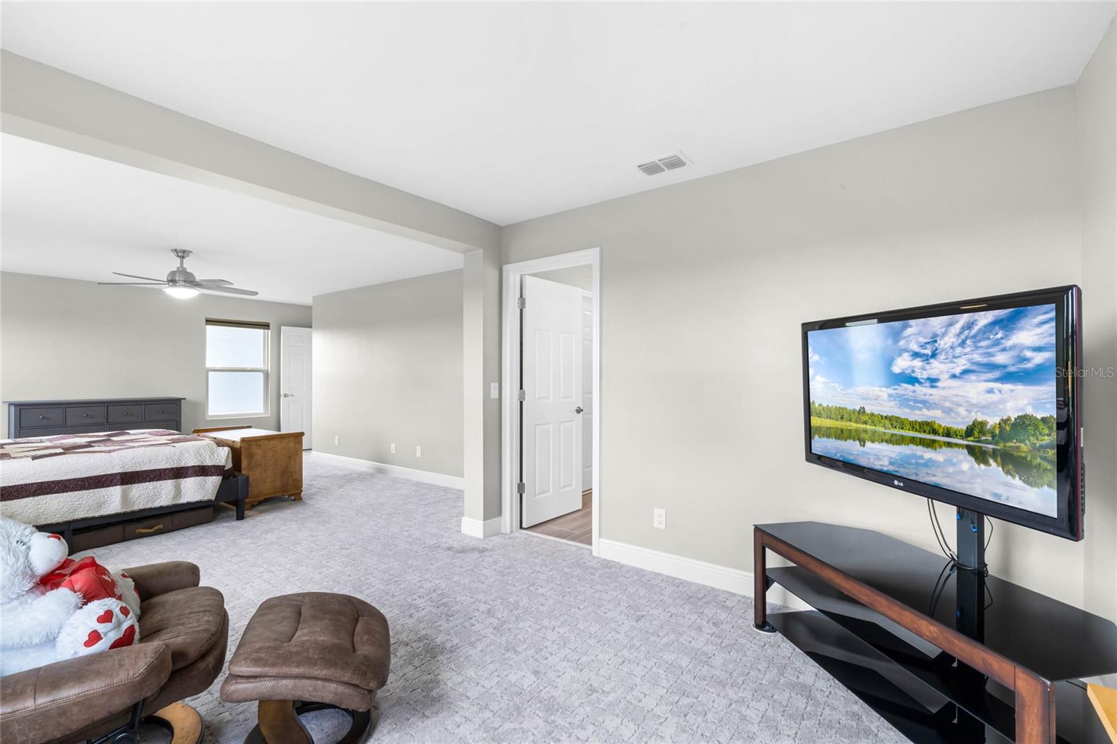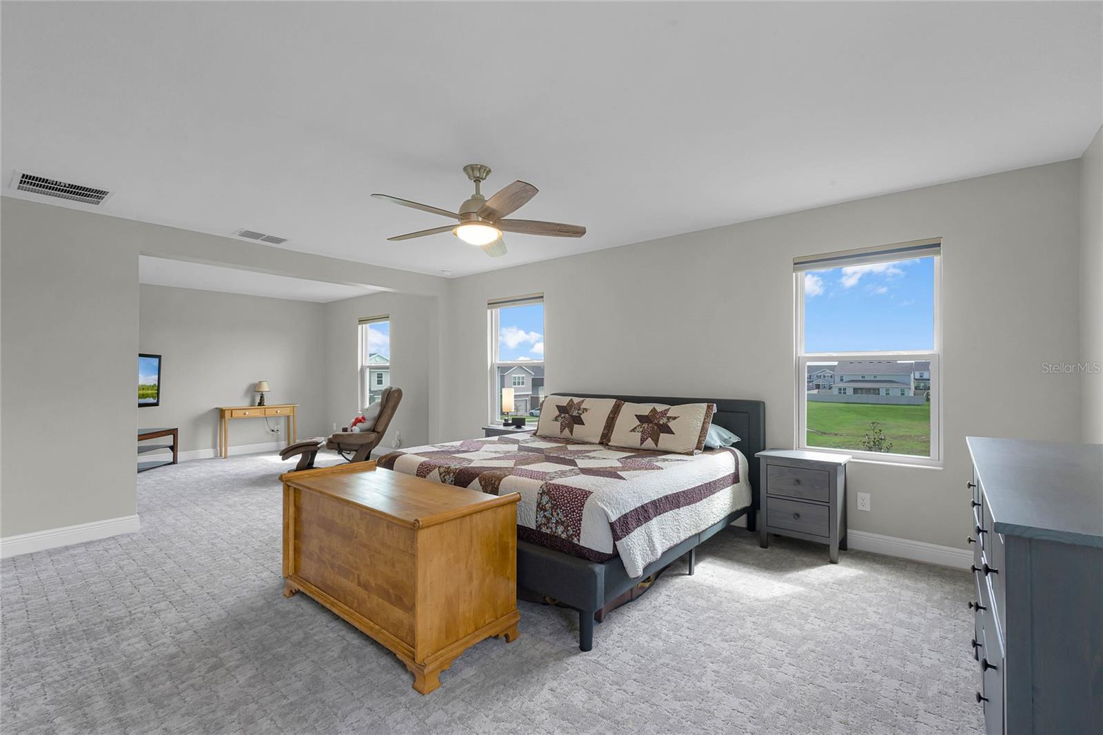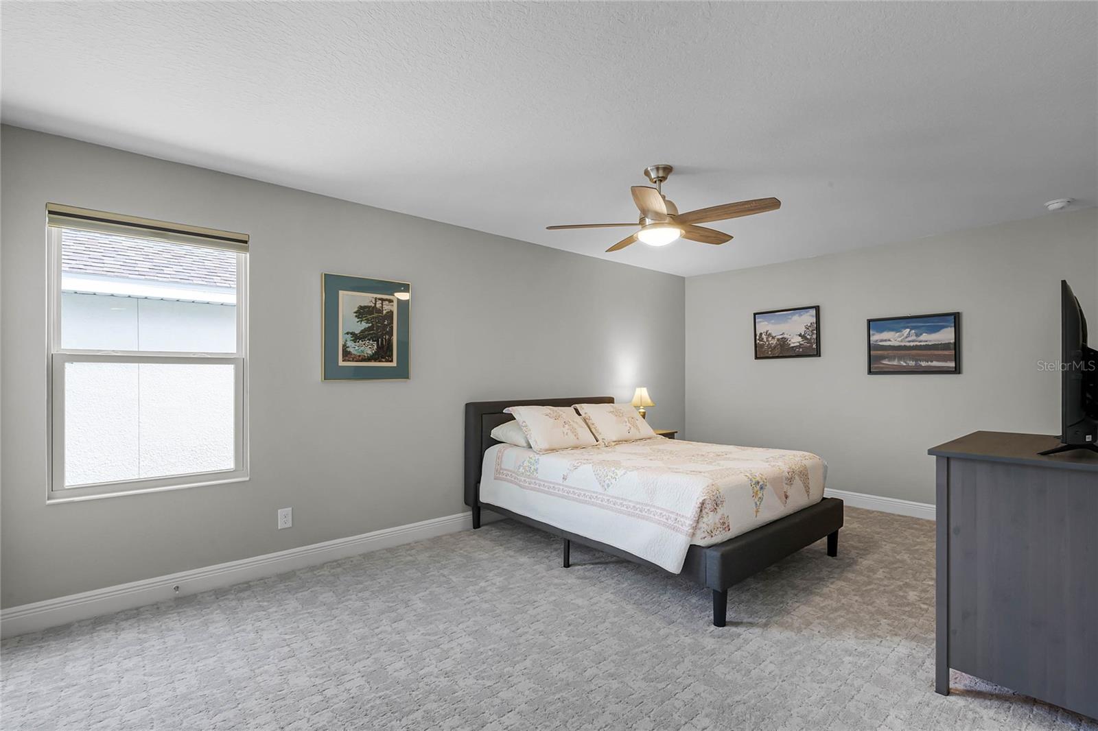 Why wait to build when you can own this stunning, better than new 4-bedroom, 2.5-bath home with an office and loft, perfectly situated on a private lot with no rear neighbors, backing up to a serene retention area. Lived in for less than a year, this home is in pristine condition and boasts over $100,000 in luxurious upgrades. From the moment you arrive, the beautiful stone front façade and paver driveway and walkway create an inviting first impression. The large, fenced backyard offers ample room to design your dream pool, with a paver walkway extending from the front yard to the gate. Step inside through the charming covered front porch, where luxury vinyl plank floors flow seamlessly throughout the main level. The spacious foyer features a drop zone/mudroom for convenient storage. The open-concept living space includes a bright and airy dining area, living room, and a chef’s dream kitchen. The kitchen is a true showpiece, with under-cabinet lighting, quartz countertops, stainless steel appliances, a subway-tile backsplash, and a large counter-height island with pendant lighting perfect for casual dining. The kitchen also offers a pantry with custom shelving and an additional storage closet, ideal for a second pantry. Adjacent to the living area, a dedicated office space provides a quiet retreat with views of the backyard. The first floor also includes a half bath and a functional laundry room equipped with built-in cabinetry and a quartz-topped folding station for added convenience. Upstairs, plush upgraded carpeting guides you to a spacious loft, perfect for additional living space. The primary suite is an impressive retreat, featuring a separate sitting area ideal for a home gym, nursery, or private relaxation space. The en-suite bath is beautifully appointed with a double-sink quartz vanity, a glass enclosed shower, and a large walk-in closet with a custom closet system. Additional upgrades in the primary suite include a Brondell Swash toilet seat for a spa-like experience. The remaining bedrooms are generously sized and share a well-appointed second full bath with a double quartz vanity and another upgraded toilet seat. Outside, enjoy the peaceful view from the screened lanai, overlooking the expansive backyard, which extends along the side of the house. The home is packed with modern conveniences, including smart features such as WiFi-enabled lighting, a doorbell camera, a smart thermostat, a WiFi garage door opener, and a front door keypad. Ceiling fans with remote controls are installed in every room, and thoughtful touches like nightlight outlets throughout the hallways and bathrooms add to the home’s charm. The garage and lanai floors have been upgraded with durable Polyaspartic floor coating, and the exterior is equipped with gutters for added functionality. Located just across from Lake Louisa State Park, this home is surrounded by natural beauty and offers easy access to outdoor adventures such as swimming, boating, hiking, and biking. The Ridgeview community, conveniently located on US 27 with nearby SR 429 access, is next to the upcoming Olympus Sports Project, promising future recreational opportunities.