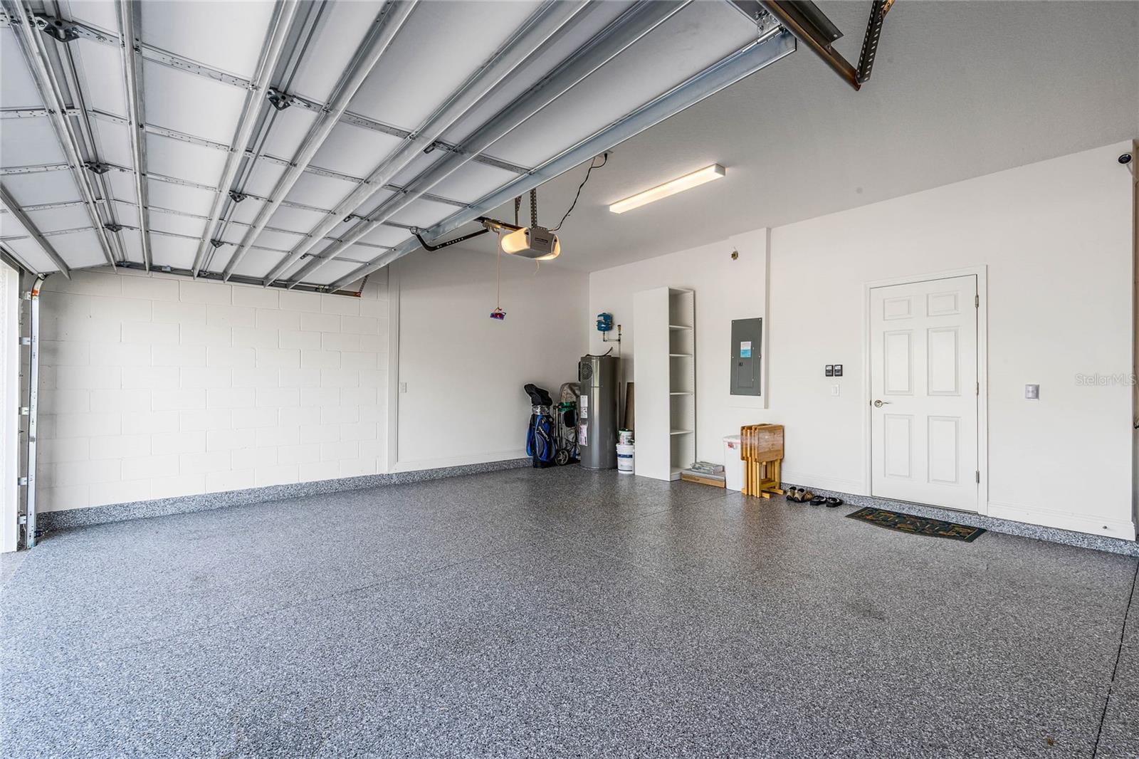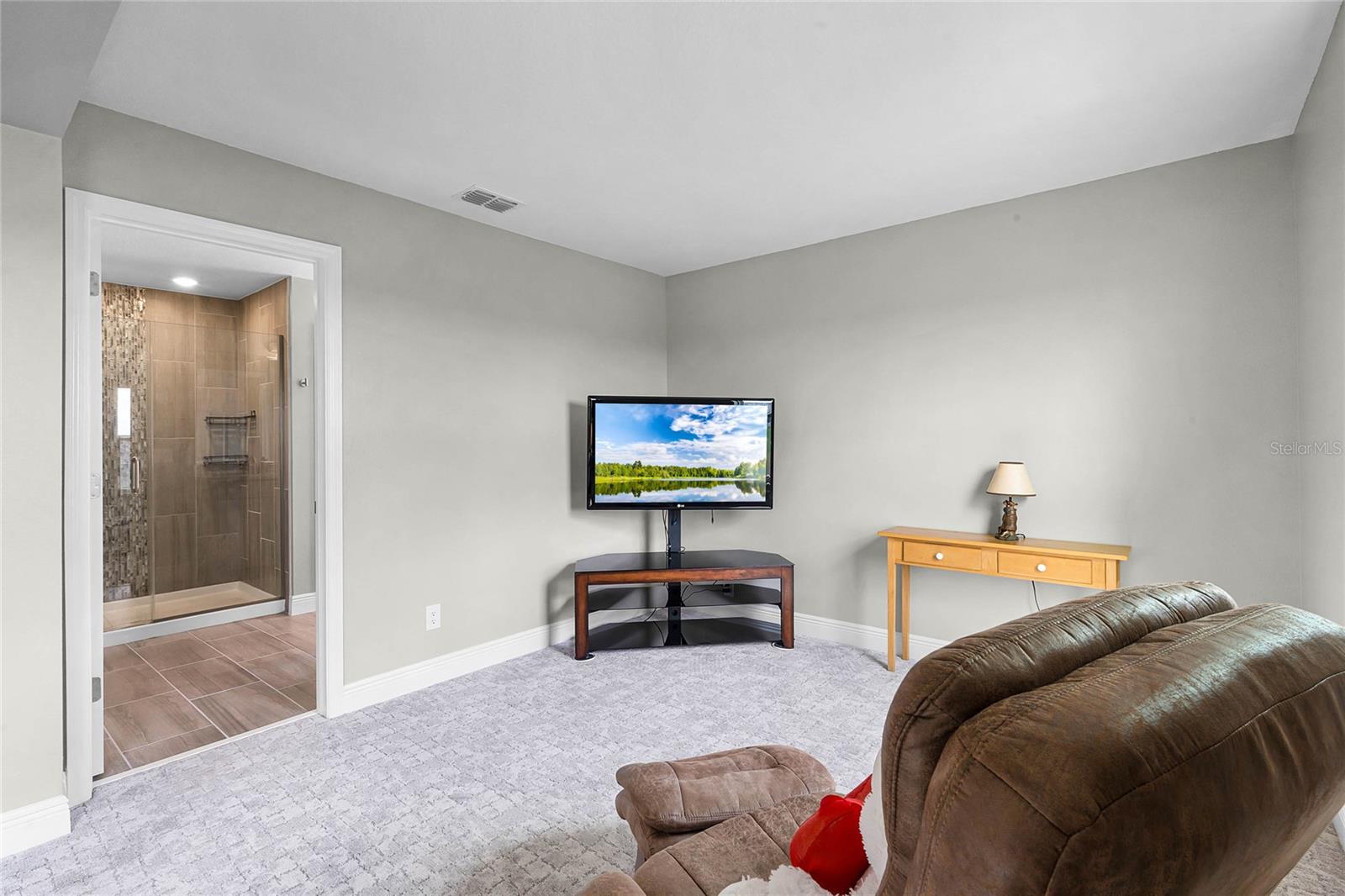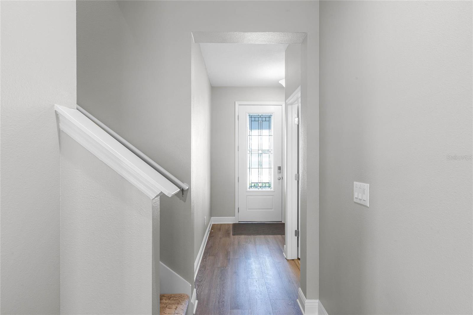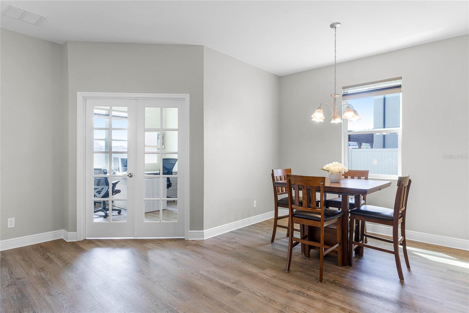 Why wait to build when you can own this stunning, better than new 4-bedroom, 2.5-bath home with an office and loft, perfectly situated on a private lot with no rear neighbors, backing up to a serene retention area. Lived in for less than a year, this home is in pristine condition and boasts over $100,000 in luxurious upgrades. From the moment you arrive, the beautiful stone front façade and paver driveway and walkway create an inviting first impression. The large, fenced backyard offers ample room to design your dream pool, with a paver walkway extending from the front yard to the gate. Step inside through the charming covered front porch, where luxury vinyl plank floors flow seamlessly throughout the main level. The spacious foyer features a drop zone/mudroom for convenient storage. The open-concept living space includes a bright and airy dining area, living room, and a chef’s dream kitchen. The kitchen is a true showpiece, with under-cabinet lighting, quartz countertops, stainless steel appliances, a subway-tile backsplash, and a large counter-height island with pendant lighting perfect for casual dining. The kitchen also offers a pantry with custom shelving and an additional storage closet, ideal for a second pantry. Adjacent to the living area, a dedicated office space provides a quiet retreat with views of the backyard. The first floor also includes a half bath and a functional laundry room equipped with built-in cabinetry and a quartz-topped folding station for added convenience. Upstairs, plush upgraded carpeting guides you to a spacious loft, perfect for additional living space. The primary suite is an impressive retreat, featuring a separate sitting area ideal for a home gym, nursery, or private relaxation space. The en-suite bath is beautifully appointed with a double-sink quartz vanity, a glass enclosed shower, and a large walk-in closet with a custom closet system. Additional upgrades in the primary suite include a Brondell Swash toilet seat for a spa-like experience. The remaining bedrooms are generously sized and share a well-appointed second full bath with a double quartz vanity and another upgraded toilet seat. Outside, enjoy the peaceful view from the screened lanai, overlooking the expansive backyard, which extends along the side of the house. The home is packed with modern conveniences, including smart features such as WiFi-enabled lighting, a doorbell camera, a smart thermostat, a WiFi garage door opener, and a front door keypad. Ceiling fans with remote controls are installed in every room, and thoughtful touches like nightlight outlets throughout the hallways and bathrooms add to the home’s charm. The garage and lanai floors have been upgraded with durable Polyaspartic floor coating, and the exterior is equipped with gutters for added functionality. Located just across from Lake Louisa State Park, this home is surrounded by natural beauty and offers easy access to outdoor adventures such as swimming, boating, hiking, and biking. The Ridgeview community, conveniently located on US 27 with nearby SR 429 access, is next to the upcoming Olympus Sports Project, promising future recreational opportunities.