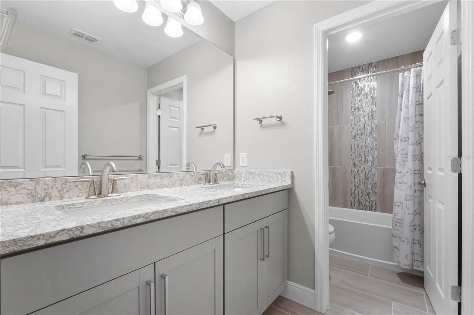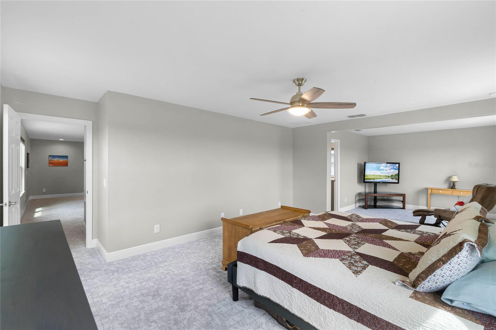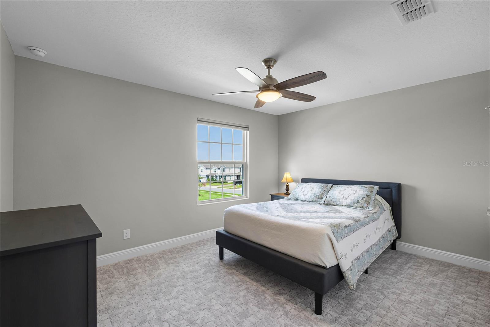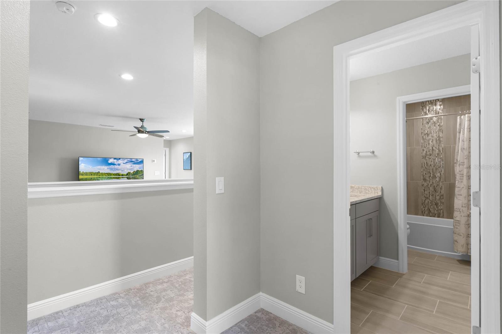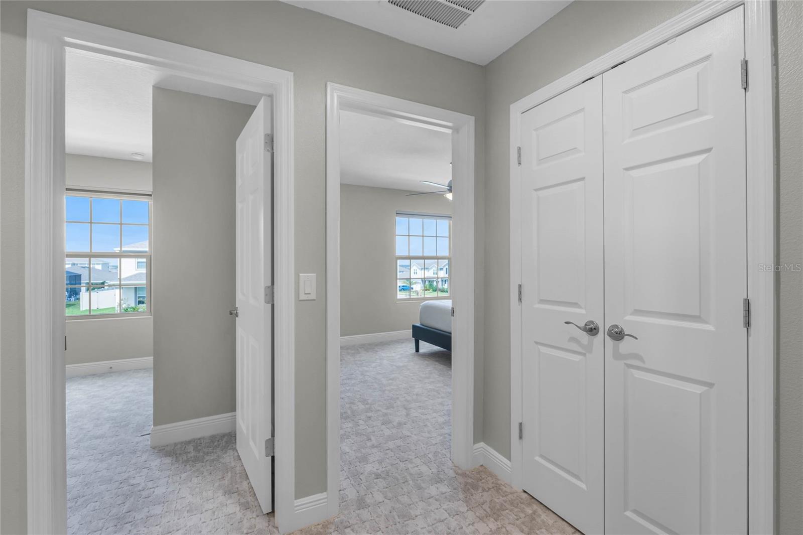 Why wait to build when you can own this stunning, better than new 4-bedroom, 2.5-bath home with an office and loft, perfectly situated on a private lot with no rear neighbors, backing up to a serene retention area. Lived in for less than a year, this home is in pristine condition and boasts over $100,000 in luxurious upgrades. From the moment you arrive, the beautiful stone front façade and paver driveway and walkway create an inviting first impression. The large, fenced backyard offers ample room to design your dream pool, with a paver walkway extending from the front yard to the gate. Step inside through the charming covered front porch, where luxury vinyl plank floors flow seamlessly throughout the main level. The spacious foyer features a drop zone/mudroom for convenient storage. The open-concept living space includes a bright and airy dining area, living room, and a chef’s dream kitchen. The kitchen is a true showpiece, with under-cabinet lighting, quartz countertops, stainless steel appliances, a subway-tile backsplash, and a large counter-height island with pendant lighting perfect for casual dining. The kitchen also offers a pantry with custom shelving and an additional storage closet, ideal for a second pantry. Adjacent to the living area, a dedicated office space provides a quiet retreat with views of the backyard. The first floor also includes a half bath and a functional laundry room equipped with built-in cabinetry and a quartz-topped folding station for added convenience. Upstairs, plush upgraded carpeting guides you to a spacious loft, perfect for additional living space. The primary suite is an impressive retreat, featuring a separate sitting area ideal for a home gym, nursery, or private relaxation space. The en-suite bath is beautifully appointed with a double-sink quartz vanity, a glass enclosed shower, and a large walk-in closet with a custom closet system. Additional upgrades in the primary suite include a Brondell Swash toilet seat for a spa-like experience. The remaining bedrooms are generously sized and share a well-appointed second full bath with a double quartz vanity and another upgraded toilet seat. Outside, enjoy the peaceful view from the screened lanai, overlooking the expansive backyard, which extends along the side of the house. The home is packed with modern conveniences, including smart features such as WiFi-enabled lighting, a doorbell camera, a smart thermostat, a WiFi garage door opener, and a front door keypad. Ceiling fans with remote controls are installed in every room, and thoughtful touches like nightlight outlets throughout the hallways and bathrooms add to the home’s charm. The garage and lanai floors have been upgraded with durable Polyaspartic floor coating, and the exterior is equipped with gutters for added functionality. Located just across from Lake Louisa State Park, this home is surrounded by natural beauty and offers easy access to outdoor adventures such as swimming, boating, hiking, and biking. The Ridgeview community, conveniently located on US 27 with nearby SR 429 access, is next to the upcoming Olympus Sports Project, promising future recreational opportunities.