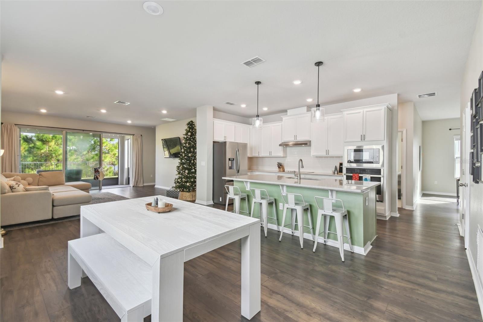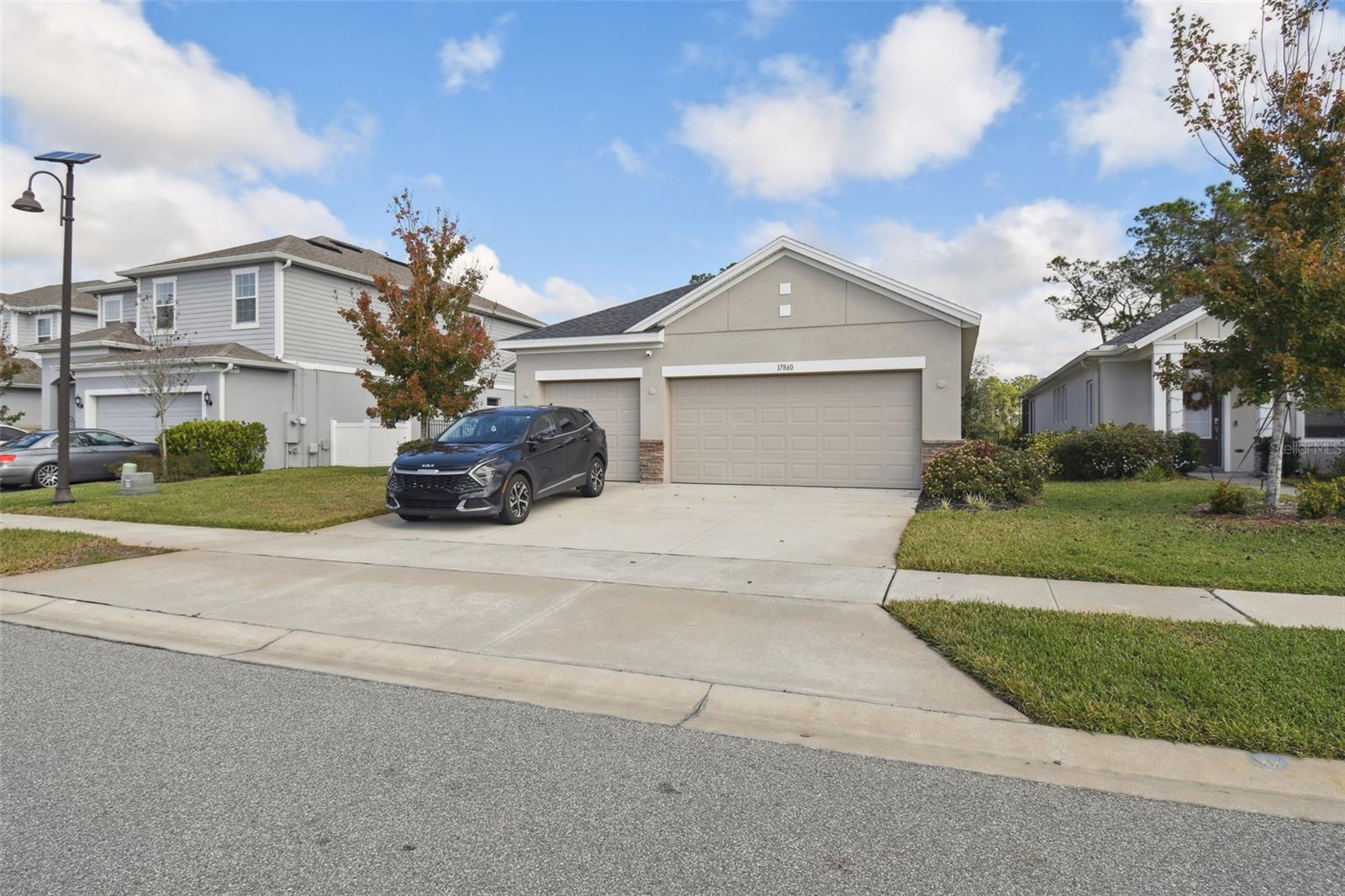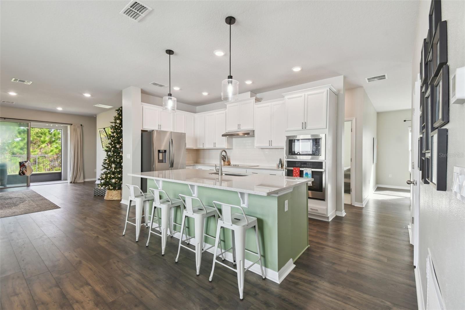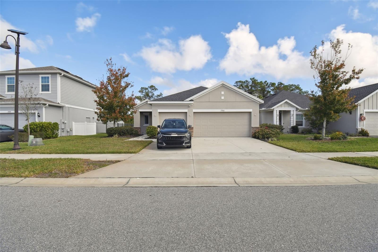This stunning 4-year-old home is nestled in the gated community of Serenoa Village, featuring a beautiful conservation lot with serene lake views. The property boasts large square footage, 4 bedrooms and 2 bathrooms, plus a bonus room perfect for use as a media room or office. The flexible second bonus room can serve as an office but is currently being used as a 4th bedroom. Inside, you'll enjoy an open floor plan with a modern kitchen, complete with stainless steel appliances, including a wall oven and microwave, and a large island with eat-in space—ideal for entertaining and family gatherings. The dining area flows seamlessly into the spacious living room, which opens onto a screened-in patio through sliding doors. The master bedroom features an en-suite bathroom and a generous walk-in closet. Bedrooms two and three are located off the bonus area and share the second bathroom. The home also includes a large 3-car garage, providing ample storage space and additional parking for up to 3 cars on the driveway. Relish in the tranquil lake views and catch the Disney fireworks in the evenings. Residents of Serenoa Village enjoy access to the Community Center, which offers amenities such as a 24-hour gym, pool, splash pad, playgrounds, walking trails, and scenic ponds. The community hosts various activities for residents and has low HOA fees that cover access to these excellent facilities and amenities. Located just 25 minutes from Walt Disney World, Serenoa Village is planned for future direct access to Highway 429 and Disney's Western Way, ensuring convenient transportation. The area is well-served by major stores and restaurants and is centrally located to both the east and west coasts.