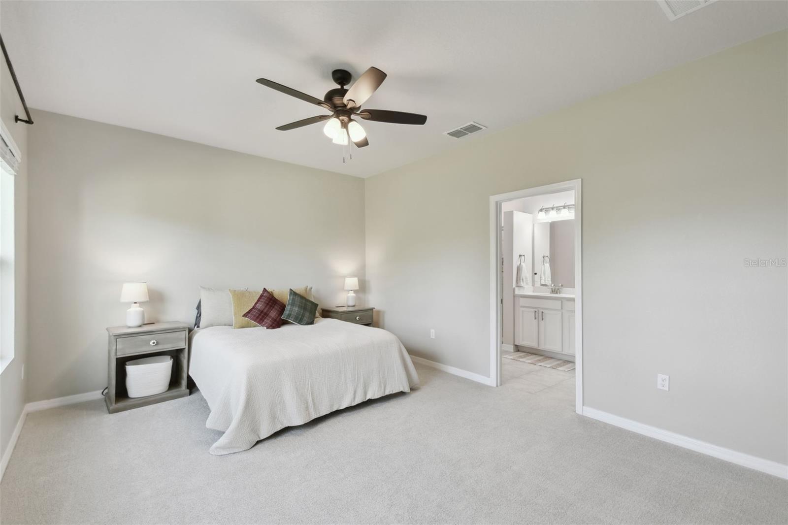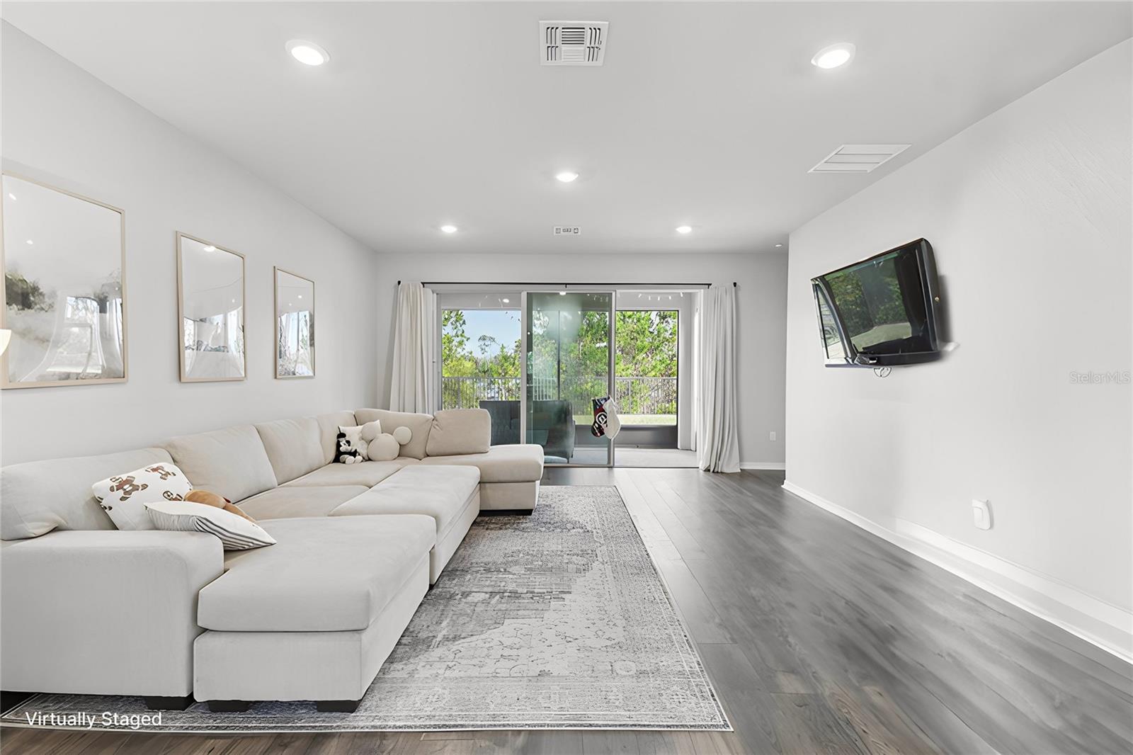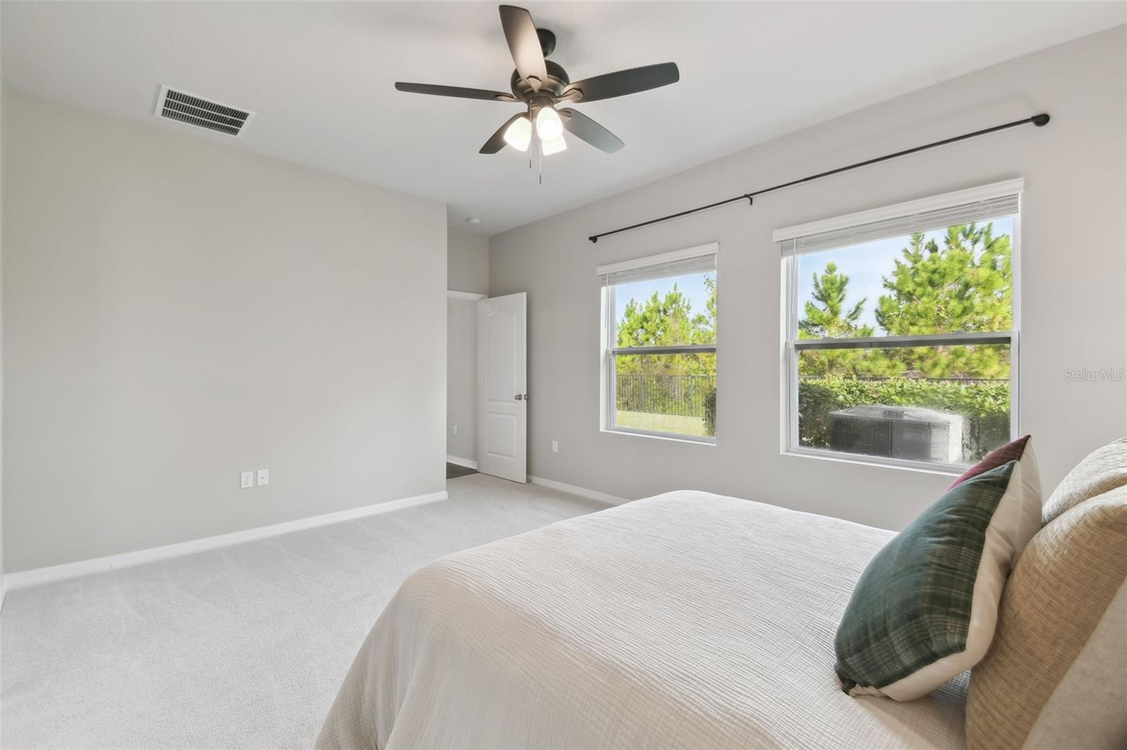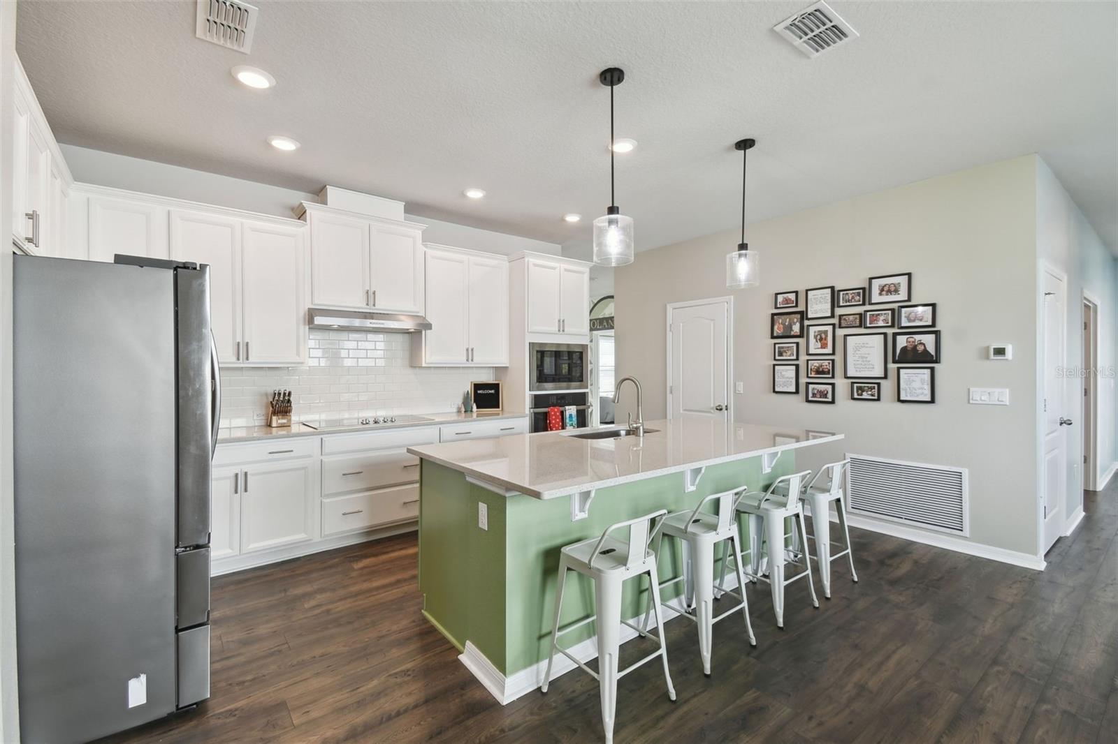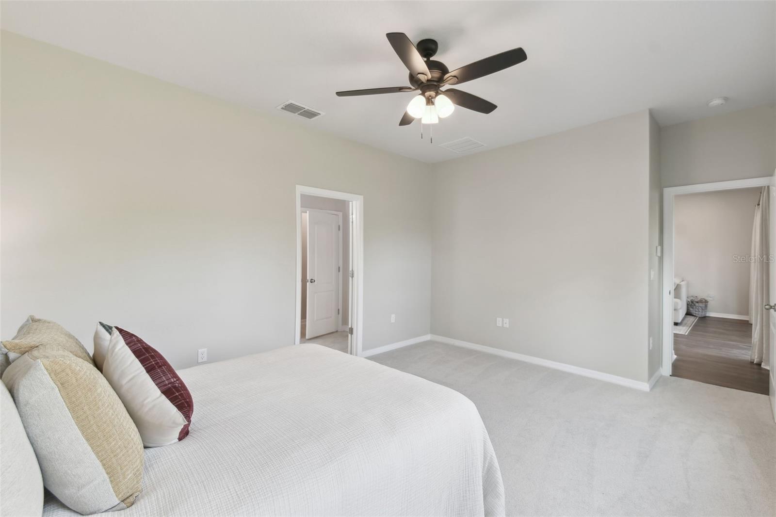 This stunning 4-year-old home is nestled in the gated community of Serenoa Village, featuring a beautiful conservation lot with serene lake views. The property boasts large square footage, 4 bedrooms and 2 bathrooms, plus a bonus room perfect for use as a media room or office. The flexible second bonus room can serve as an office but is currently being used as a 4th bedroom. Inside, you'll enjoy an open floor plan with a modern kitchen, complete with stainless steel appliances, including a wall oven and microwave, and a large island with eat-in space—ideal for entertaining and family gatherings. The dining area flows seamlessly into the spacious living room, which opens onto a screened-in patio through sliding doors. The master bedroom features an en-suite bathroom and a generous walk-in closet. Bedrooms two and three are located off the bonus area and share the second bathroom. The home also includes a large 3-car garage, providing ample storage space and additional parking for up to 3 cars on the driveway. Relish in the tranquil lake views and catch the Disney fireworks in the evenings. Residents of Serenoa Village enjoy access to the Community Center, which offers amenities such as a 24-hour gym, pool, splash pad, playgrounds, walking trails, and scenic ponds. The community hosts various activities for residents and has low HOA fees that cover access to these excellent facilities and amenities. Located just 25 minutes from Walt Disney World, Serenoa Village is planned for future direct access to Highway 429 and Disney's Western Way, ensuring convenient transportation. The area is well-served by major stores and restaurants and is centrally located to both the east and west coasts.