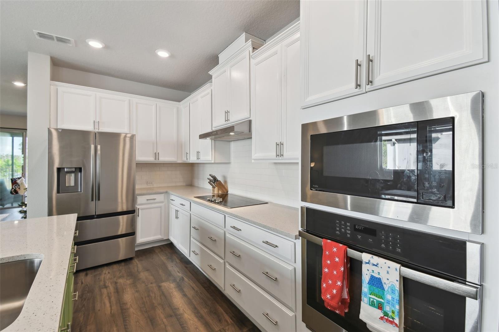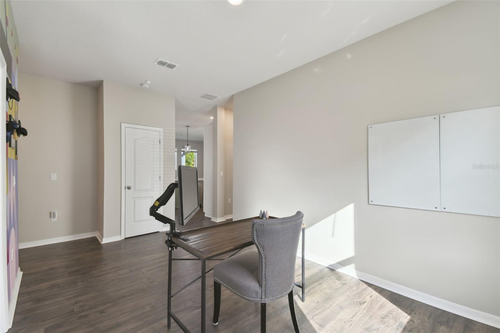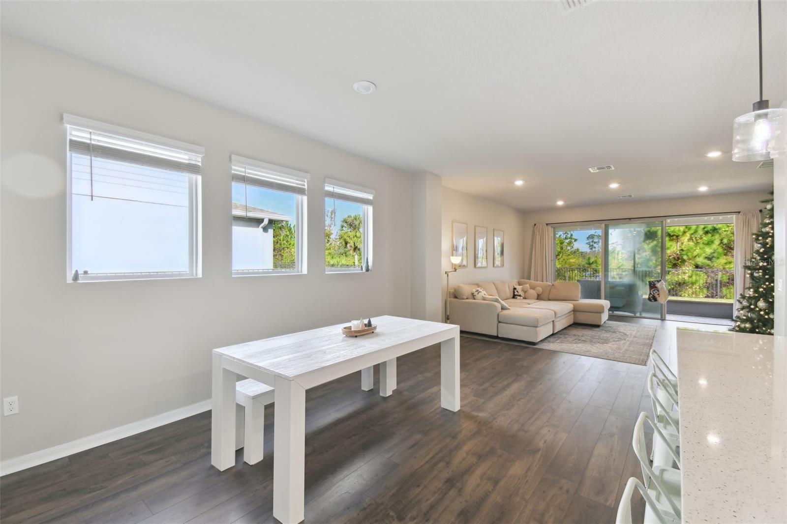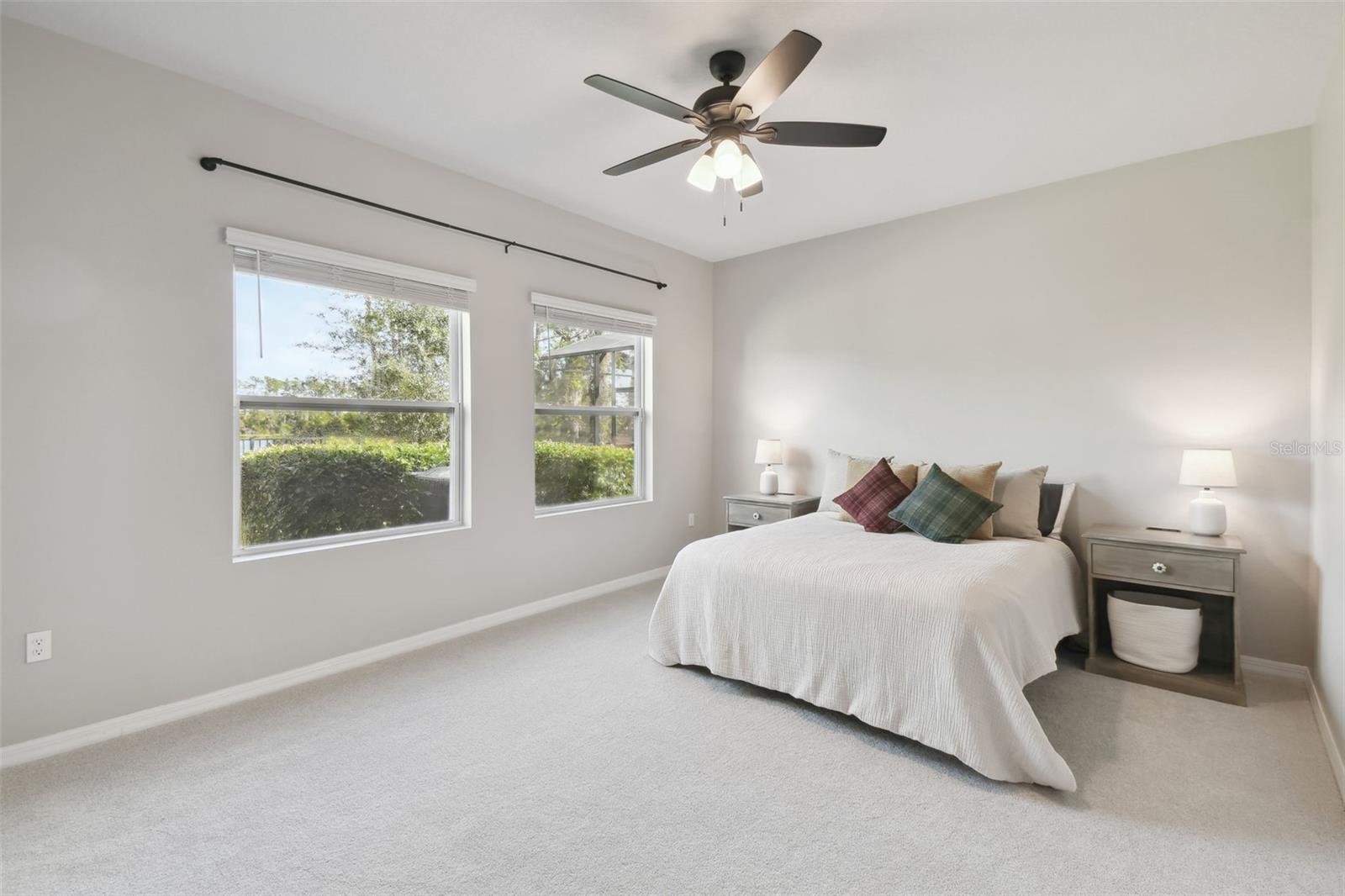 This stunning 4-year-old home is nestled in the gated community of Serenoa Village, featuring a beautiful conservation lot with serene lake views. The property boasts large square footage, 4 bedrooms and 2 bathrooms, plus a bonus room perfect for use as a media room or office. The flexible second bonus room can serve as an office but is currently being used as a 4th bedroom. Inside, you'll enjoy an open floor plan with a modern kitchen, complete with stainless steel appliances, including a wall oven and microwave, and a large island with eat-in space—ideal for entertaining and family gatherings. The dining area flows seamlessly into the spacious living room, which opens onto a screened-in patio through sliding doors. The master bedroom features an en-suite bathroom and a generous walk-in closet. Bedrooms two and three are located off the bonus area and share the second bathroom. The home also includes a large 3-car garage, providing ample storage space and additional parking for up to 3 cars on the driveway. Relish in the tranquil lake views and catch the Disney fireworks in the evenings. Residents of Serenoa Village enjoy access to the Community Center, which offers amenities such as a 24-hour gym, pool, splash pad, playgrounds, walking trails, and scenic ponds. The community hosts various activities for residents and has low HOA fees that cover access to these excellent facilities and amenities. Located just 25 minutes from Walt Disney World, Serenoa Village is planned for future direct access to Highway 429 and Disney's Western Way, ensuring convenient transportation. The area is well-served by major stores and restaurants and is centrally located to both the east and west coasts.