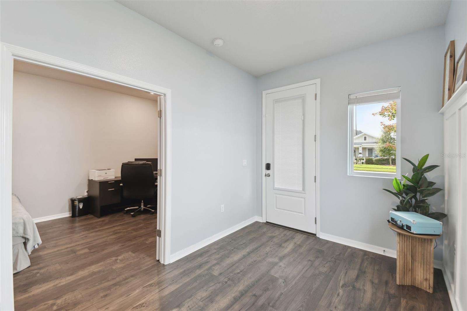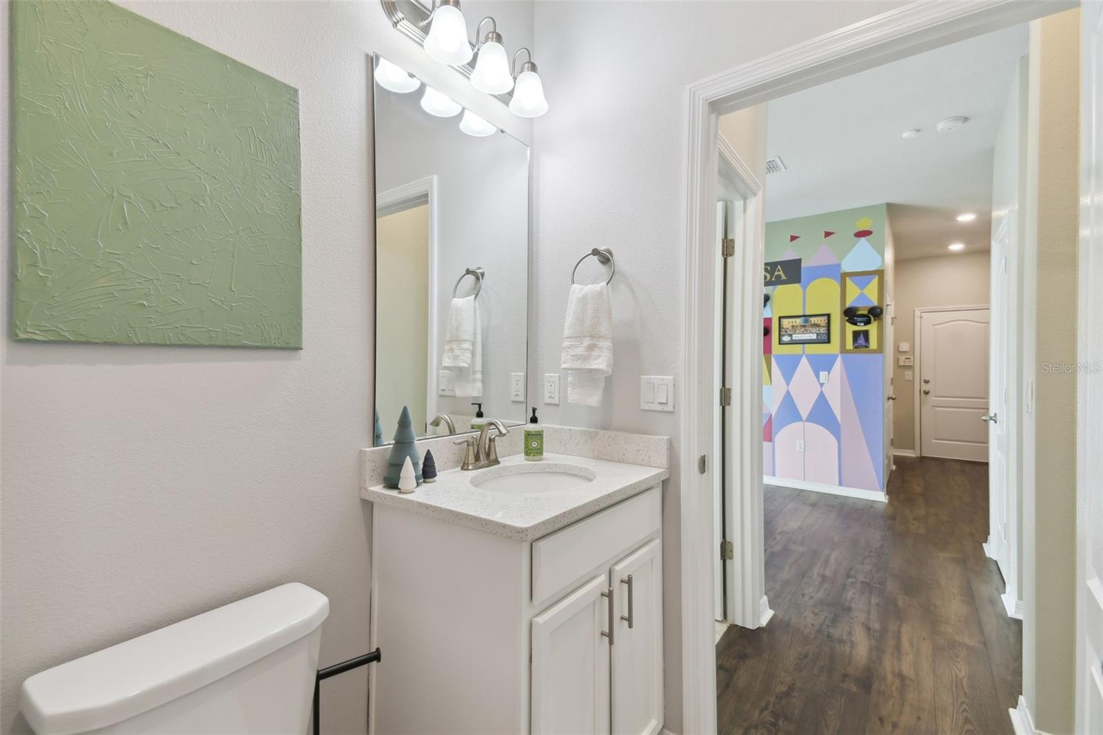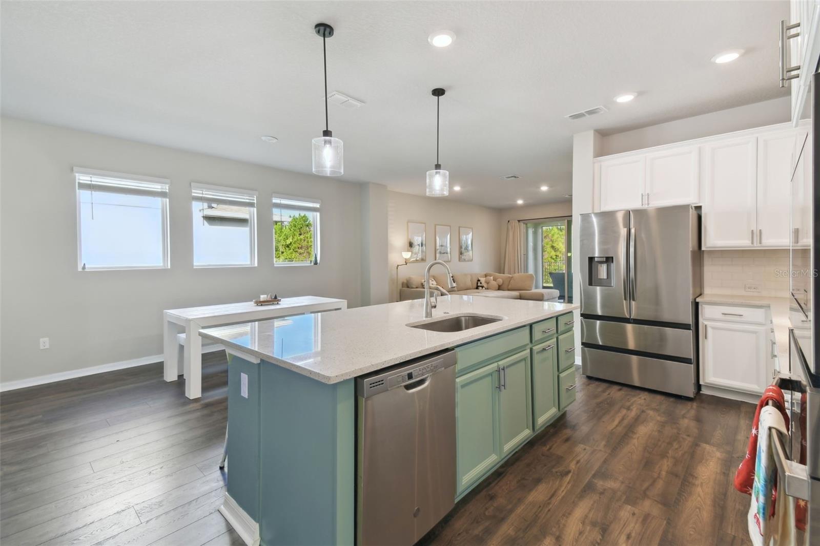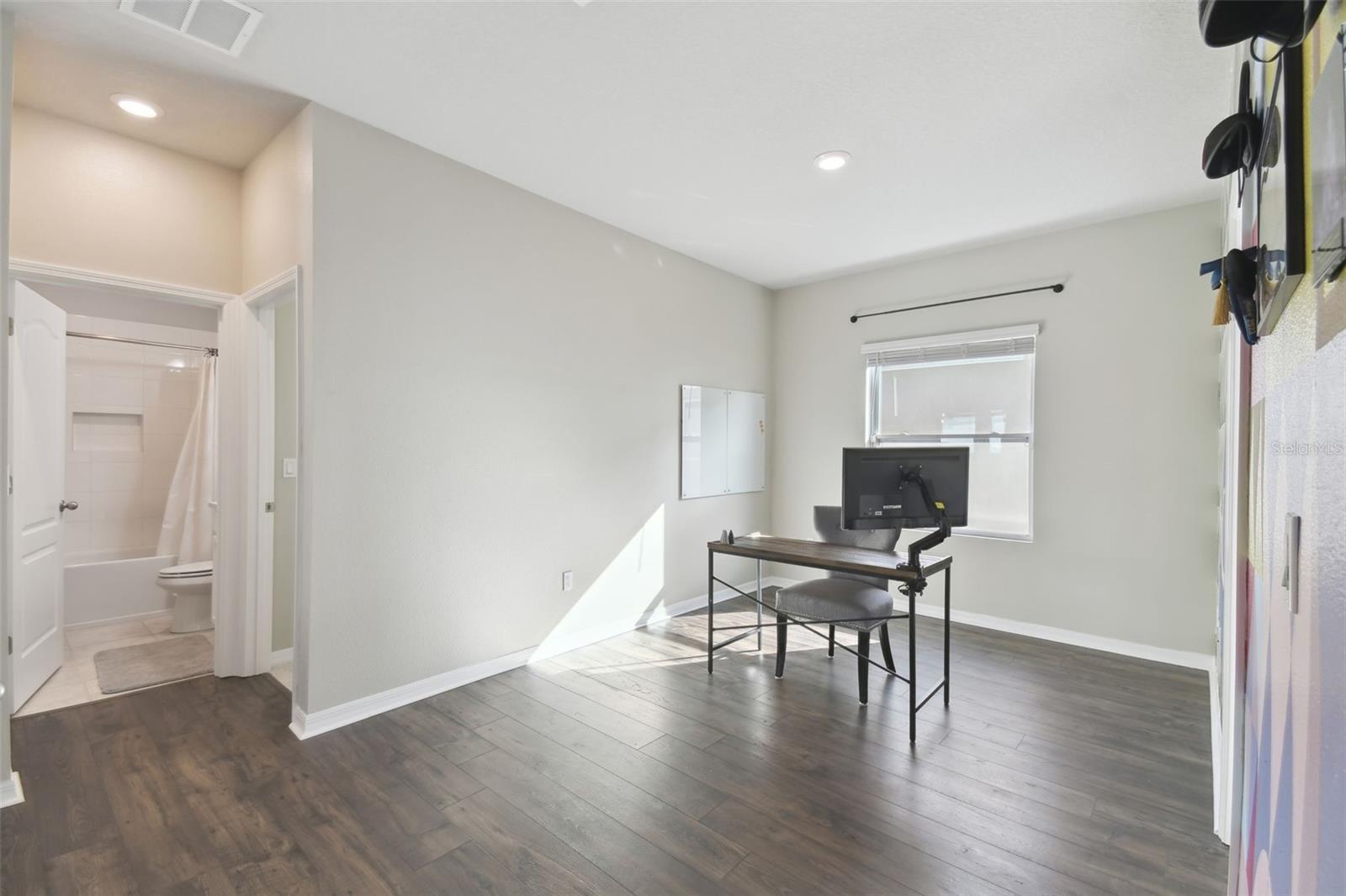 This stunning 4-year-old home is nestled in the gated community of Serenoa Village, featuring a beautiful conservation lot with serene lake views. The property boasts large square footage, 4 bedrooms and 2 bathrooms, plus a bonus room perfect for use as a media room or office. The flexible second bonus room can serve as an office but is currently being used as a 4th bedroom. Inside, you'll enjoy an open floor plan with a modern kitchen, complete with stainless steel appliances, including a wall oven and microwave, and a large island with eat-in space—ideal for entertaining and family gatherings. The dining area flows seamlessly into the spacious living room, which opens onto a screened-in patio through sliding doors. The master bedroom features an en-suite bathroom and a generous walk-in closet. Bedrooms two and three are located off the bonus area and share the second bathroom. The home also includes a large 3-car garage, providing ample storage space and additional parking for up to 3 cars on the driveway. Relish in the tranquil lake views and catch the Disney fireworks in the evenings. Residents of Serenoa Village enjoy access to the Community Center, which offers amenities such as a 24-hour gym, pool, splash pad, playgrounds, walking trails, and scenic ponds. The community hosts various activities for residents and has low HOA fees that cover access to these excellent facilities and amenities. Located just 25 minutes from Walt Disney World, Serenoa Village is planned for future direct access to Highway 429 and Disney's Western Way, ensuring convenient transportation. The area is well-served by major stores and restaurants and is centrally located to both the east and west coasts.