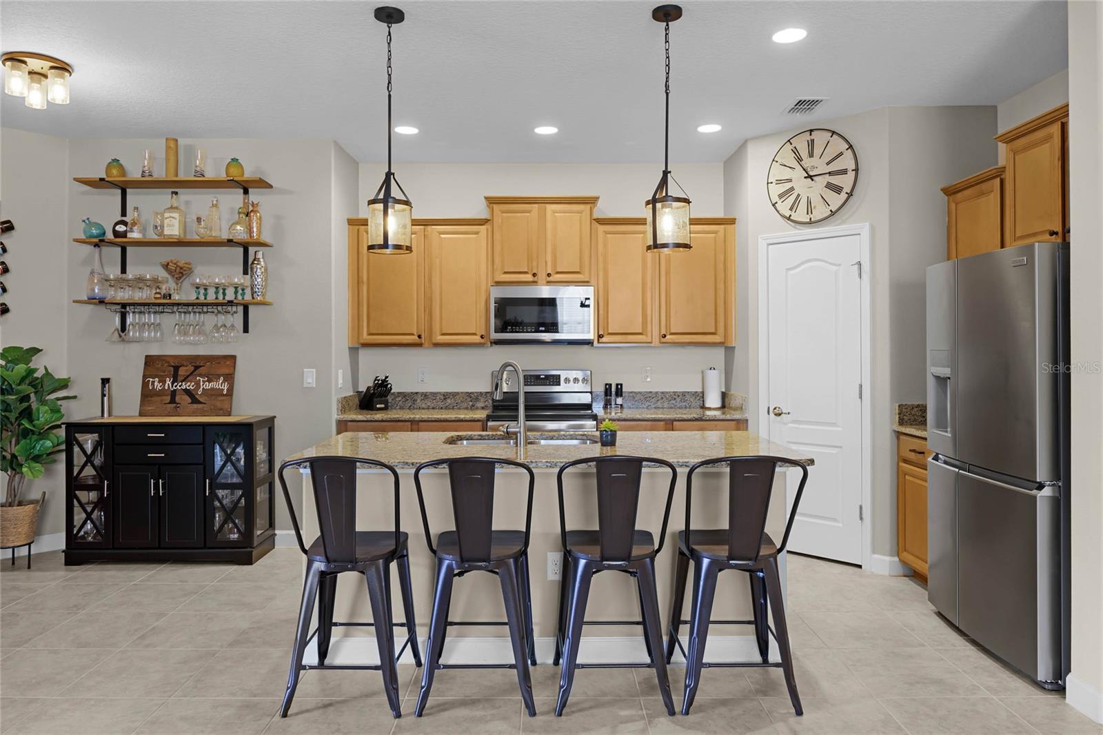 Sought after community of Heritage Hills a 55 plus community in beautiful Clermont! This popular Hamilton II model has 3 bedrooms with 3 full bathrooms plus an office. Fabulous open floor plan concept to include the kitchen, dining room and family room overlooking the screened lanai. The kitchen has all new upgraded appliances, New garbage disposal, upgraded hardware and additional cabinets and granite countertops added to the breakfast nook! There is a walk in pantry, pull out shelving, double oven, built in garbage and recycle bins, granite countertops and upgraded pendant lights. The HVAC system was replaced in 2023! Exterior freshly painted in 2024! Upgraded ceiling fans and light fixtures. Nice split bedroom plan which is great for guests and privacy. One of the bedrooms is an ensuite with it's own bathroom. The 2 car garage features a hanging storage rack and the laundry room washer and dryer stay! Tile throughout the home with carpet in the bedrooms. The primary suite has 2 walk in closets with closet systems. The primary bath features a tiled walk in shower, linen closet and dual sink granite vanity. Drapes and rods in the family room and dining room stay! New carriage lights with photo cell for dusk to dawn automatically turn on and off. Smart thermostat! Nice landscaping and whole house gutters! Heritage Hills amenities include a heated pool and spa, pickle ball, tennis, basketball, bocce ball, shuffleboard, clubhouse with planned activities, lots of clubs to join, fitness center, art and crafts room, billiard room, card room and ballroom for holding events. Exterior is painted every 5-6 years and yard maintenance is included in the HOA fee! There is a 5 mile walking trail around the community. Call today for your private showing!