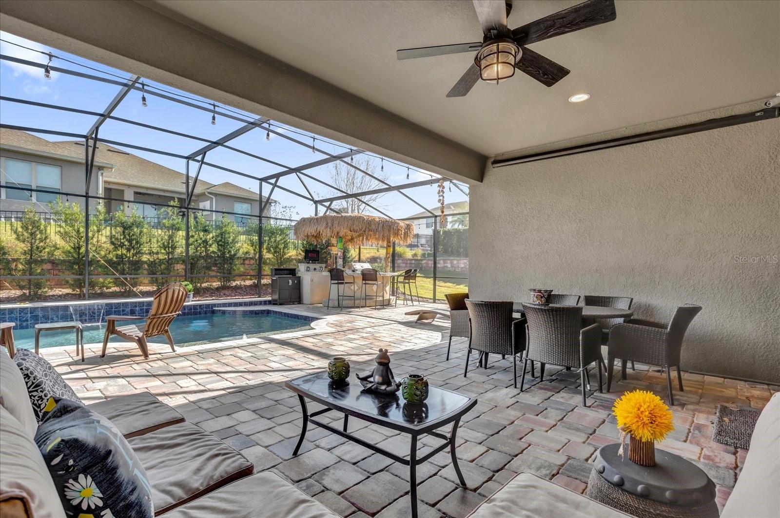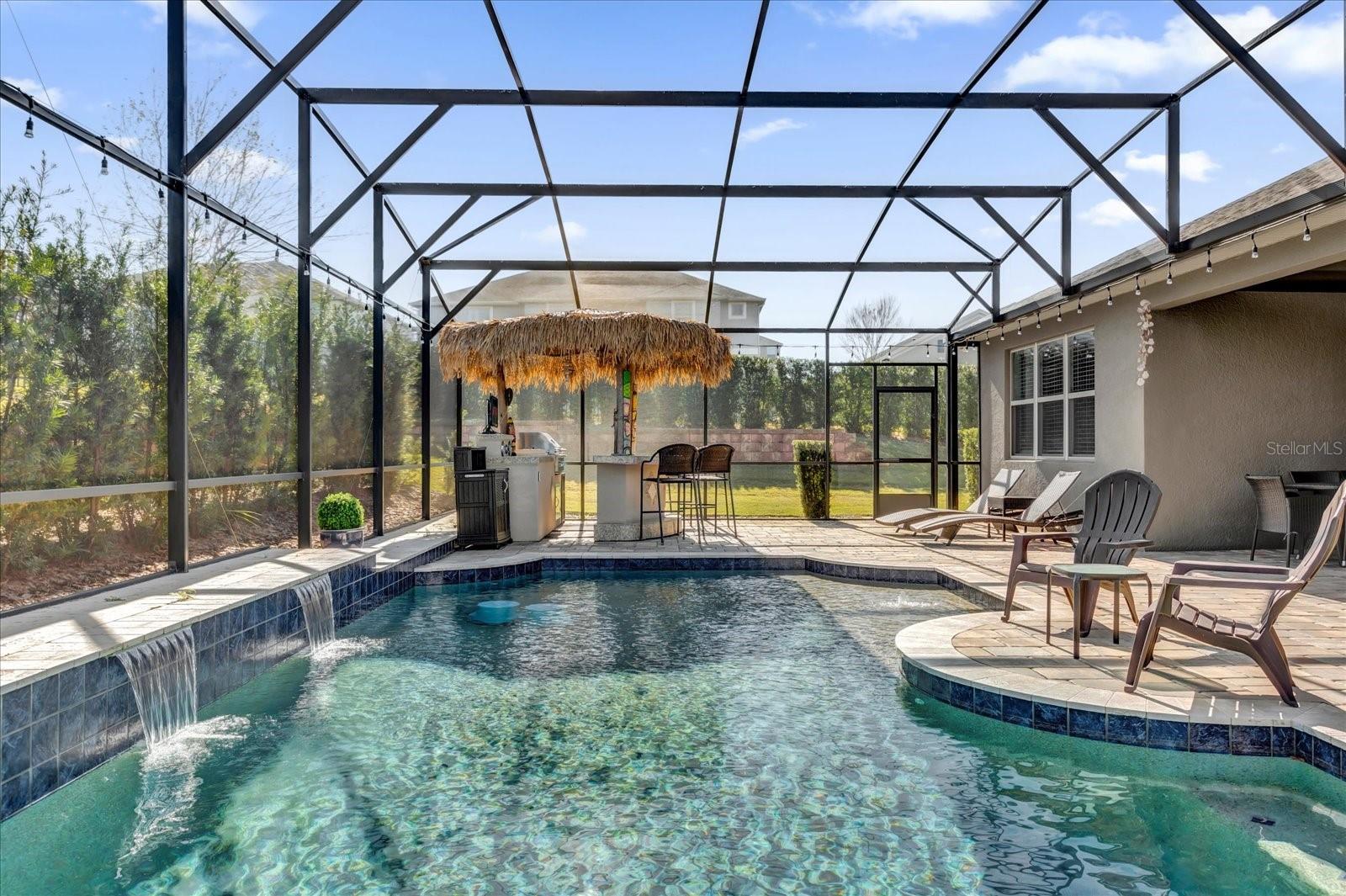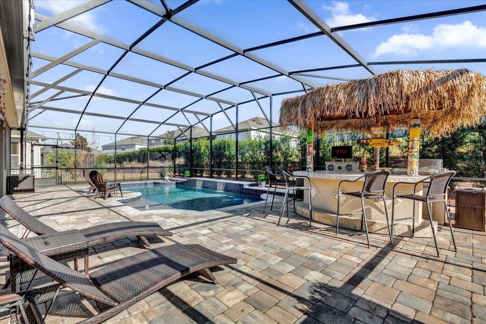 Welcome to 943 Gracie Ridge Street. This stunning home offers modern luxury with a beautifully designed saltwater pool, added in 2020, complete with a Paradise Grill entertainment area perfect for hosting gatherings. The open-concept layout features spacious living areas filled with natural light, while the gourmet kitchen boasts elegant finishes and ample storage. The backyard oasis provides a perfect blend of relaxation and entertainment with lush landscaping and a fenced yard for added privacy. Located in a desirable community, this property is close to top-rated schools, shopping, and dining, making it an exceptional place to call home. Don't miss the opportunity to experience resort-style living in Clermont!