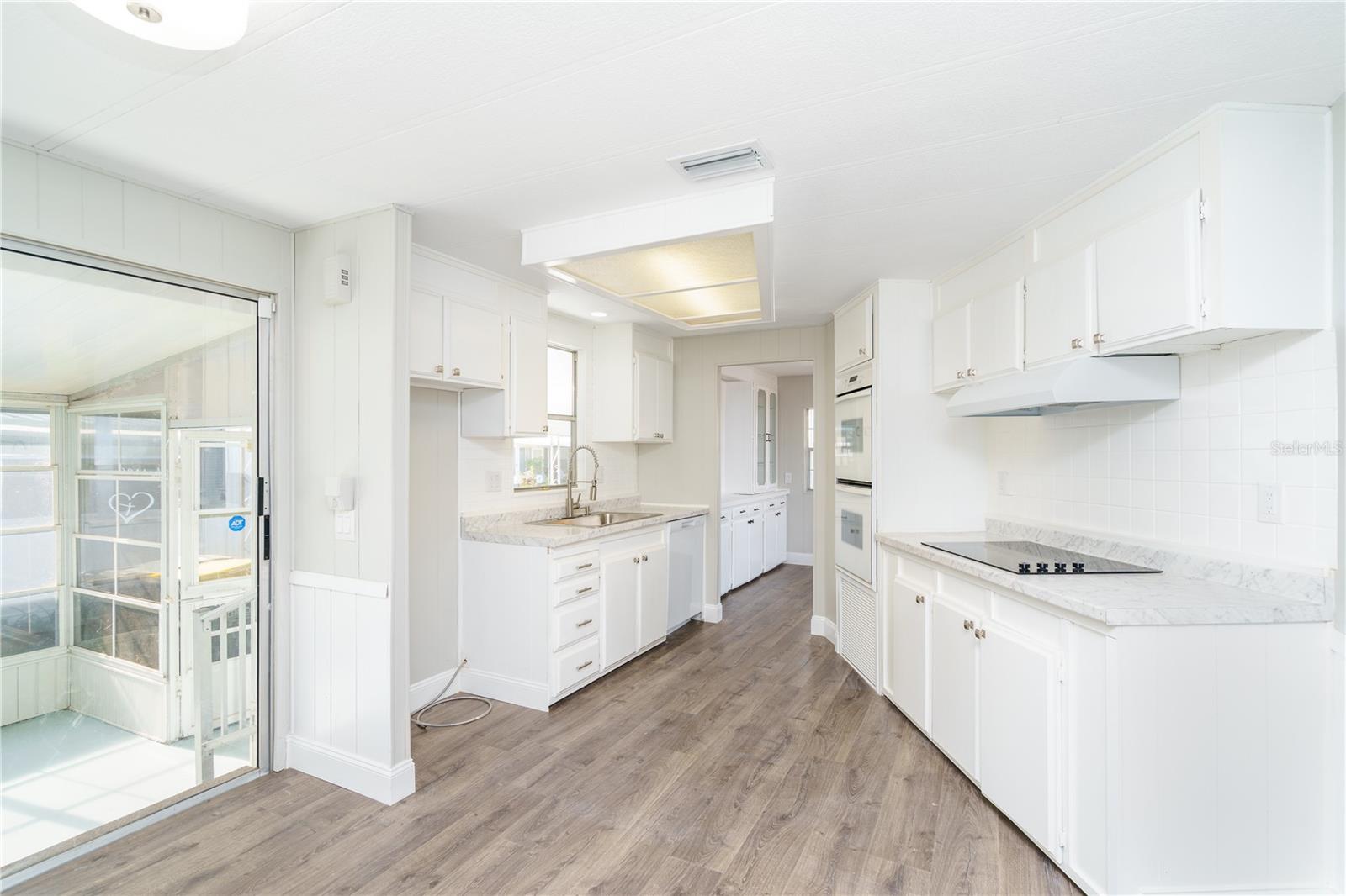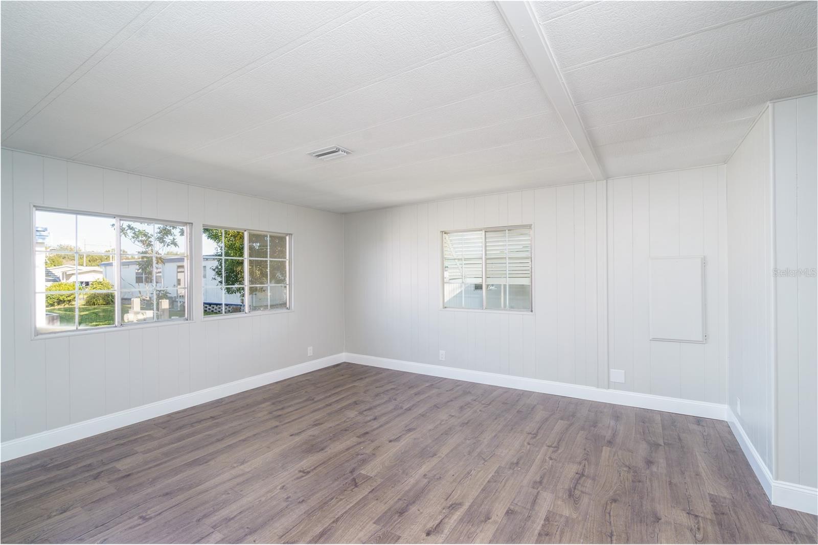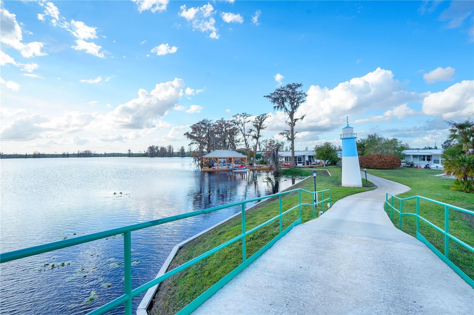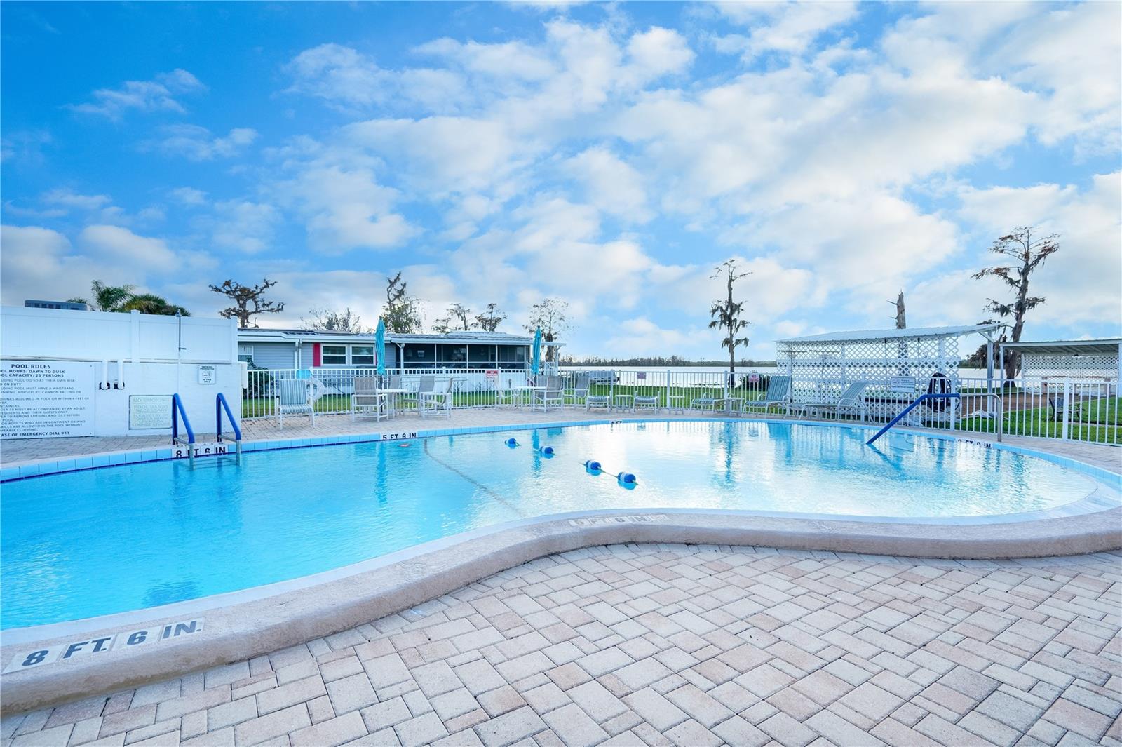Charming renovated mobile home in lakefront Emerald Lakes Co-op 55-plus community. This home is a beautiful and affordable way to enjoy the Florida lake lifestyle. It has a new sub floor and gorgeous luxury vinyl plank flooring throughout. Fresh, light contemporary paint throughout entire home makes it feel and smell open and airy. The open floor plan is fabulous for entertaining. Large living and dining areas with a built-in hutch/buffet add to the charm of the home. The kitchen features ample cabinetry, a double oven and sleek countertops, and also has room for a small breakfast table. The primary bedroom is a great size with a walk -in closet. Primary bath has updated fixtures and a walk-in shower. The guest bedroom is also ample, and the guest bath has gorgeous, modern fixtures and vanity. The Florida room is a fantastic place to sit, enjoy a cocktail and read a book. It is so bright with all the windows. There is a laundry and storage room with washer and dryer included. A large carport to shelter your vehicle from the Florida sun. Co-Op property share included with benefit from ownership that includes a share in the property, enhancing your investment in this desirable community. With the share comes a lower HOA fee which includes lawn care, cable, water, sewer and all amenities. Emerald Lakes is a serene retirement community comprising only 211 homes. Residents have access to a variety of amenities and activities, including community pool, clubhouse, library, pool table, dock, boat slips for rent, boat ramp to chain of lakes. The community is in the heart of Clermont. Just minutes from vibrant downtown Clermont area with lakefront restaurants, bike trail, pubs, quaint shops, waterfront park and more. See this beautiful move-in ready home and start enjoying life!