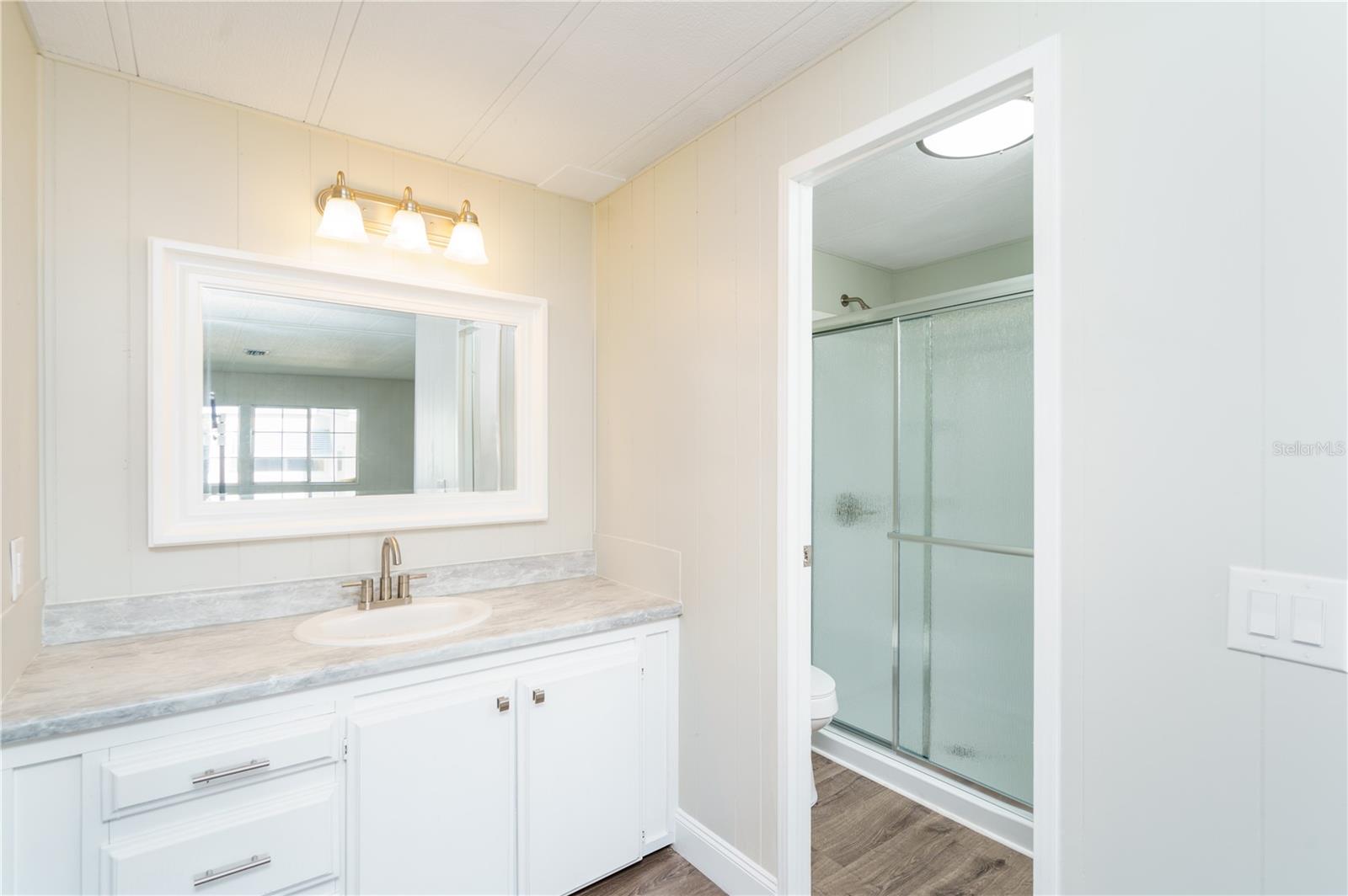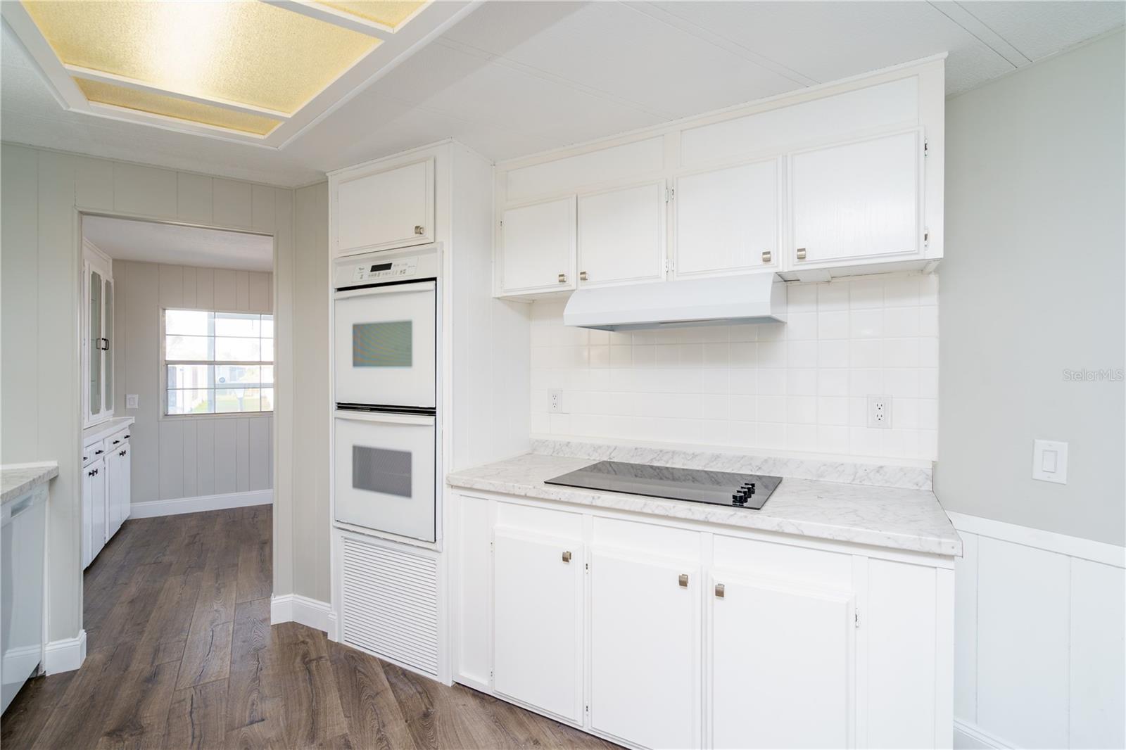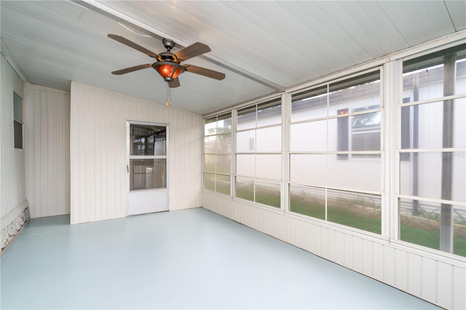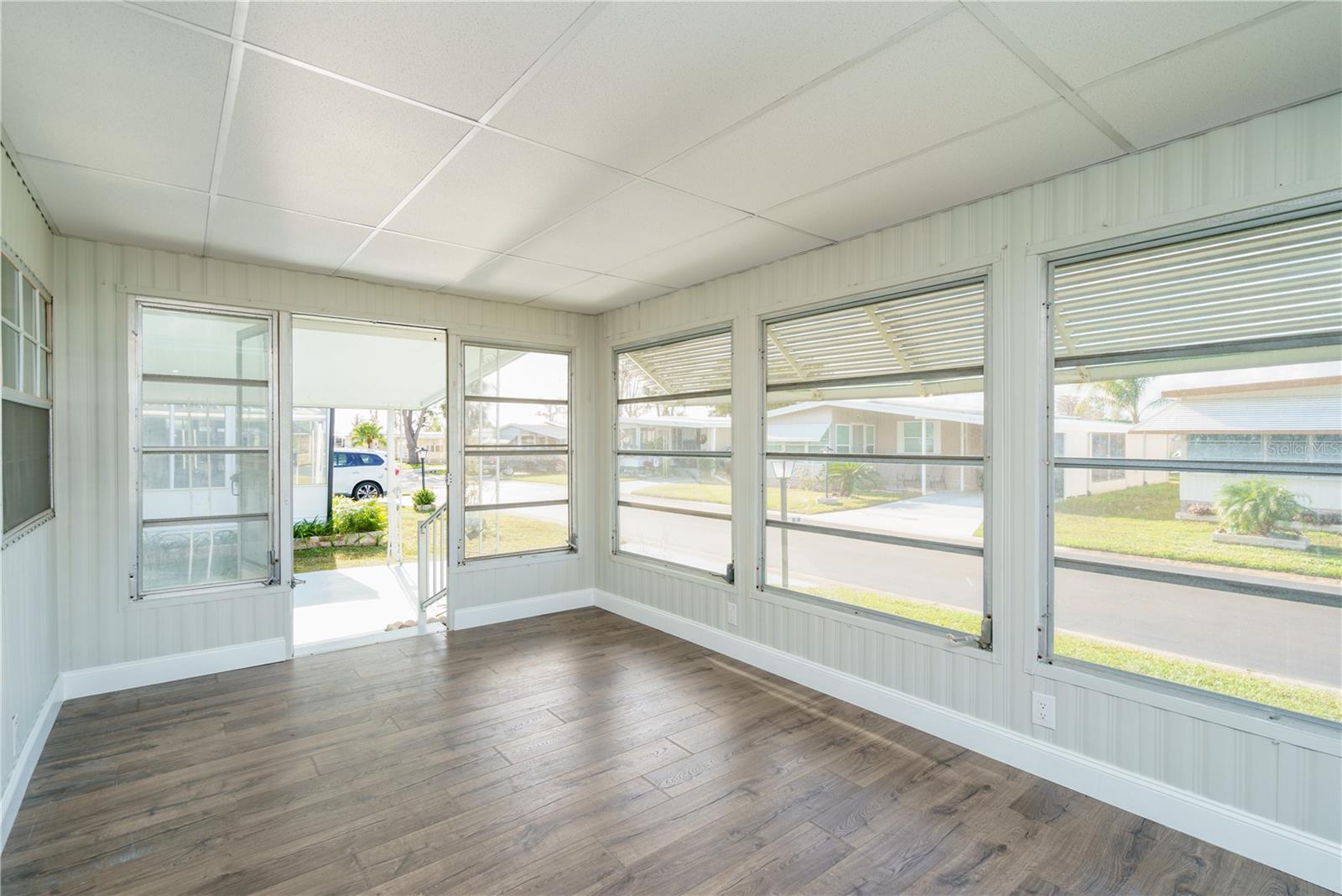 Charming renovated mobile home in lakefront Emerald Lakes Co-op 55-plus community. This home is a beautiful and affordable way to enjoy the Florida lake lifestyle. It has a new sub floor and gorgeous luxury vinyl plank flooring throughout. Fresh, light contemporary paint throughout entire home makes it feel and smell open and airy. The open floor plan is fabulous for entertaining. Large living and dining areas with a built-in hutch/buffet add to the charm of the home. The kitchen features ample cabinetry, a double oven and sleek countertops, and also has room for a small breakfast table. The primary bedroom is a great size with a walk -in closet. Primary bath has updated fixtures and a walk-in shower. The guest bedroom is also ample, and the guest bath has gorgeous, modern fixtures and vanity. The Florida room is a fantastic place to sit, enjoy a cocktail and read a book. It is so bright with all the windows. There is a laundry and storage room with washer and dryer included. A large carport to shelter your vehicle from the Florida sun. Co-Op property share included with benefit from ownership that includes a share in the property, enhancing your investment in this desirable community. With the share comes a lower HOA fee which includes lawn care, cable, water, sewer and all amenities. Emerald Lakes is a serene retirement community comprising only 211 homes. Residents have access to a variety of amenities and activities, including community pool, clubhouse, library, pool table, dock, boat slips for rent, boat ramp to chain of lakes. The community is in the heart of Clermont. Just minutes from vibrant downtown Clermont area with lakefront restaurants, bike trail, pubs, quaint shops, waterfront park and more. See this beautiful move-in ready home and start enjoying life!