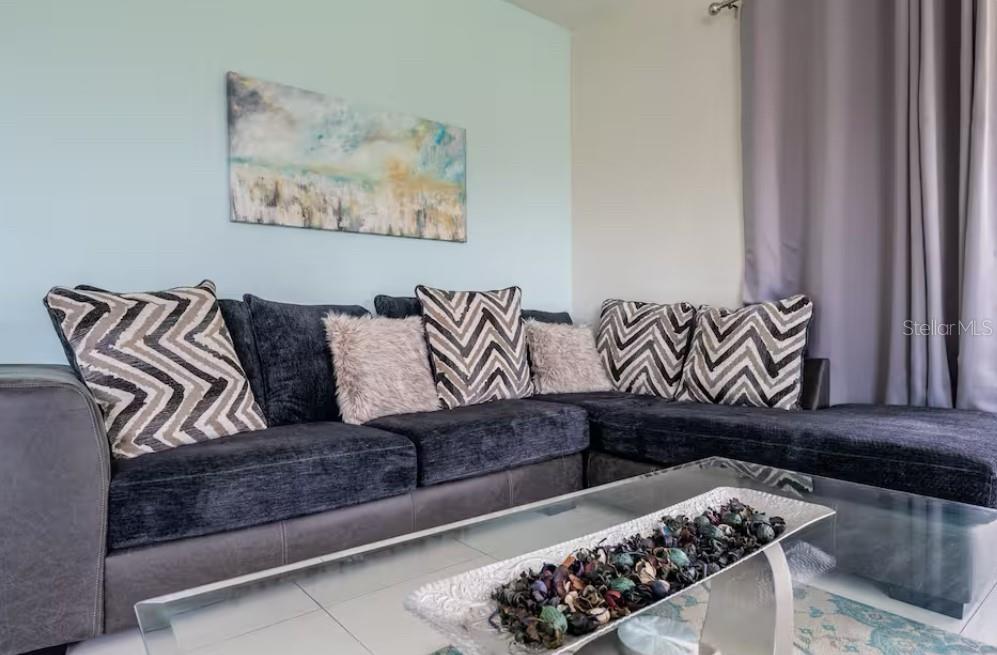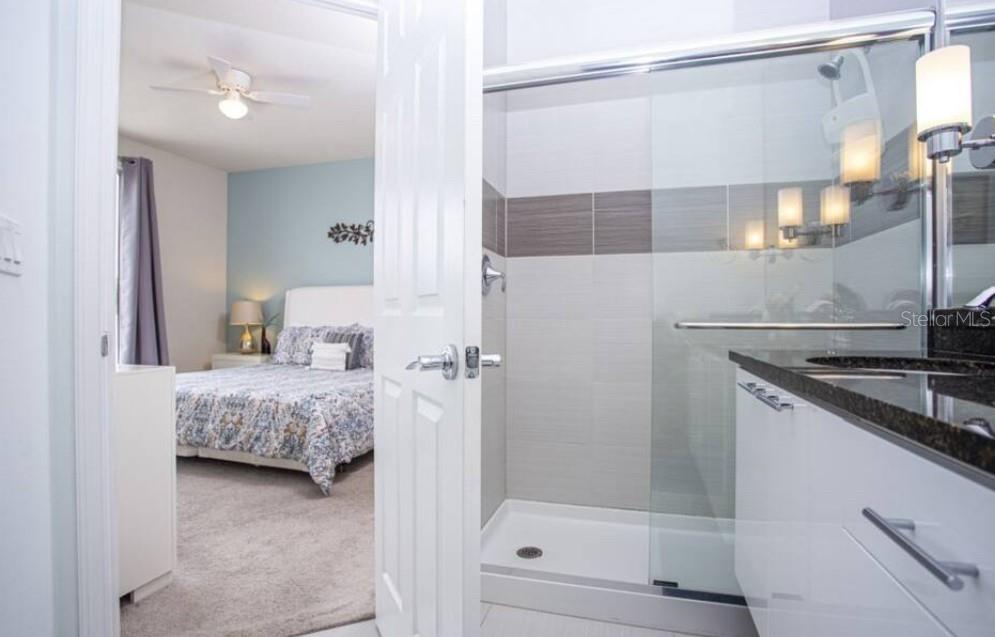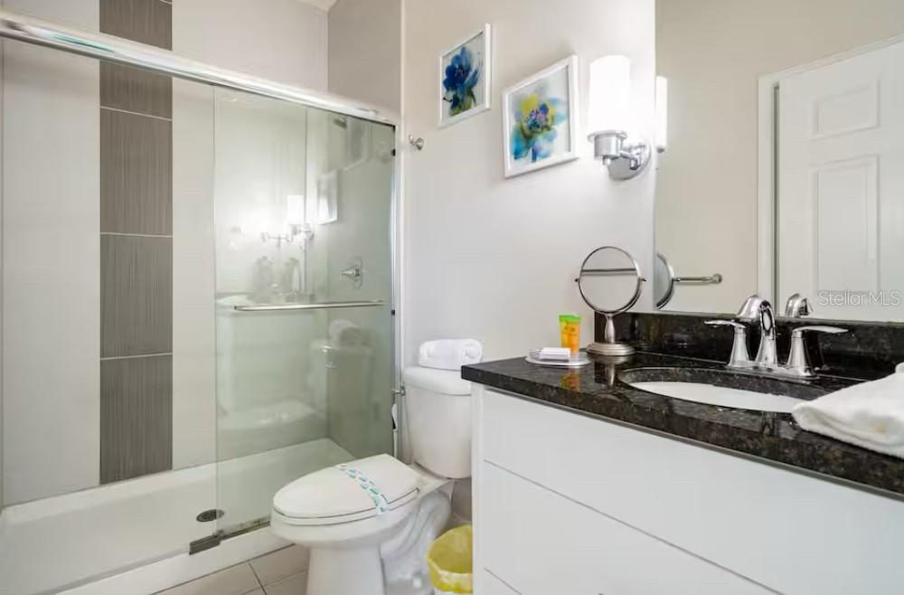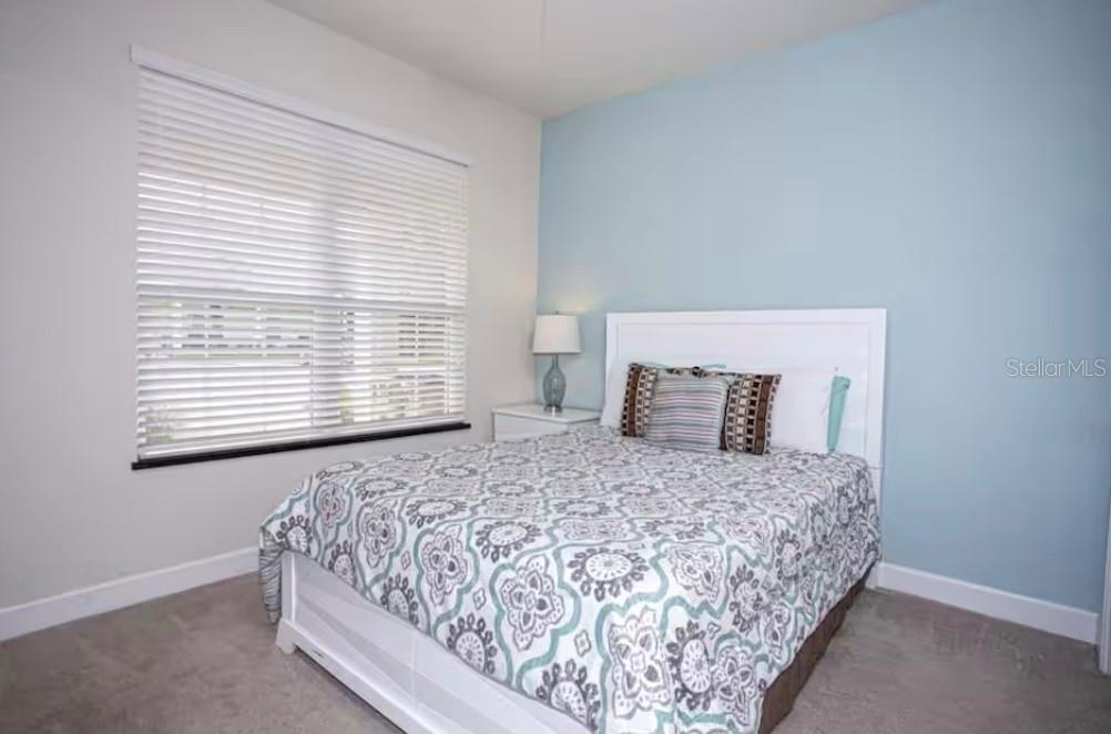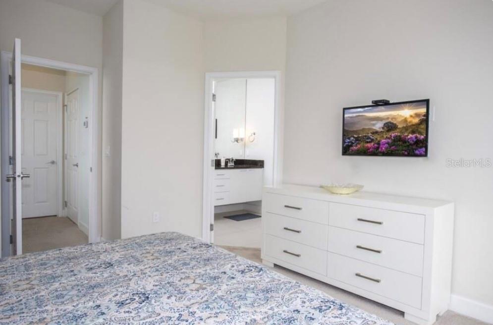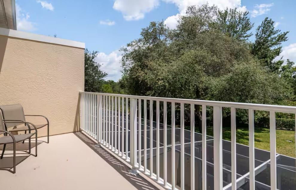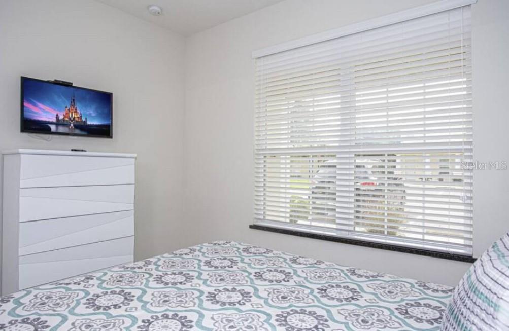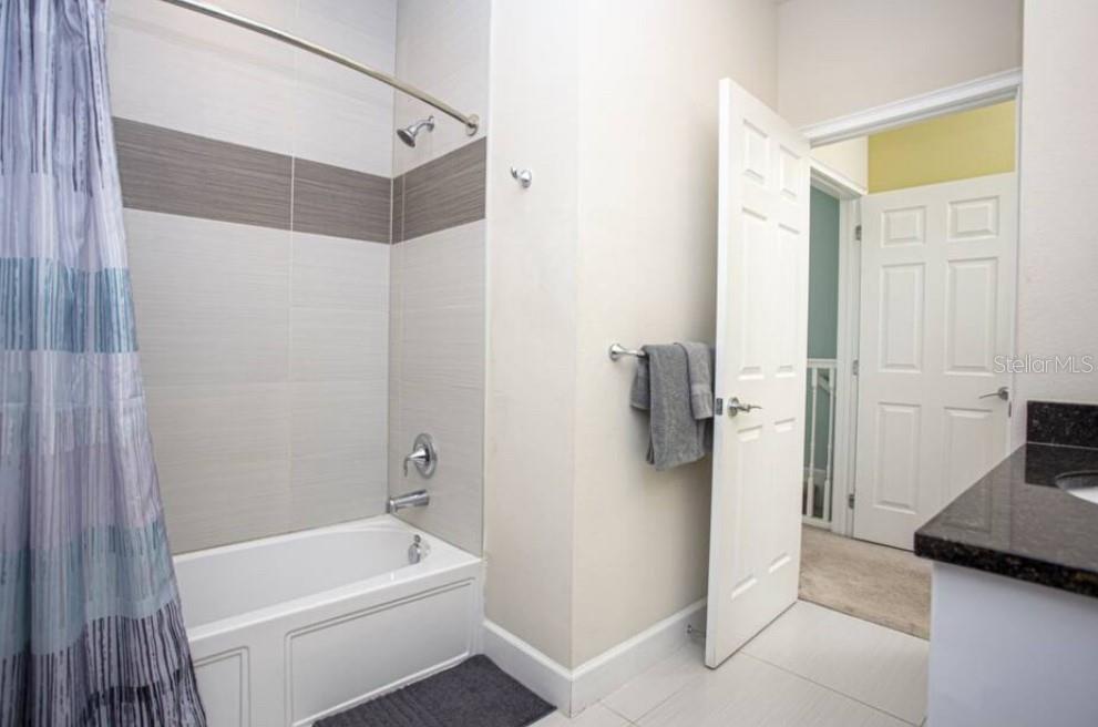 FULLY FURNISHED END UNIT 3 BED/3 FULL BATH Townhome in the Serenity community, located across the street from the clubhouse community. Great open floor, well-lit home with contemporary finishes. The living areas are adorned with tile flooring, and the kitchen with a granite island, a dual under-mount sink, and STAINLESS STEEL APPLIANCES. The ground floor offers a bedroom with easy access and a full bathroom that connects to both the bedroom and the foyer. The open-plan kitchen, dining, and family room extend to a SCREENED PRIVATE POOL via sliding glass doors. Upstairs, the master suite features a balcony with views of the natural surroundings and a bathroom with a granite double vanity. A very spacious third bedroom completes this amazing townhome. A conveniently placed laundry room is also located on the upper floor between bedrooms. This home is zoned for short-term or long-term rental. Clubhouse offers fitness center, game room, hot tub, and a resort style pool. Schedule a showing today!