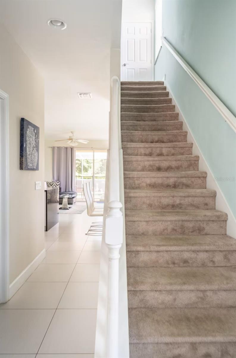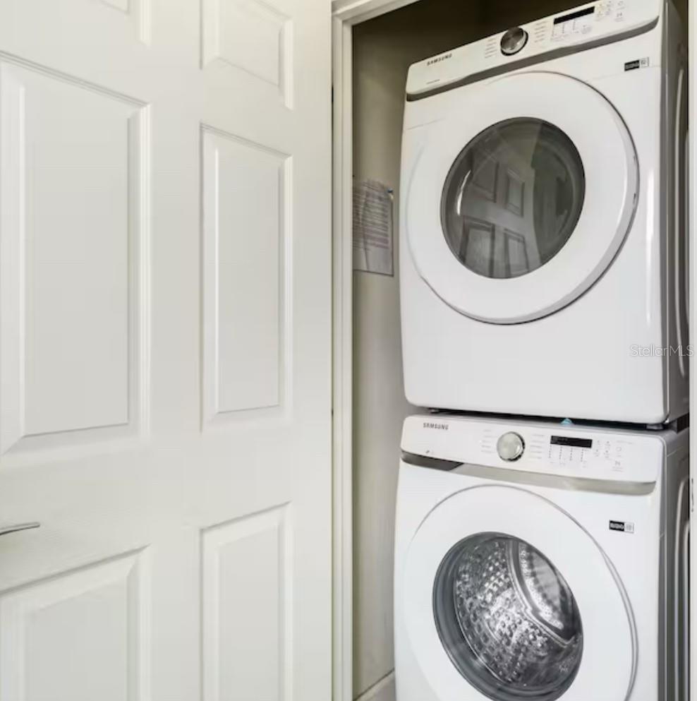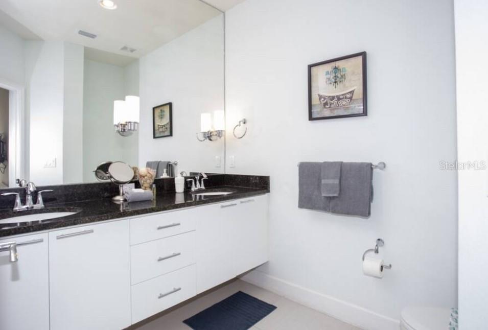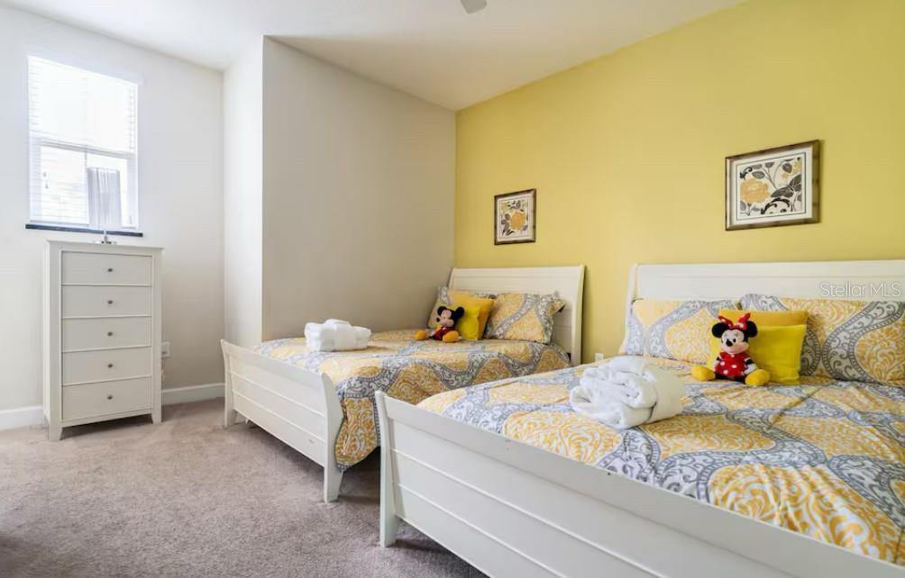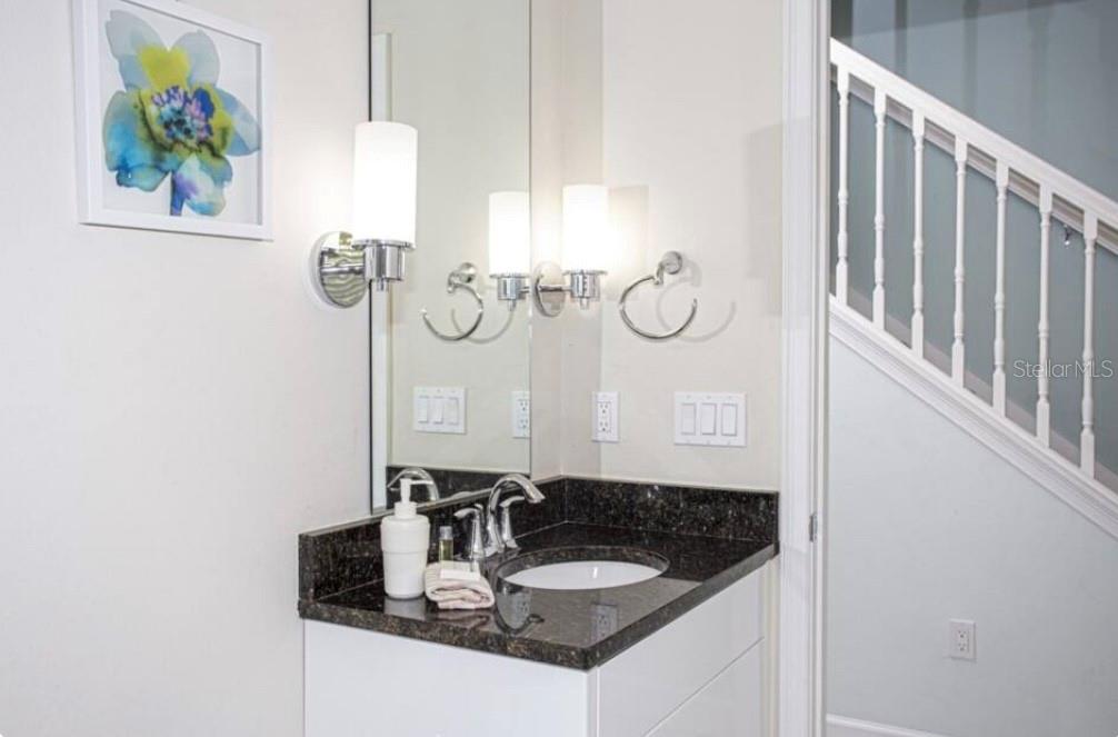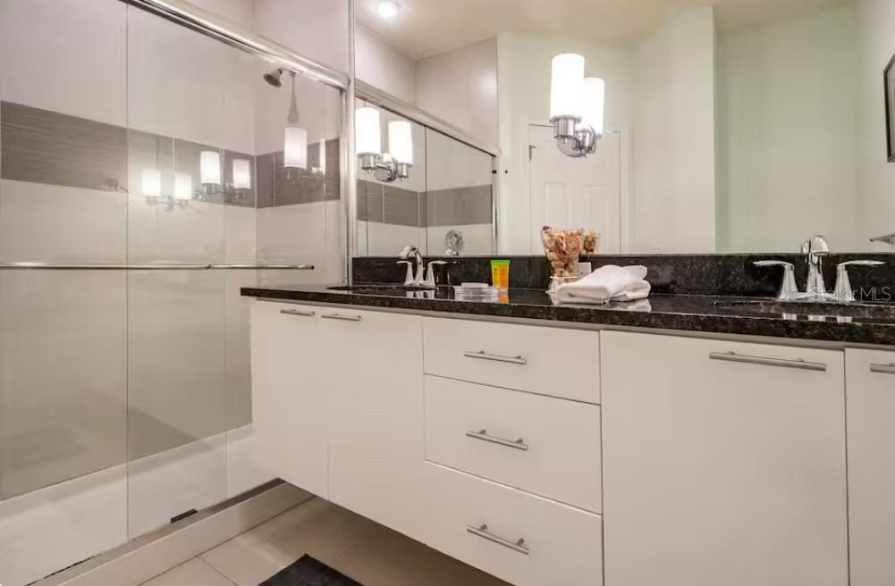 FULLY FURNISHED END UNIT 3 BED/3 FULL BATH Townhome in the Serenity community, located across the street from the clubhouse community. Great open floor, well-lit home with contemporary finishes. The living areas are adorned with tile flooring, and the kitchen with a granite island, a dual under-mount sink, and STAINLESS STEEL APPLIANCES. The ground floor offers a bedroom with easy access and a full bathroom that connects to both the bedroom and the foyer. The open-plan kitchen, dining, and family room extend to a SCREENED PRIVATE POOL via sliding glass doors. Upstairs, the master suite features a balcony with views of the natural surroundings and a bathroom with a granite double vanity. A very spacious third bedroom completes this amazing townhome. A conveniently placed laundry room is also located on the upper floor between bedrooms. This home is zoned for short-term or long-term rental. Clubhouse offers fitness center, game room, hot tub, and a resort style pool. Schedule a showing today!