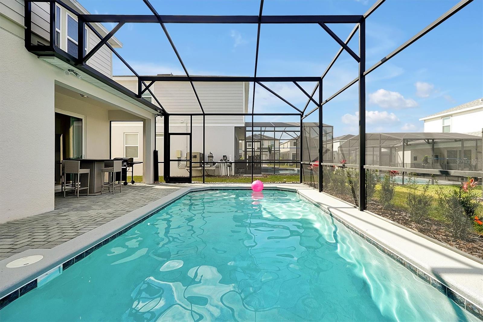 Why wait to build if there’s a turnkey new property ready to generate income? Welcome to Windsor Cay Resort, the ultimate destination for your new vacation home, zoned for short-term rentals. Just minutes from Orlando's world-class attractions, shopping, dining and entertainment, this resort community offers an unbeatable combination of luxury and convenience. This beautifully designed investment property features a spacious layout with five bedrooms, including a convenient downstairs bedroom. Upstairs, you'll find additional well-appointed bedrooms, providing ample space for guests. The screened-in private pool creates the ideal setting for relaxation and entertainment. Windsor Cay Resort boasts top-tier, resort-style amenities, including a lazy river and a resort-style pool with waterslides. Guests can enjoy the nine-hole mini-golf course, splash pad and private cabanas for lounging. The community also features an arcade, a state-of-the-art fitness center and sports courts, along with a stylish clubhouse and on-site dining options. This turnkey vacation rental opportunity is designed for relaxation and investment success, making it a must-see for those looking to own a piece of Florida's thriving short-term rental market. Don't miss out on this exceptional opportunity!