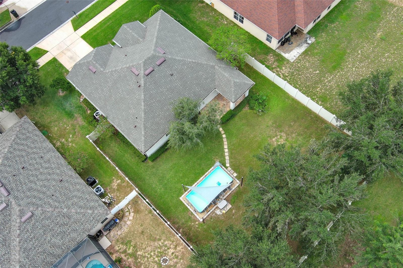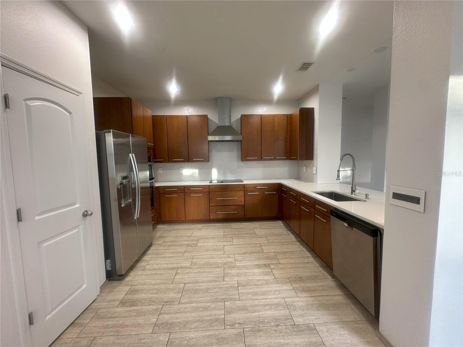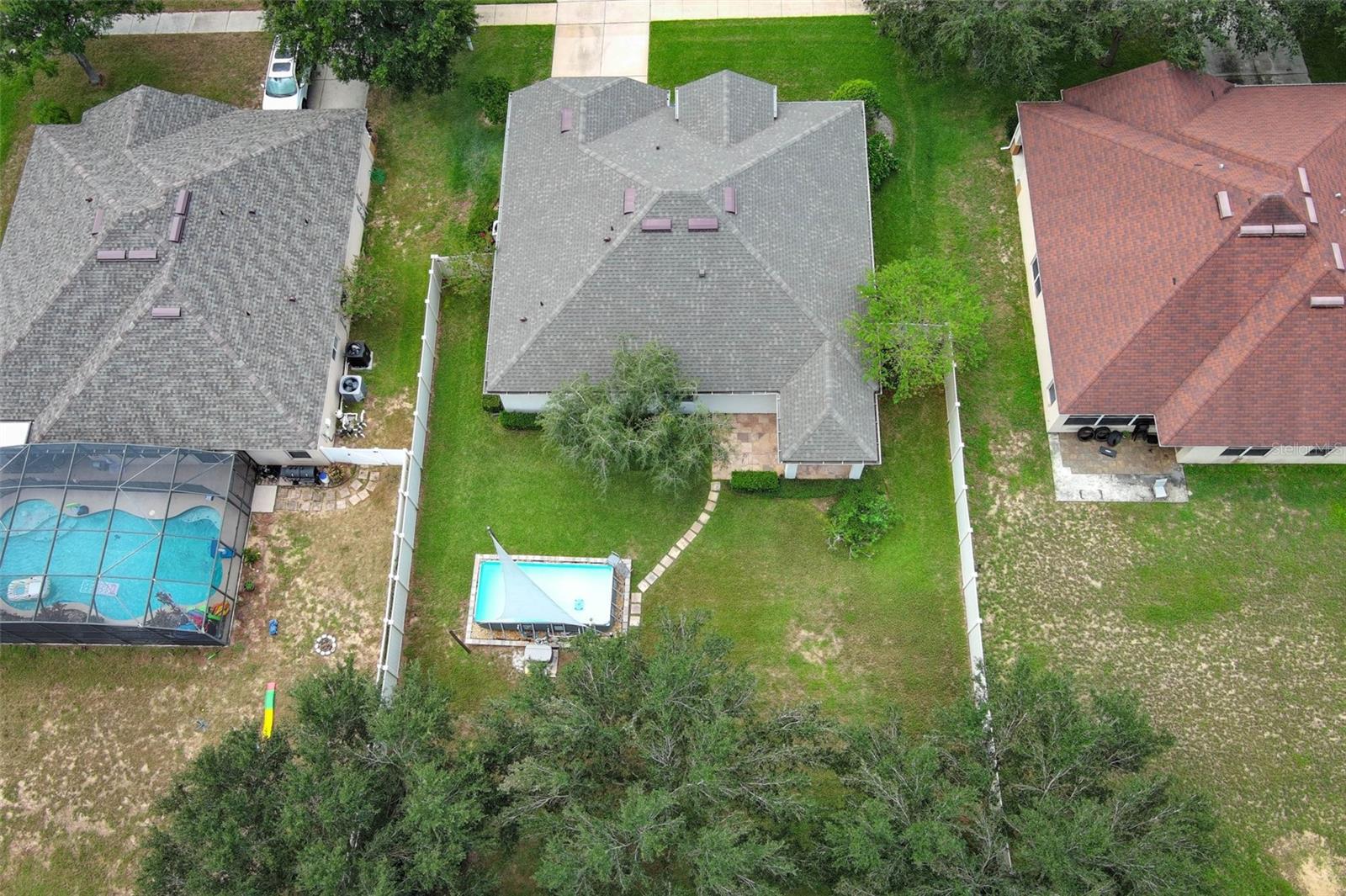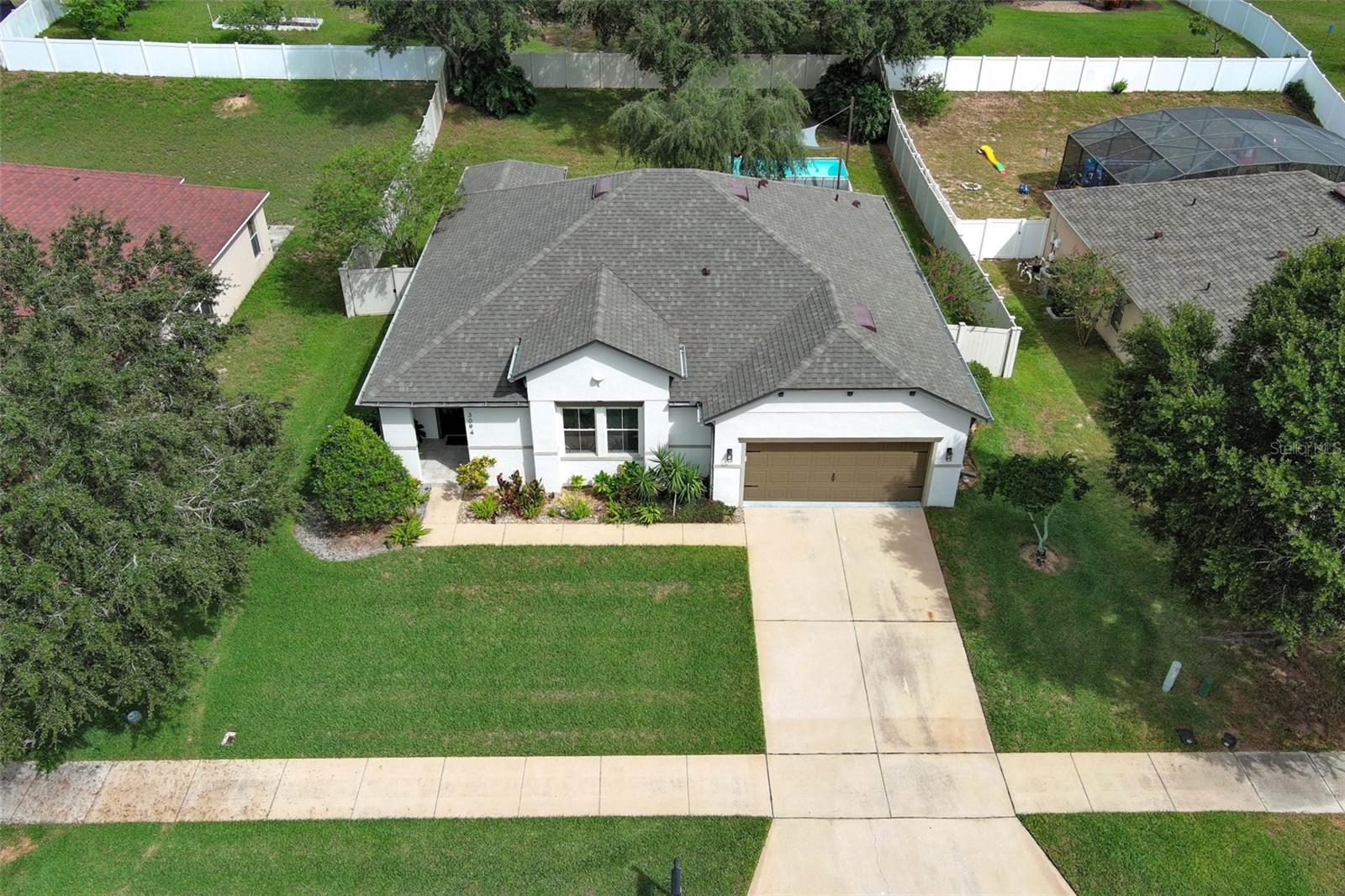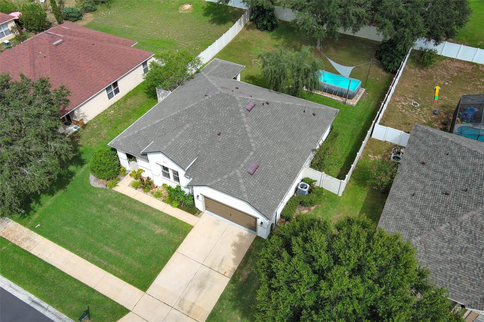 Completely remodeled home. This home is not only a sanctuary but also a hub of convenience and modern amenities. Recent upgrades include a newly installed roof in 2022, recently painted interior and exterior, custom irrigation system, gutter system, above ground pool, and vinyl fence. On the interior you find Italian porcelain and baseboards in most areas of the house, primary bedroom and office have mahogany engineered wood, gourmet style kitchen including Samsung cooktop, commercial grade Z-line stainless rangehood, Kraus stainless sink, Kraus stainless pull-down faucet, newer power food disposal, European style kitchen cabinetry with hardwood doors, Spanish porcelain tile backsplash and quartz countertop. Both bathrooms have been meticulously remodeled with Spanish porcelain tile, shower niche, LED lighting, and contemporary style floating vanity, and the primary bathroom has Grohe and Kohler plumbing shower system, Kohler toilet and three luxury modern LED crystal ceiling mini pendants. The closets walk-in closet with built in closet systems (Bedroom one and two) and one modular closet system (Bedroom three), office space and indoor laundry with custom built-in closet system. Each bedroom has a custom porcelain accent wall, and the lighting has been custom upgraded to LED ceiling lights in bedrooms and bathrooms and light switches from Legrand (Adorne collection) throughout the house.