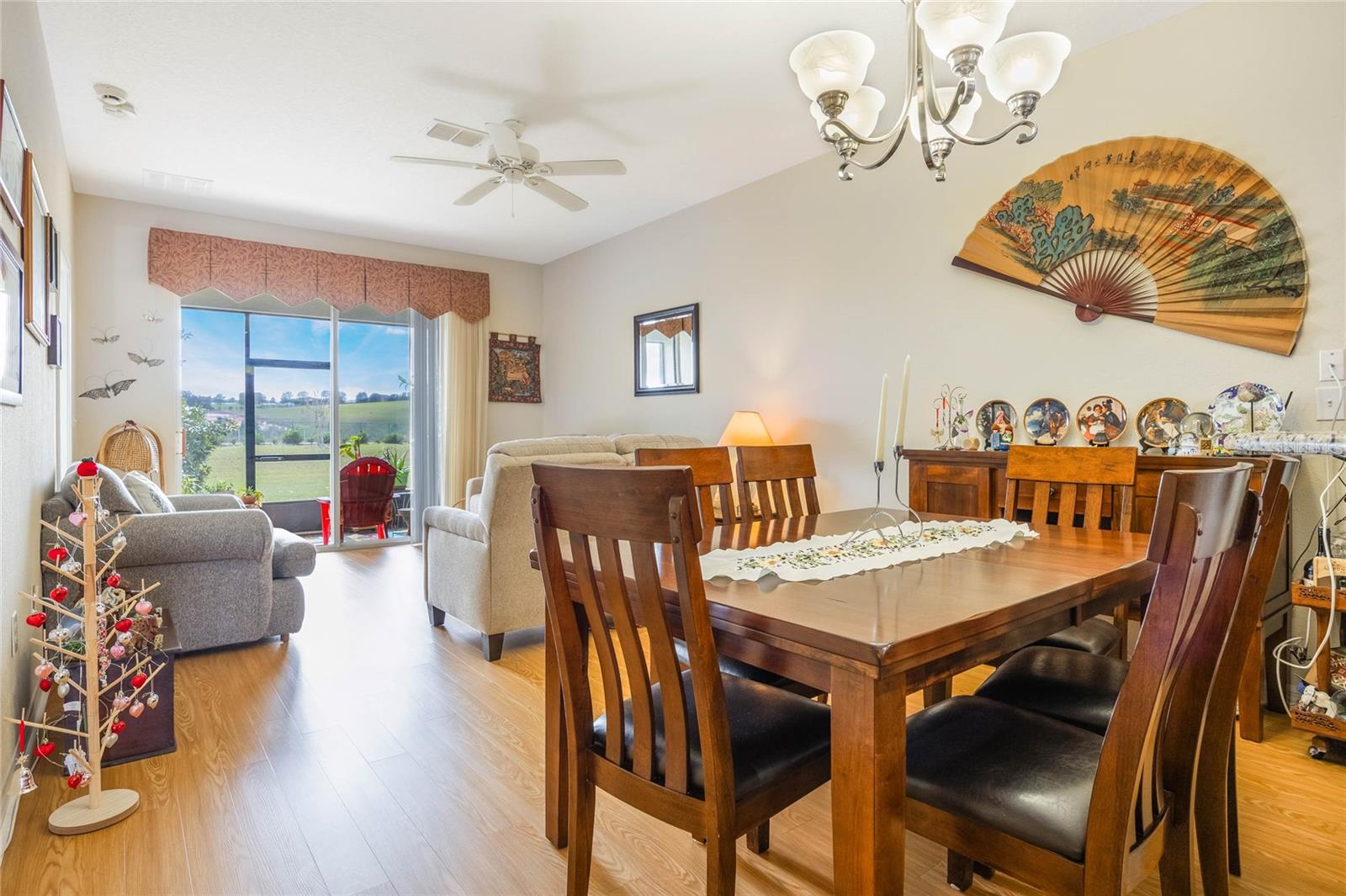 Heritage Hills is a sought after 55 plus community located in beautiful Clermont! Perfect location to walk to the clubhouse!! Beautiful lot with no rear neighbors! This St. Lucia model is very popular with 2 bedrooms and 2 bathrooms plus a flex room! Wait until you see this view in the backyard! You will enjoy relaxing on the screened lanai and take in the view! Upgrades include gutters in the back, a glass/screen front storm door, both windows were replaced and are high wind impact resistant. The carpet in the main living area was replaced with luxury vinyl plank flooring, new ceiling fans installed in the bedrooms and all appliances stay including the washer and dryer! Seller is offering a one year home warranty! The kitchen features two pantry's, granite countertops and breakfast bar! The floor plan is perfect for entertaining! The flex room works as an office, sitting area, craft room, etc. Lots of possibilities! The property is located close to the clubhouse for convenience! Heritage Hills amenities include a heated pool and spa, pickle ball, tennis, basketball, bocce ball, shuffleboard, clubhouse with planned activities, lots of clubs to join, fitness center, art and crafts room, billiard room, card room and ballroom for holding events. Exterior is painted every 5-6 years! The roof is replaced at year 15 and the reclaimed irrigation water is included in the HOA fee. There is a 5 mile walking trail around the community. Call today for a private showing!