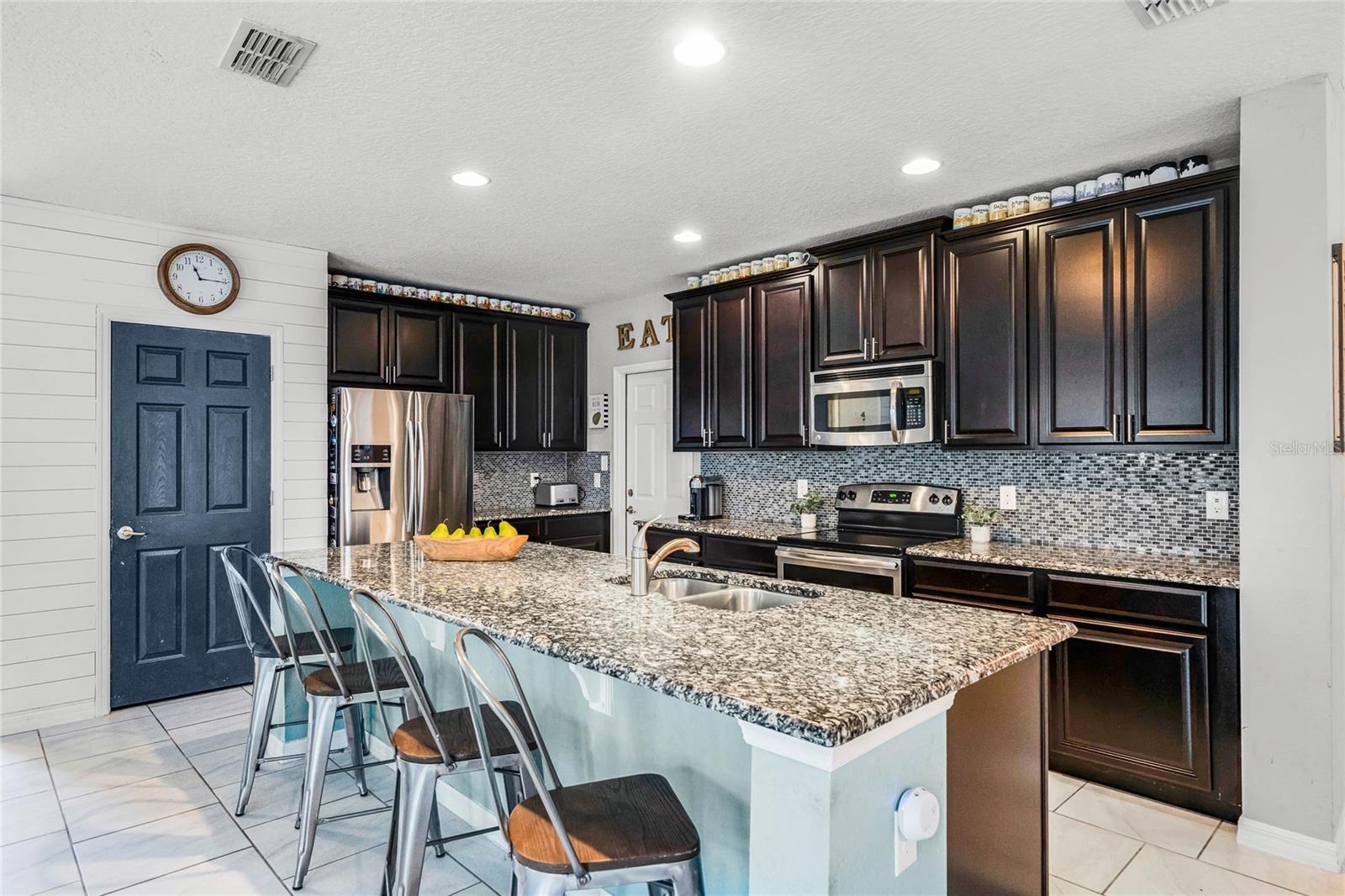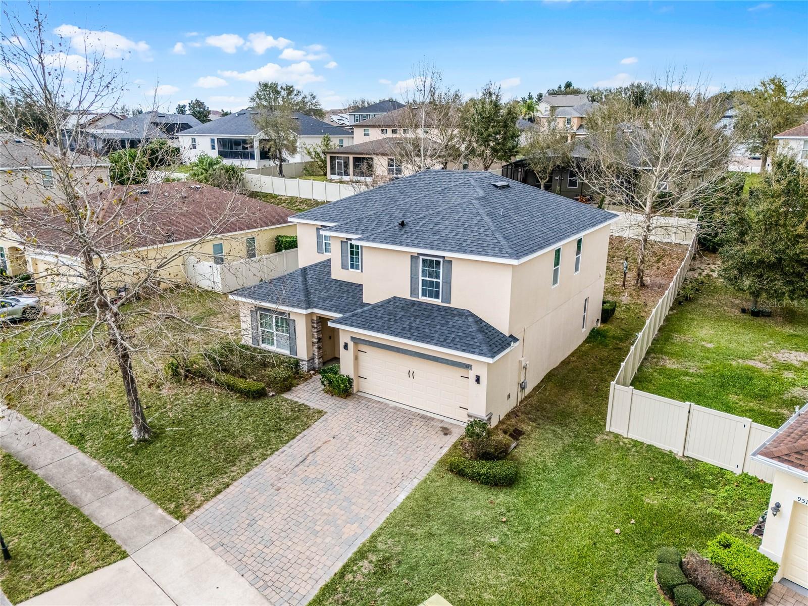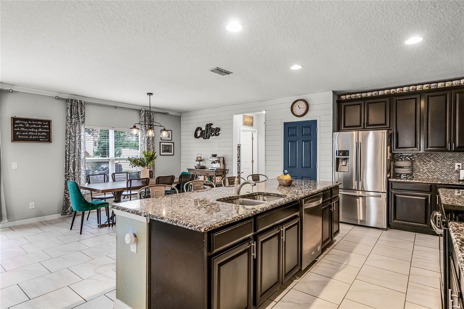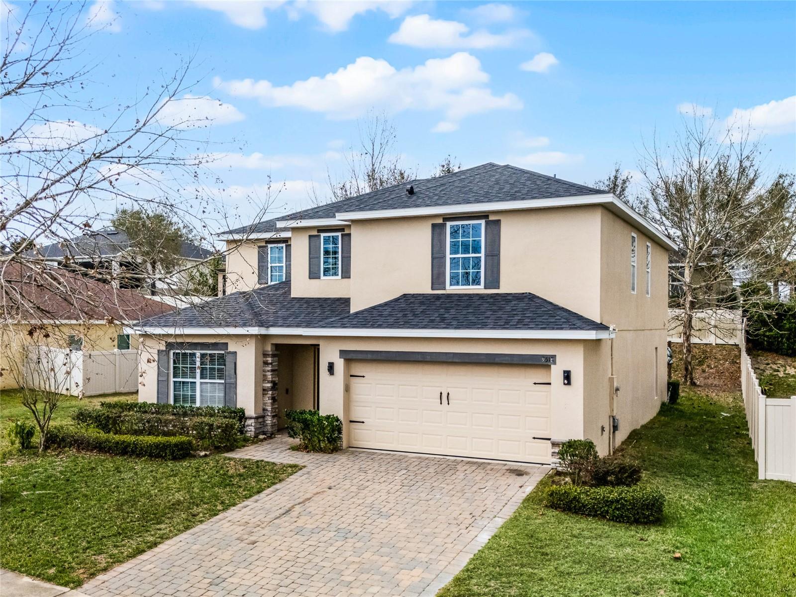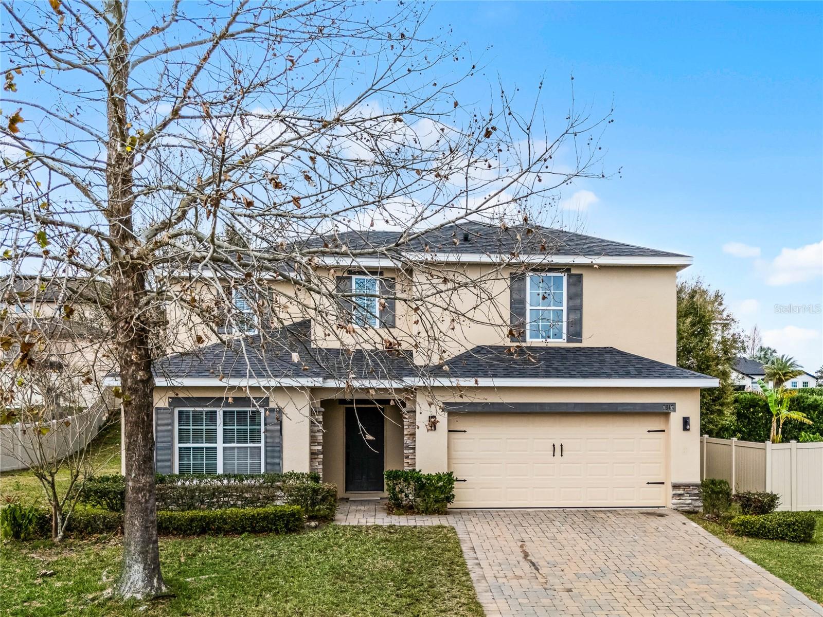 Under contract-accepting backup offers. Welcome to your dream home in the charming community of Vista Grande, where rolling hills and serene water views create a picturesque backdrop for everyday living. This magnificent 2,592-square-foot residence offers five bedrooms and three and a half bathrooms, thoughtfully designed to accommodate both comfort and style. Step inside to discover an open floor plan that seamlessly connects living spaces, featuring an artful blend of modern farmhouse and Florida living. The chef's kitchen stands as a culinary masterpiece with its impressive island, elegant mosaic tile backsplash, and granite countertops. Stainless steel appliances and 42-inch cabinets complete this gourmet space, while a charming shiplap accent wall adds character to the adjacent dining area. Convenience meets comfort with a first-floor bedroom and full bathroom, perfect for guests or multi-generational living. Upstairs, you'll find a versatile loft space and a cozy office nook ideal for remote work or studying. The primary bedroom suite is a peaceful retreat, boasting a generous walk-in closet and a spa-like ensuite bathroom featuring dual sinks, granite counters, a private water closet, luxurious soaking tub, and separate shower. All of the bedrooms are very generously sized, and the upstairs laundry room is perfectly placed for convenience. Outdoor living is a pleasure with an oversized, gently sloping yard, enhanced by a spacious brick paver patio bordered by Italian cypress, and surrounded by partial privacy fencing. Additional amenities include a new roof installed in 2020, energy saving double-pane windows, attached two-car garage, new carpeting on the staircase and bedrooms, and tile floors throughout the rest of the home. If you love the outdoors, the neighborhood offers easy access to local amenities, including nature preserves and boat ramps. This thoughtfully designed home perfectly balances modern comfort with practical living in one of Clermont's most desirable communities.