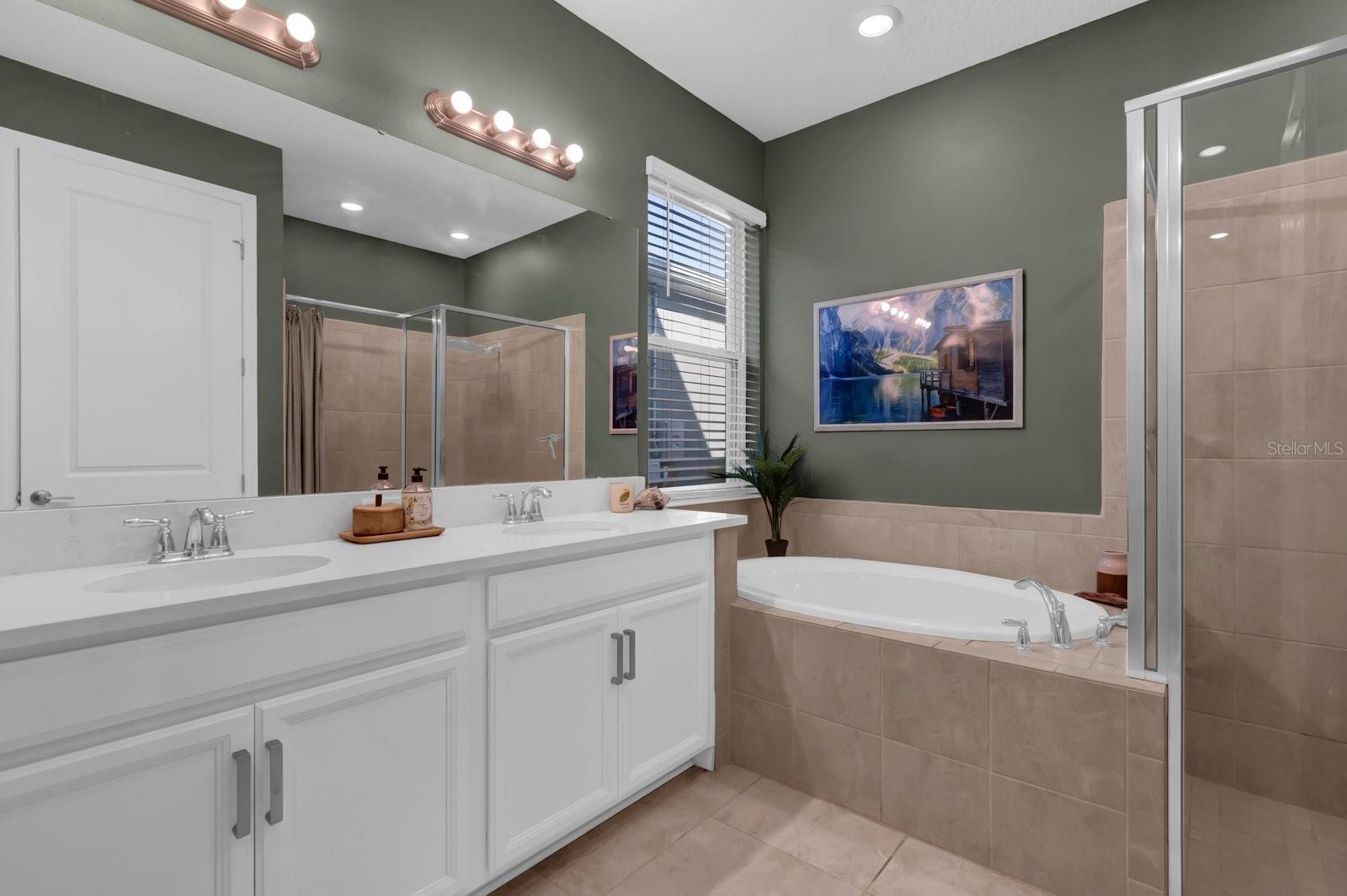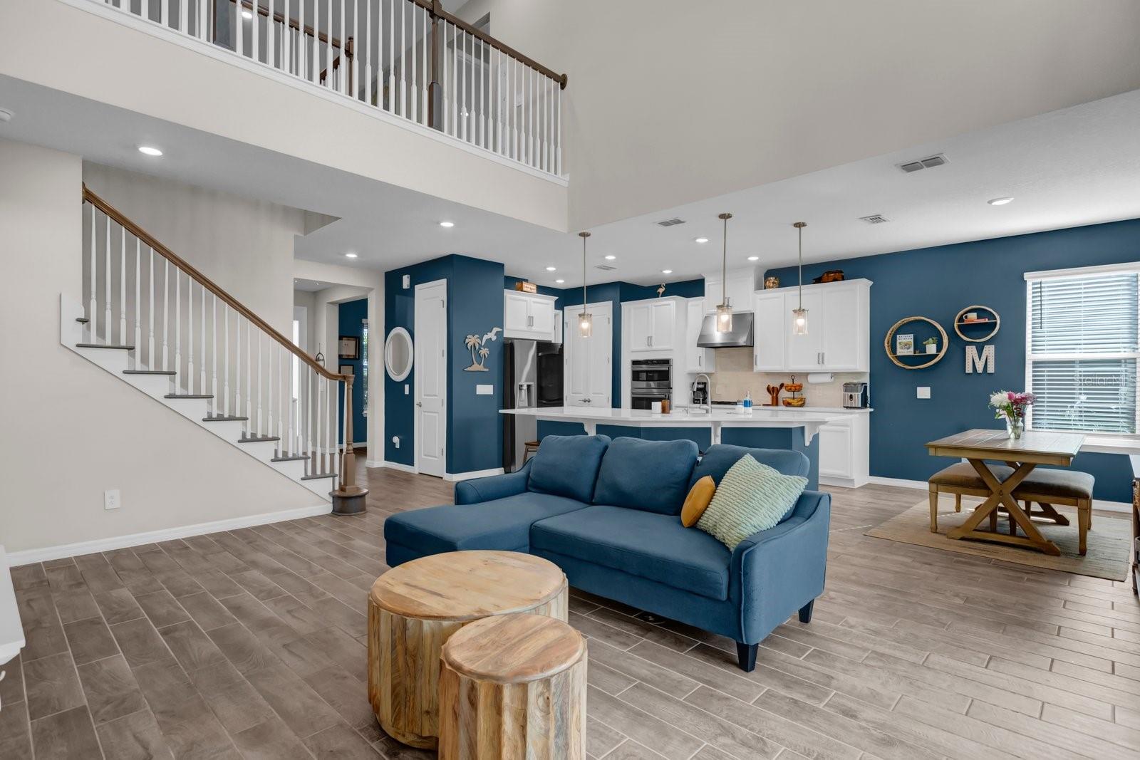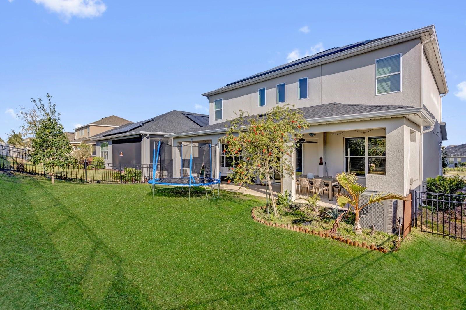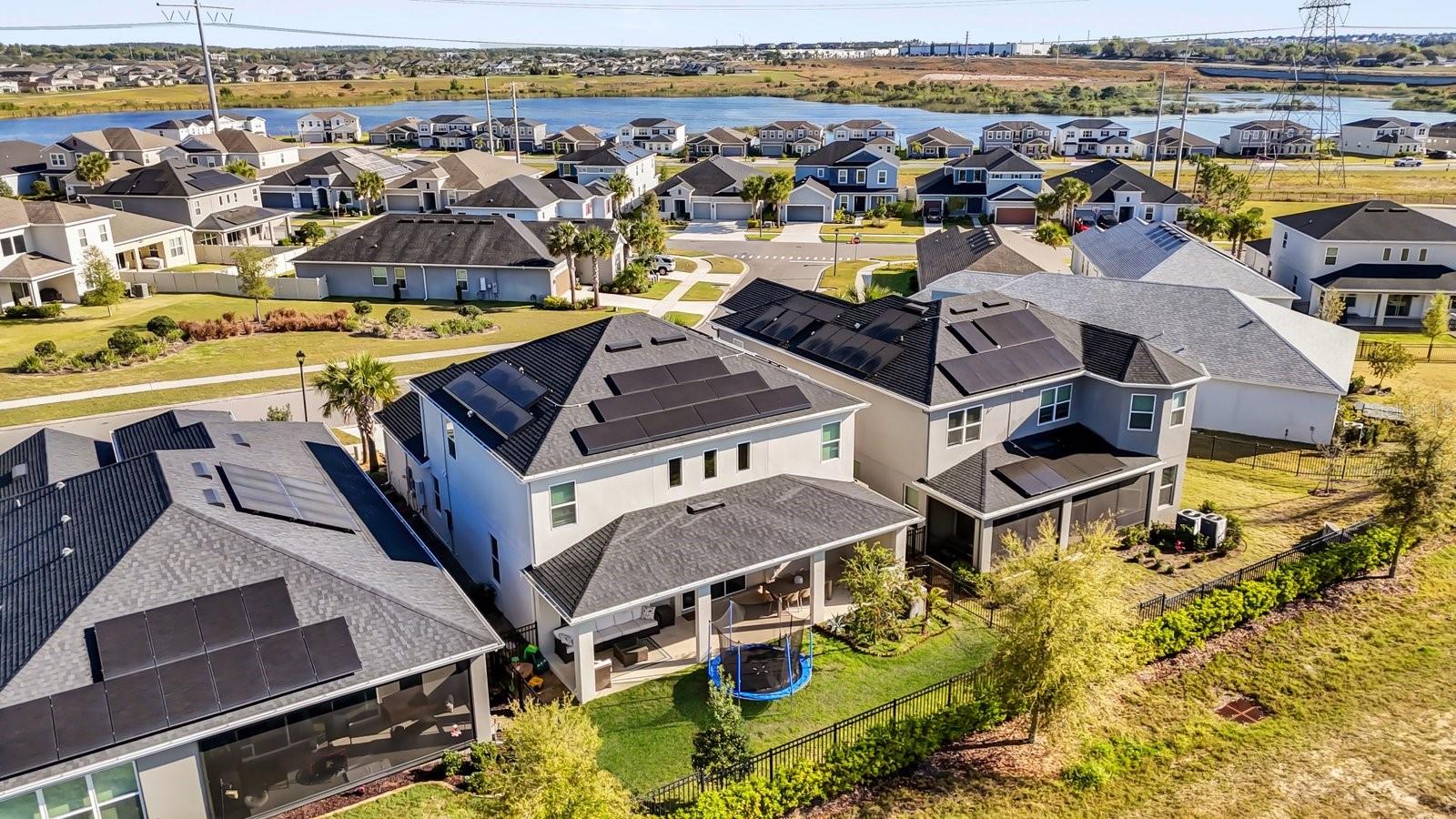 Beautiful MOVE-IN READY | BUILT IN 2022 | home features FOUR BEDROOMS, a ground floor OFFICE and upstairs includes a BONUS ROOM and LOFT! This two-story, SOLAR PANELLED home is smartly designed to accommodate everyday living. The main living area on the ground floor combines the kitchen, casual dining area, gathering room with a HIGH CEILING and a spacious dining room providing an open feel. A GROUND FLOOR PRIMARY SUITE offers convenience, privacy and style. The ensuite includes two sizable walk-in closets, a soaker tub and walk-in shower along with beautiful recessed lighting. Upstairs, the LOFT overlooks the gathering room. Easy to care for wood style TILE FLOORS add to the airy feel. The open kitchen features plenty of seating at the island, upgraded STAINLESS STEEL APPLIANCES (including a GAS STOVE), recessed and pendant lighting and a closet pantry for ample storage. Walking towards the back of the home you will find POCKET SLIDING GLASS DOORS showcasing the very private backyard (NO REAR NEIGHBORS). The backyard includes a COVERED PATIO that runs the entire length of the home giving you plenty of space for seating and dining table options, an OUTDOOR KITCHEN (gas and electric hookup) and a FULLY FENCED backyard - Residents of the Crestview community enjoy GATED ACCESS, a COMMUNITY POOL and playground, and the central location gives you easy access to SR 50 for all the shopping and dining options you could need. Don’t miss this great opportunity to own this stunning, move-in ready home!
